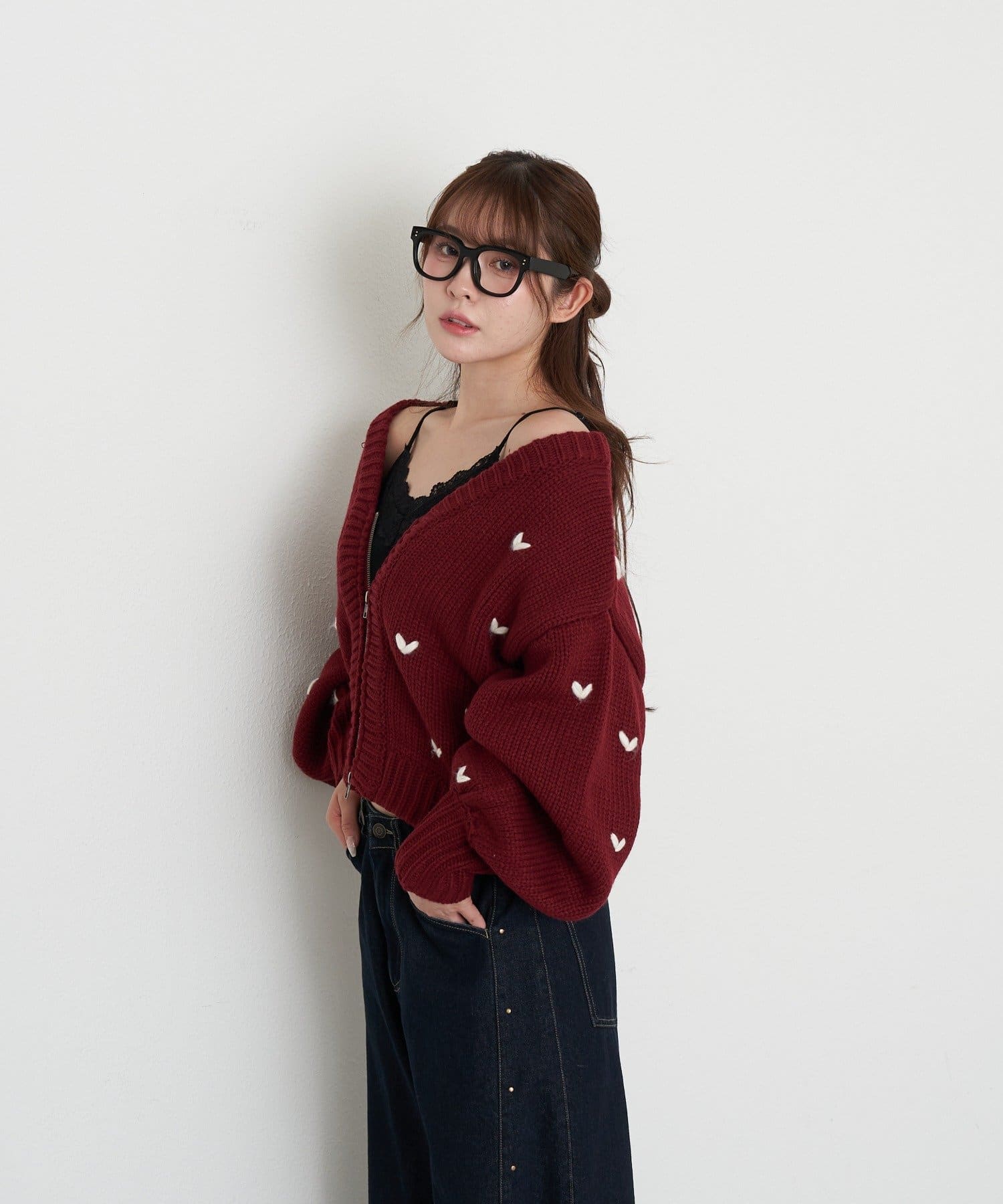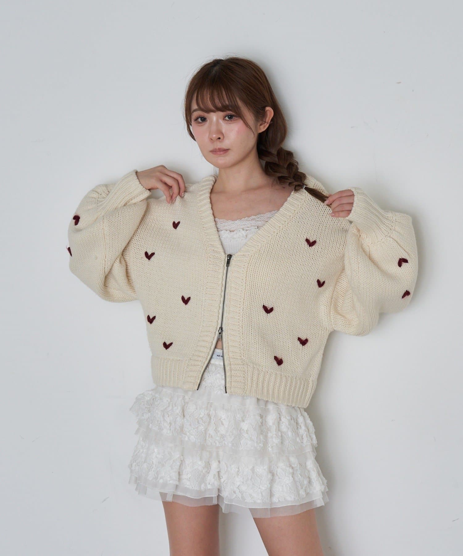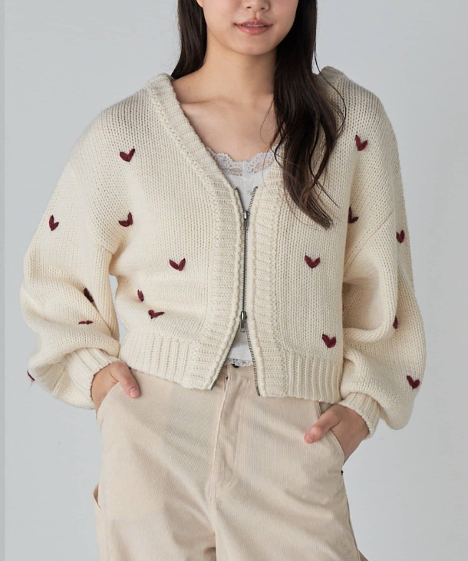 TOP > RAY CASSIN > レディース > トップス > カーディガン/ボレロ > ジップルーズハート柄ショートカーディガン