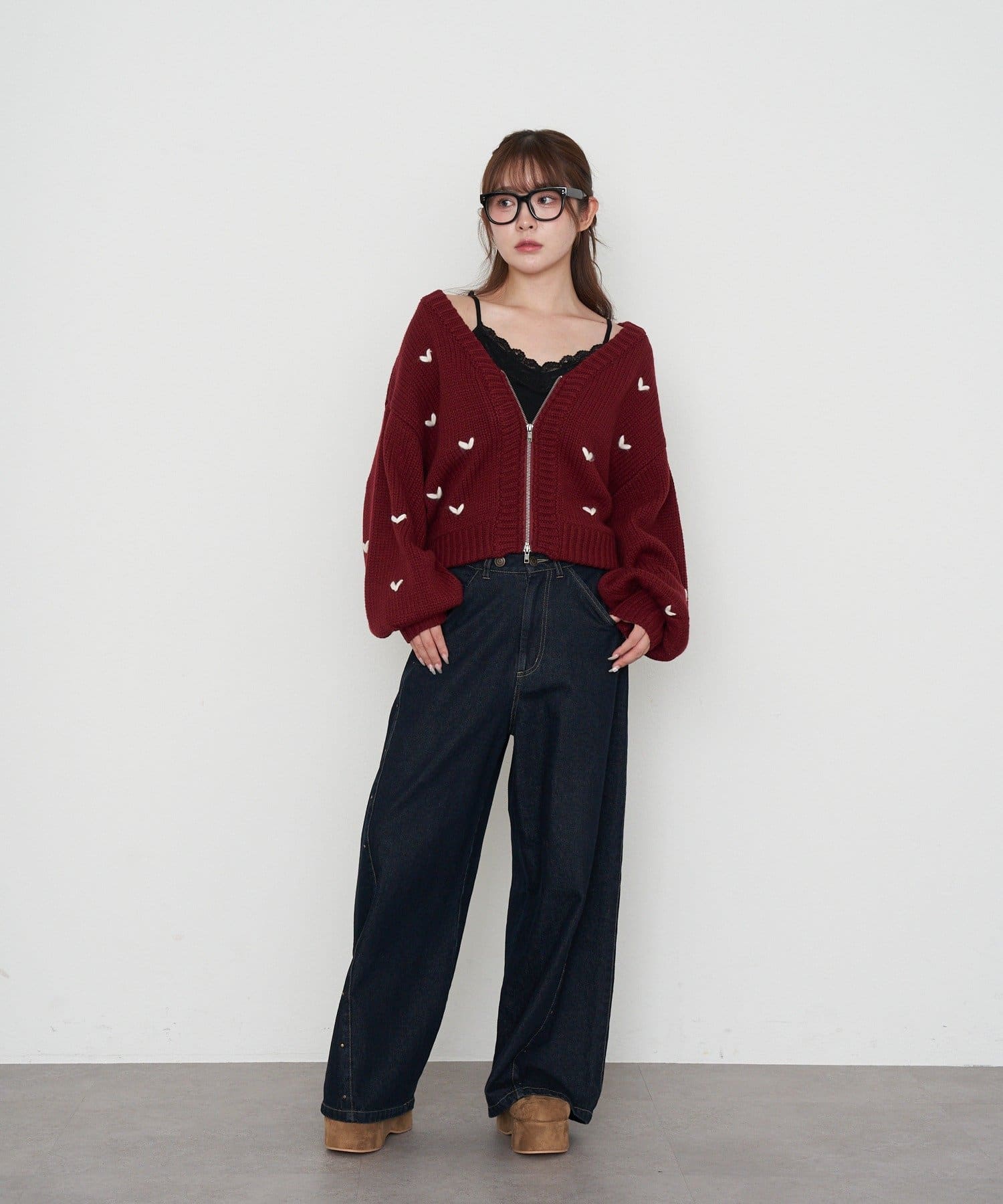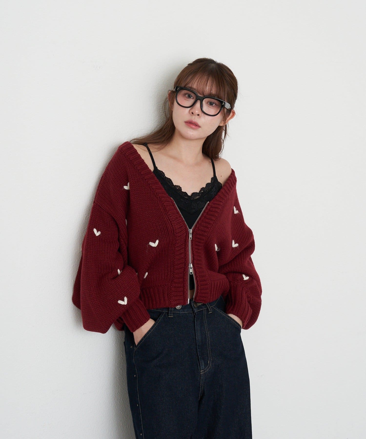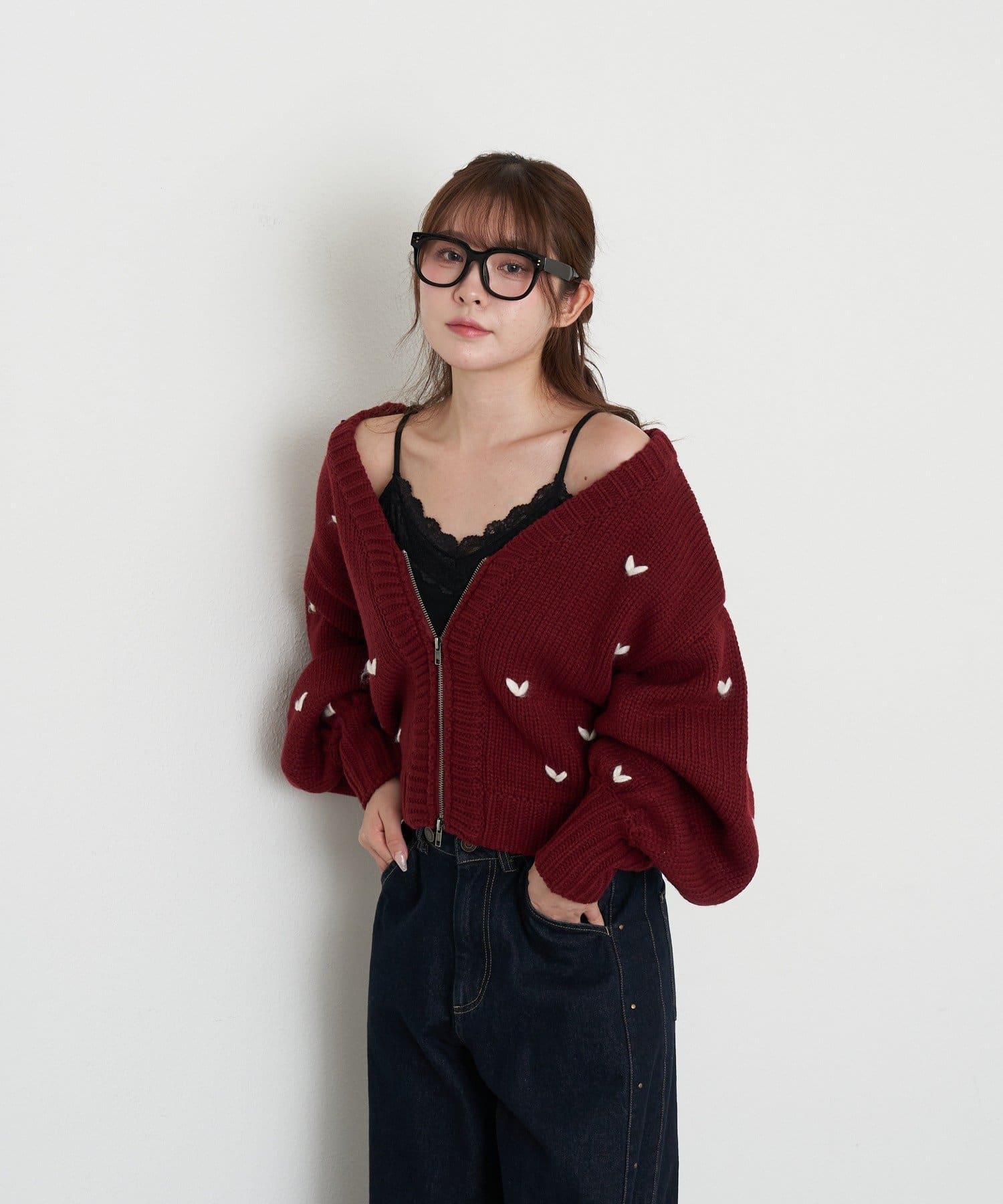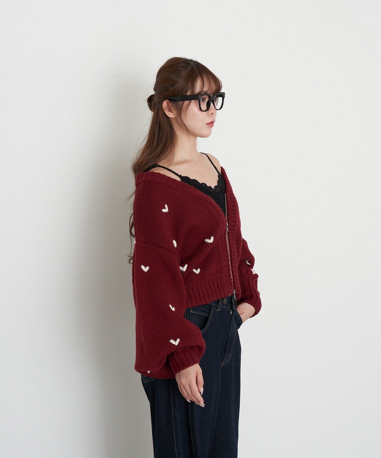 • RAY CASSIN(レイカズン) ジップルーズハート柄ショートカーディガン