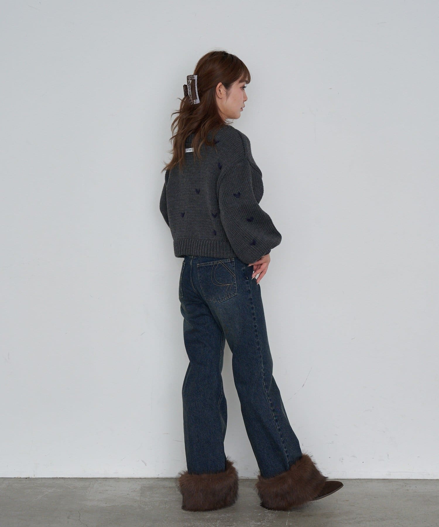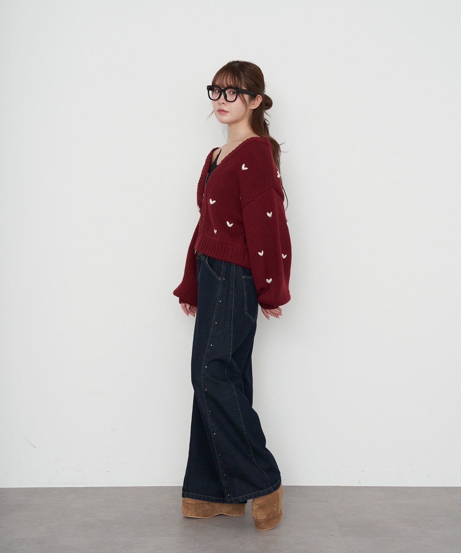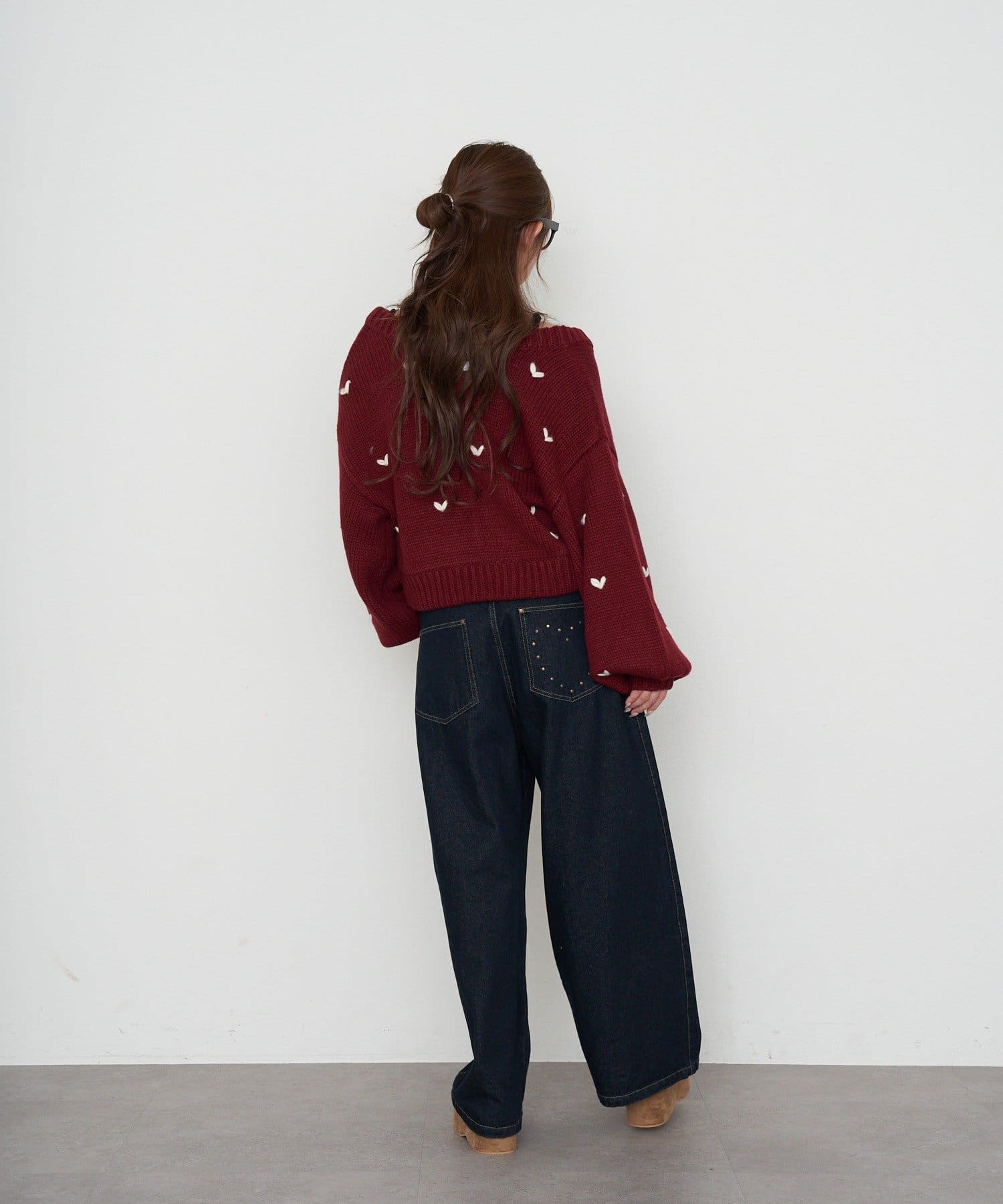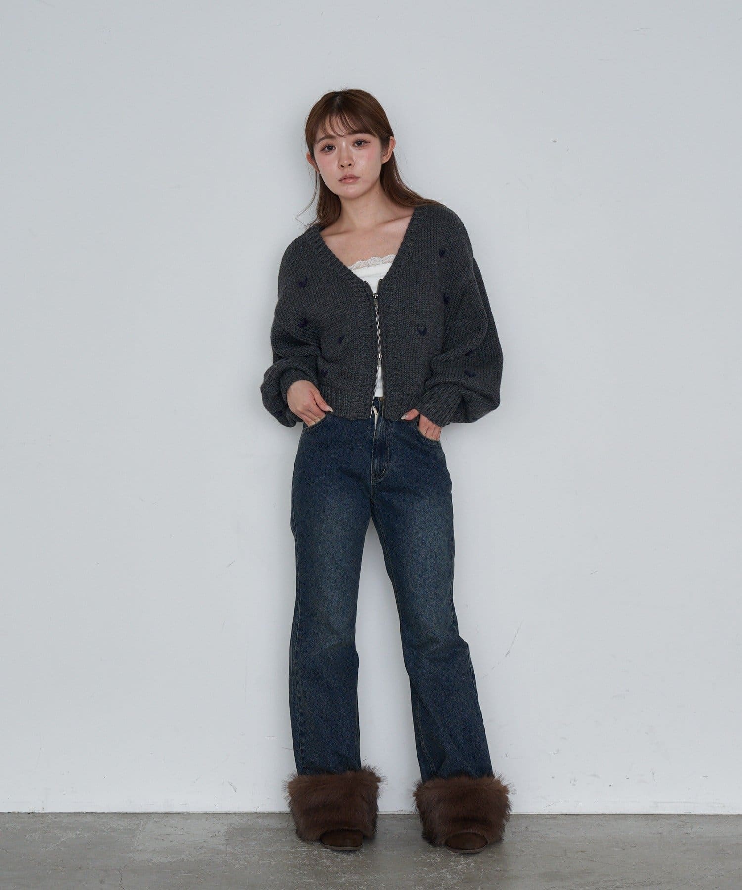 • RAY CASSIN(レイカズン) ジップルーズハート柄ショートカーディガン