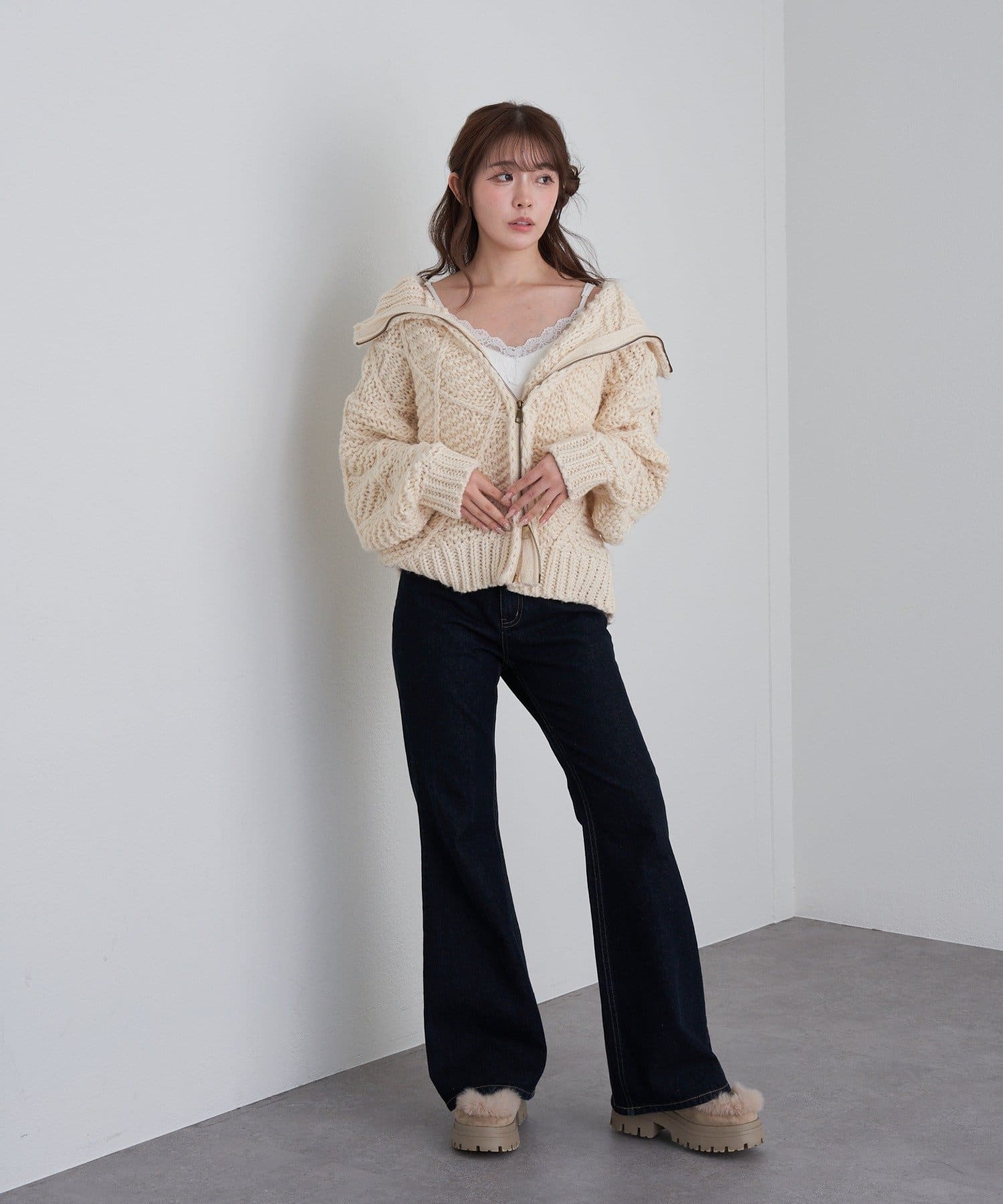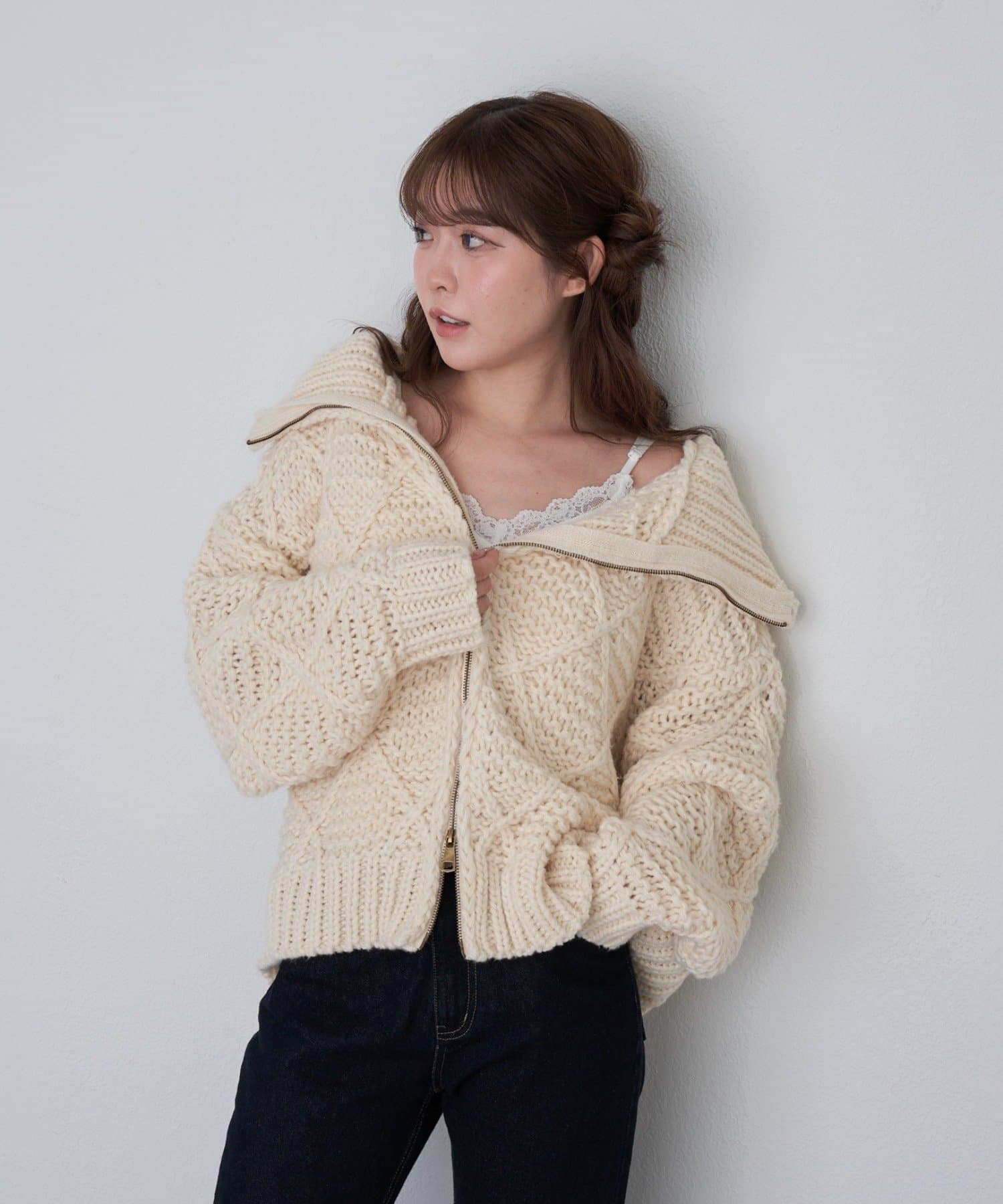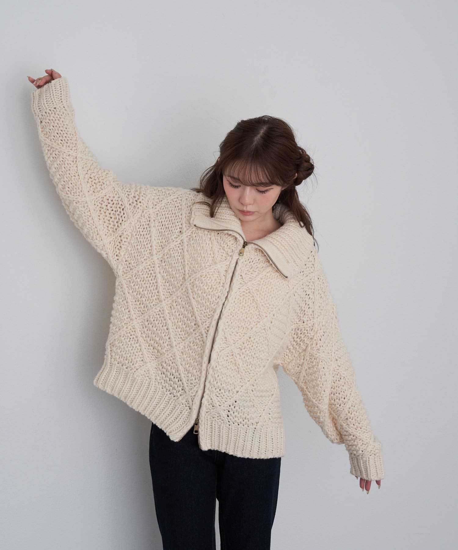 ・ジップの開け具合で首元が調整できるので好みのシルエットが作れます。