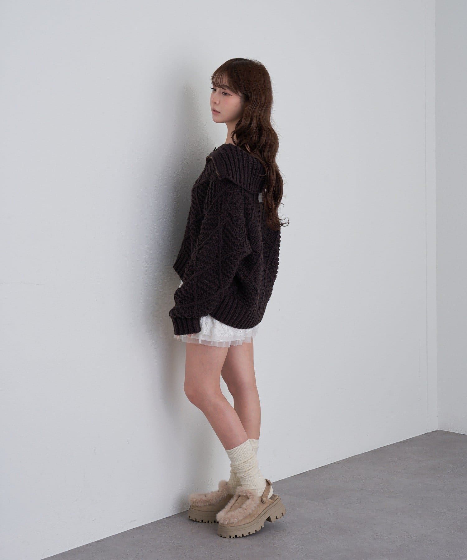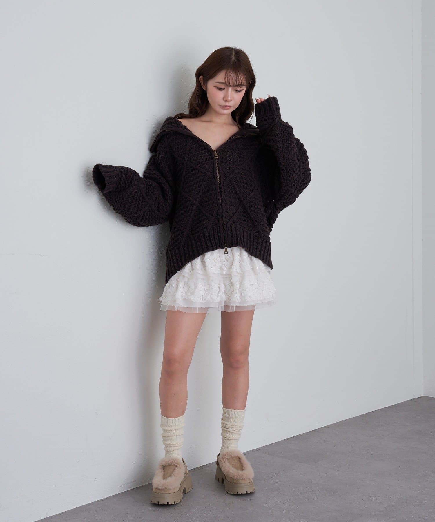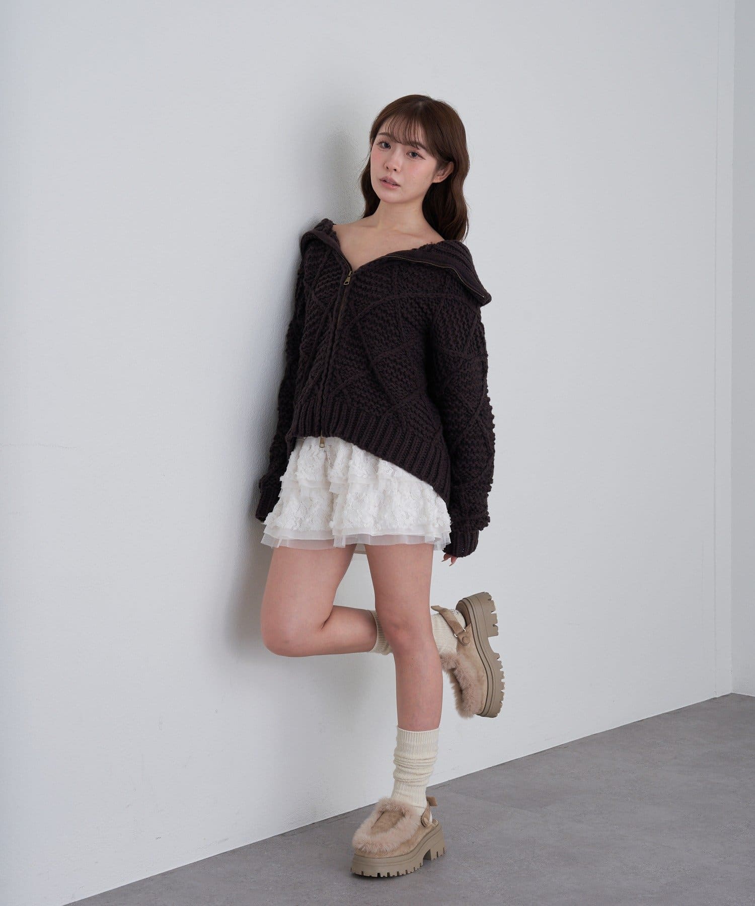 ・ジップの開け具合で首元が調整できるので好みのシルエットが作れます。