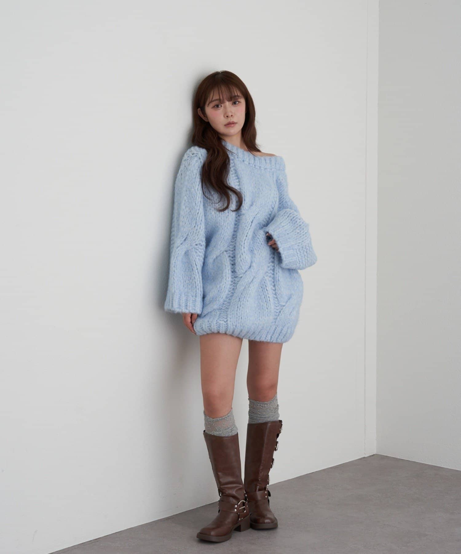 【RAY CASSIN】ケーブルルーズチュニックニット