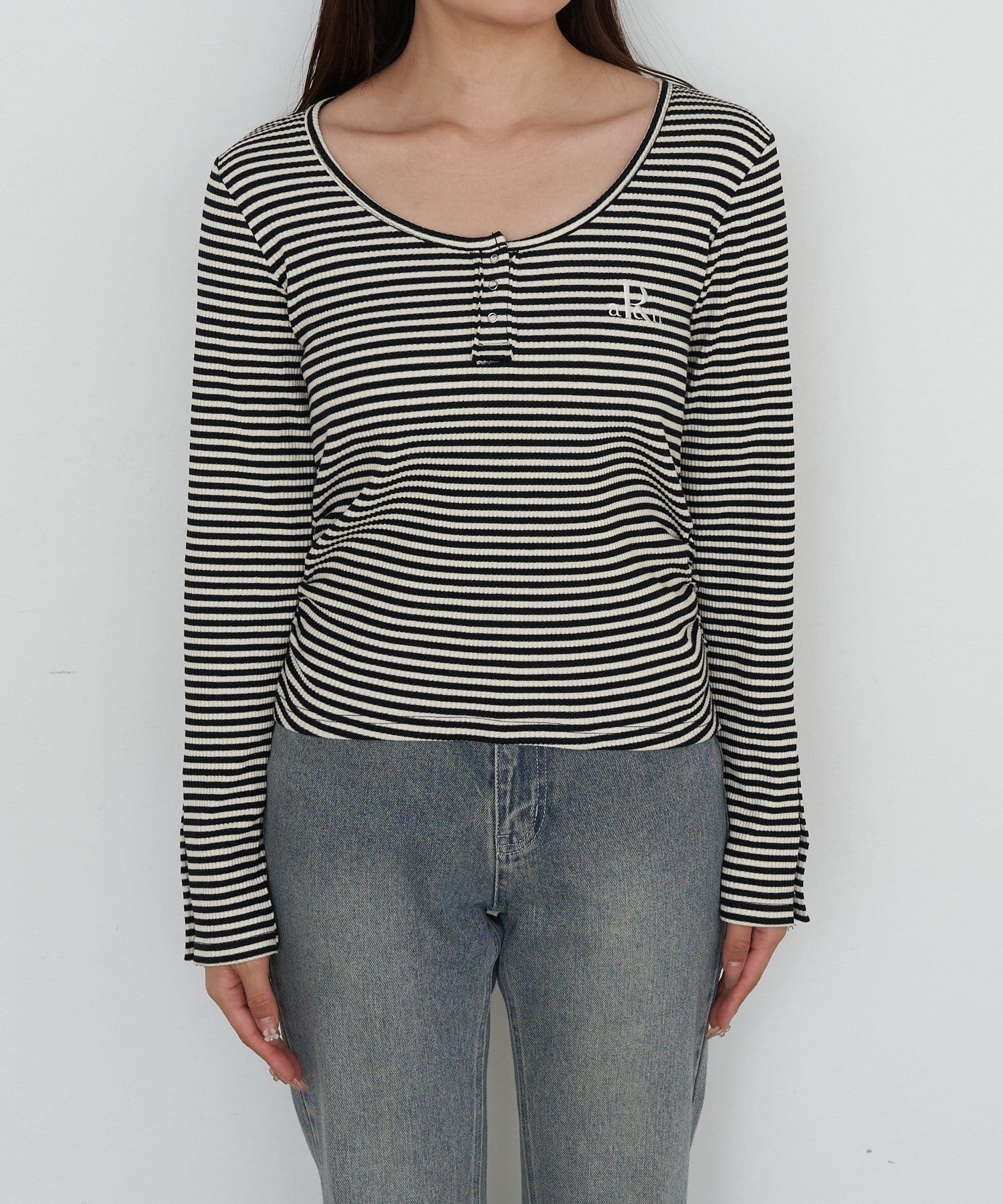 胸刺繍UネックヘンリーTシャツ