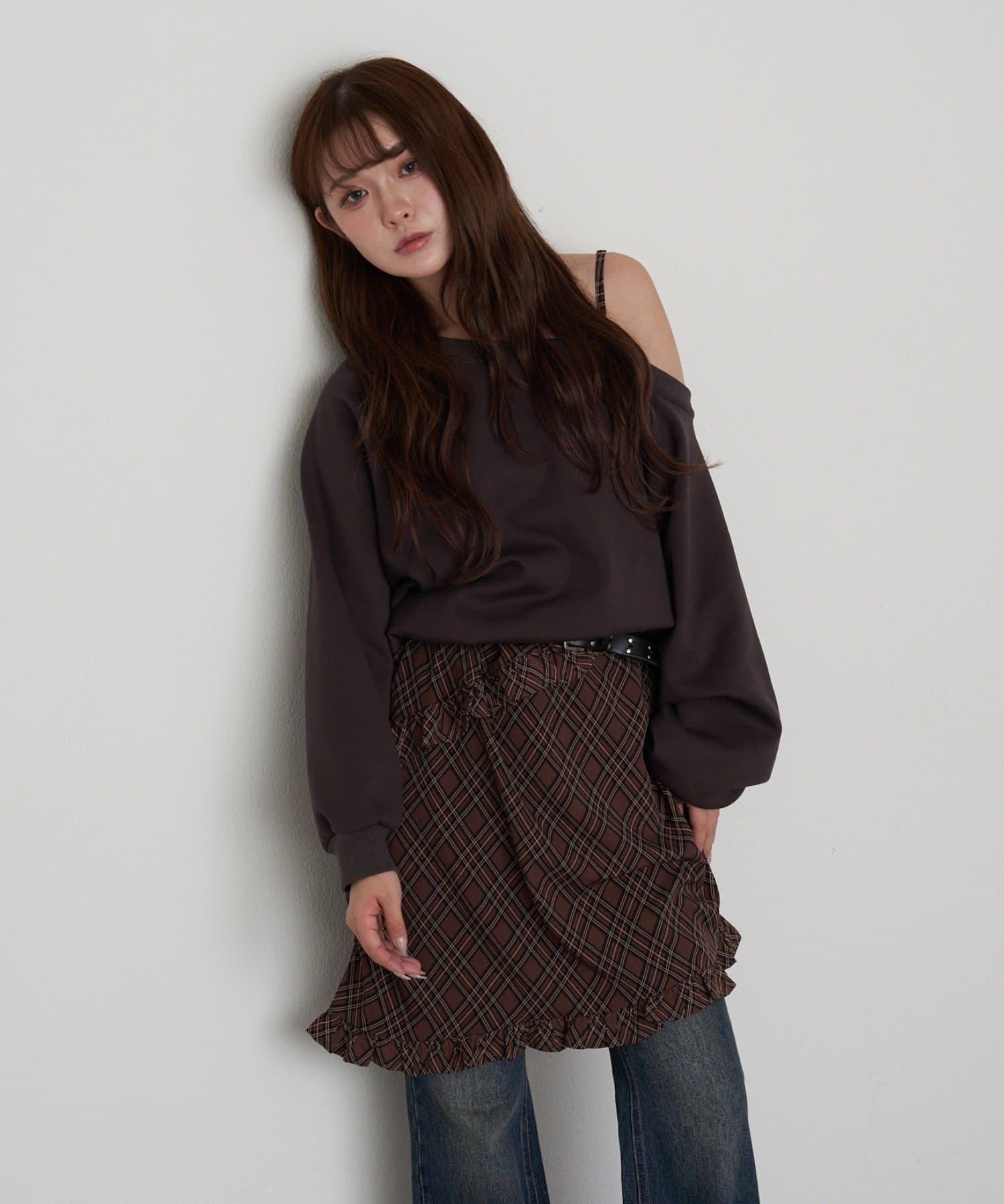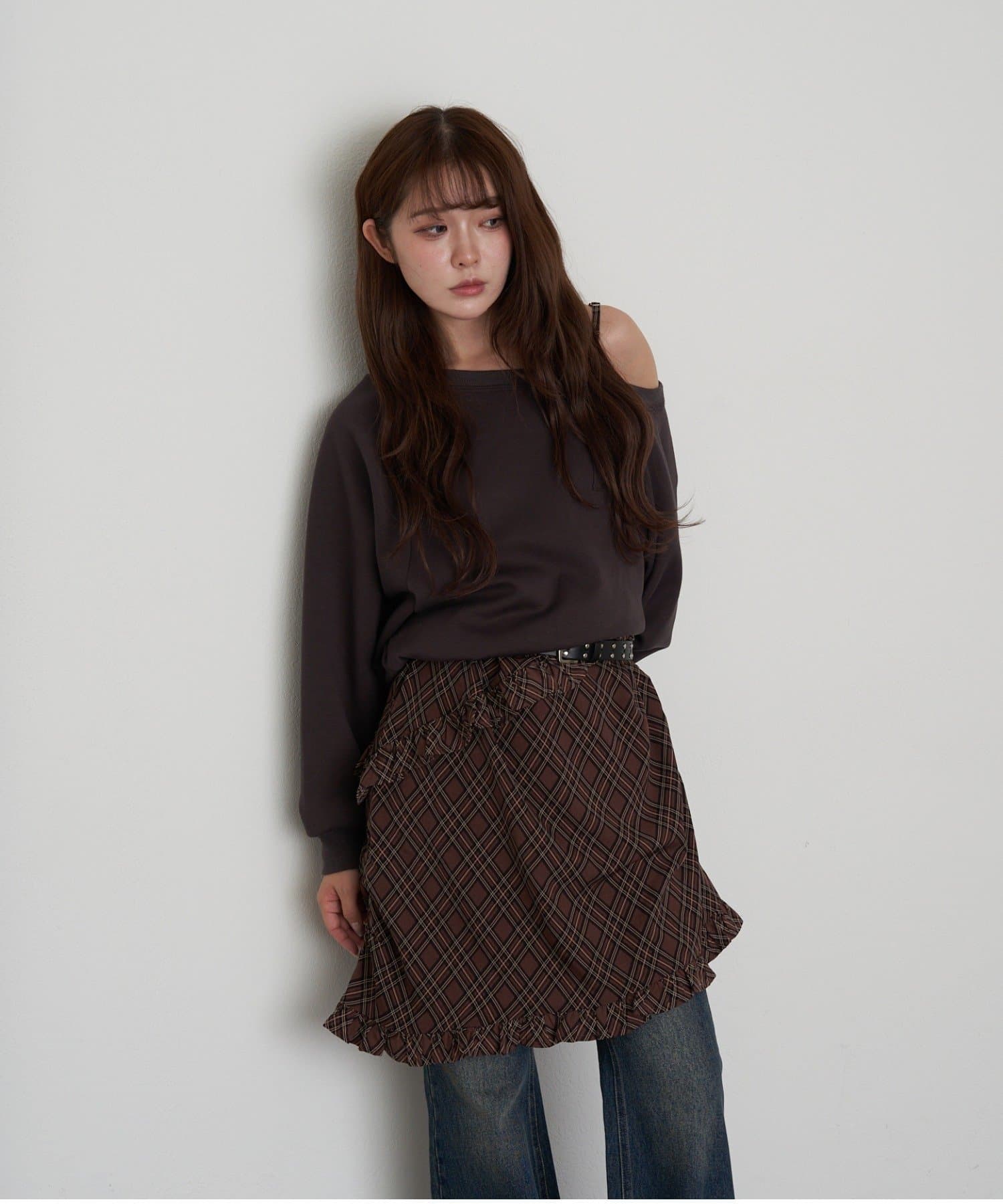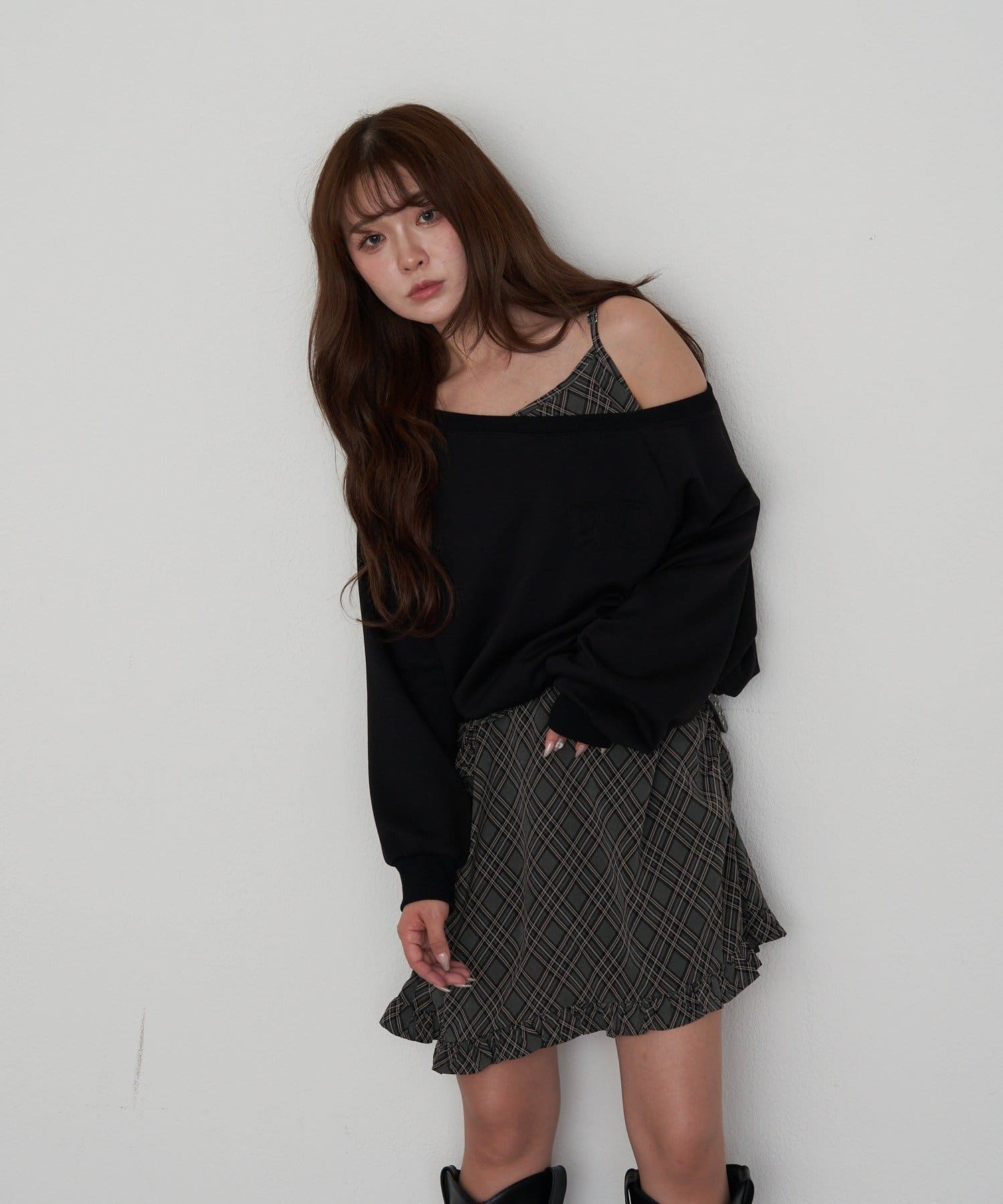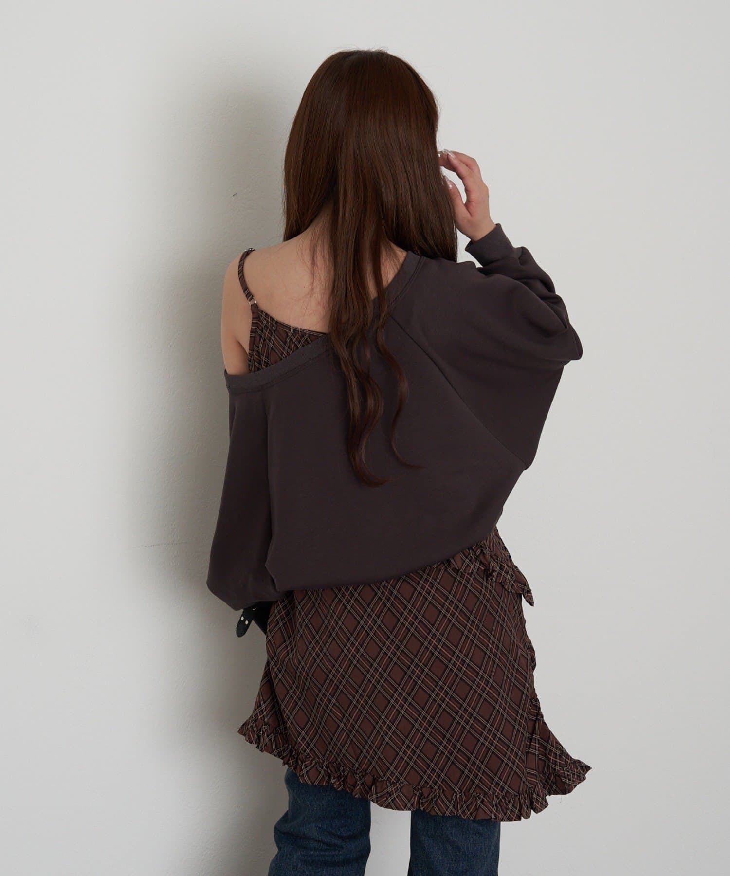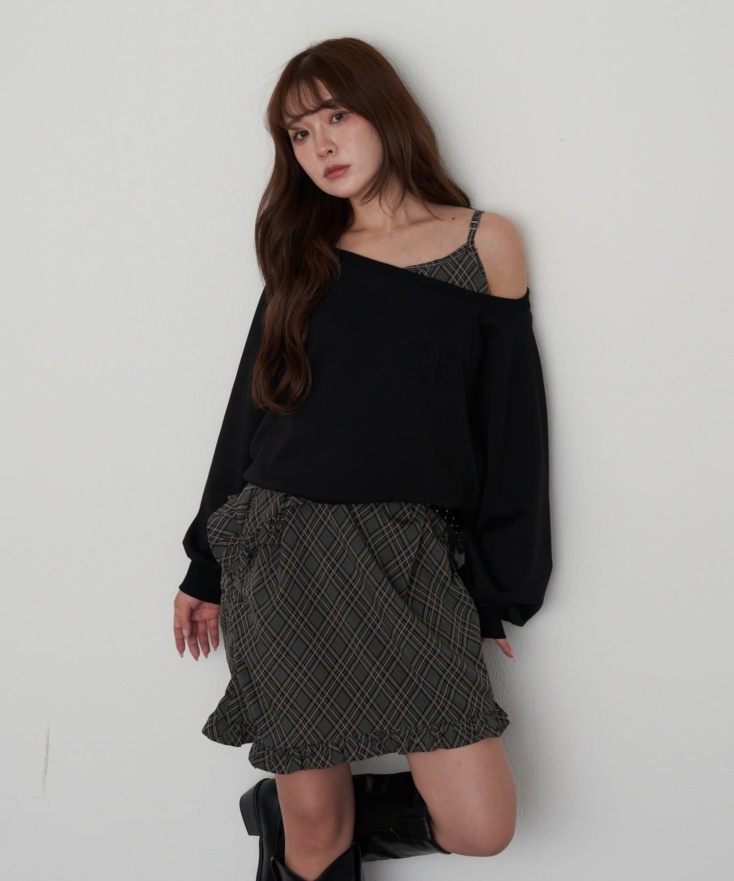 【RAY CASSIN】オフショルスウェットレイヤードチェックワンピース