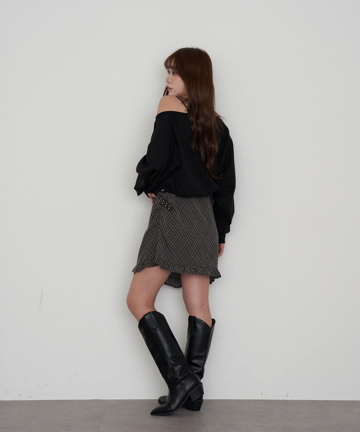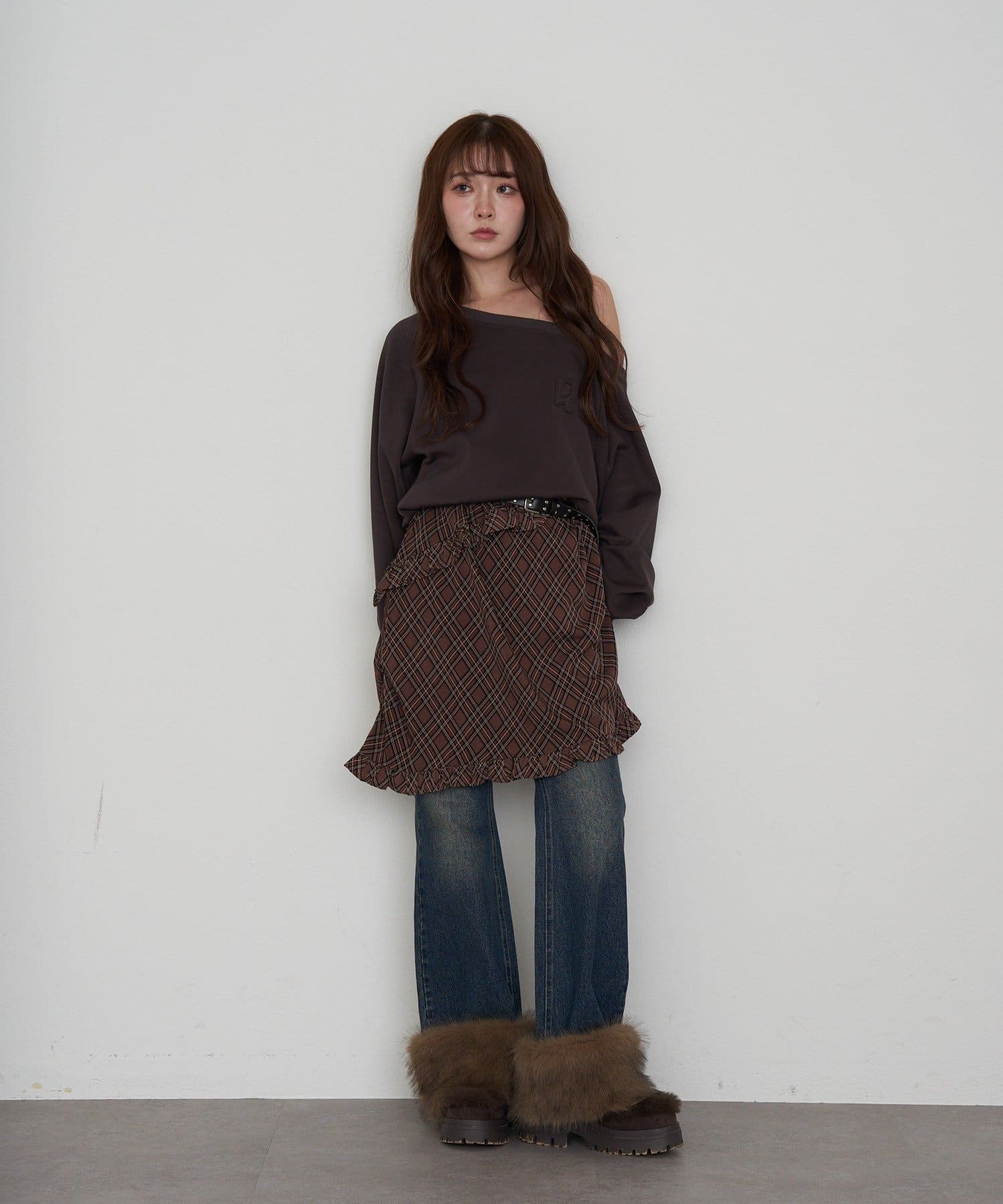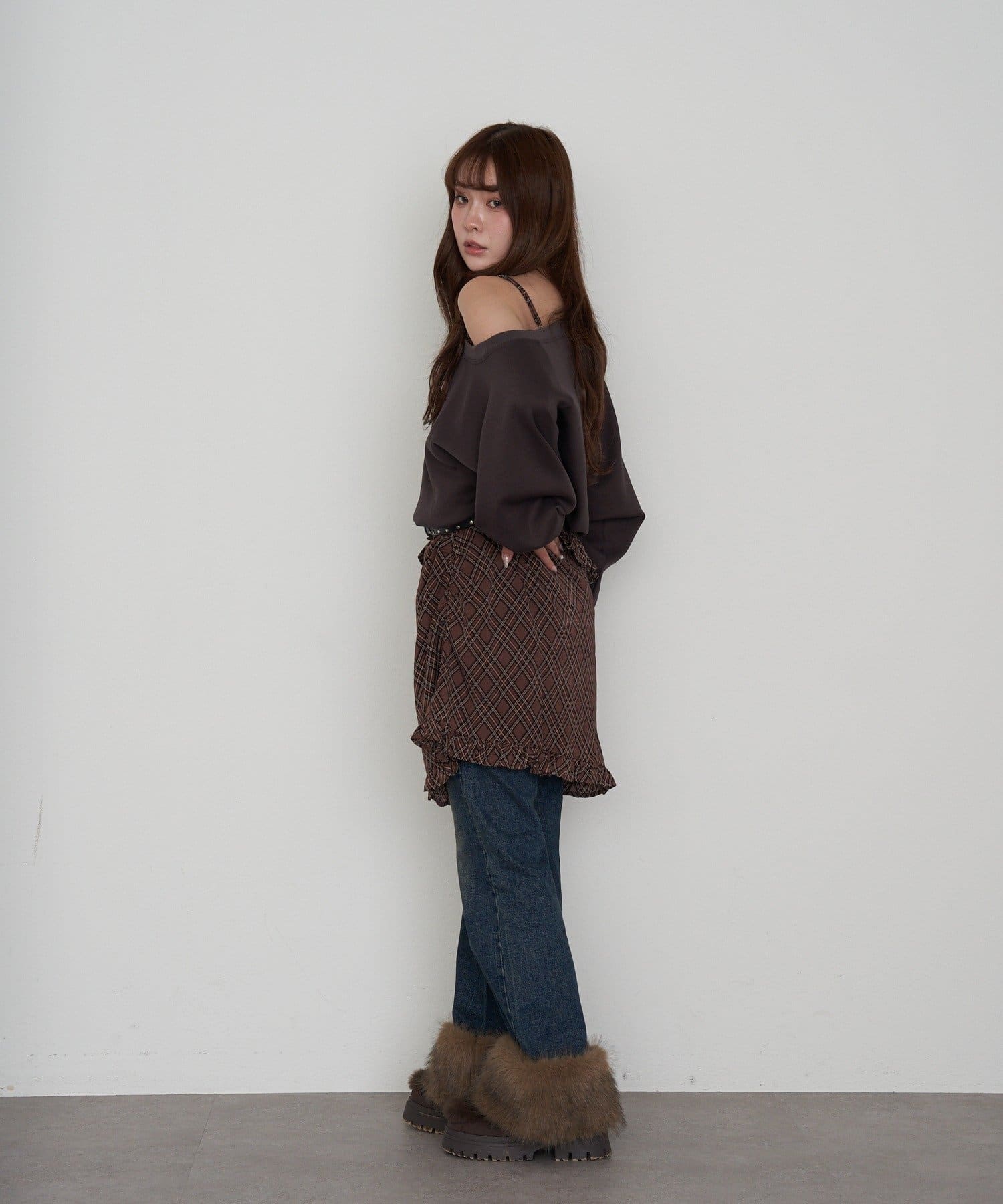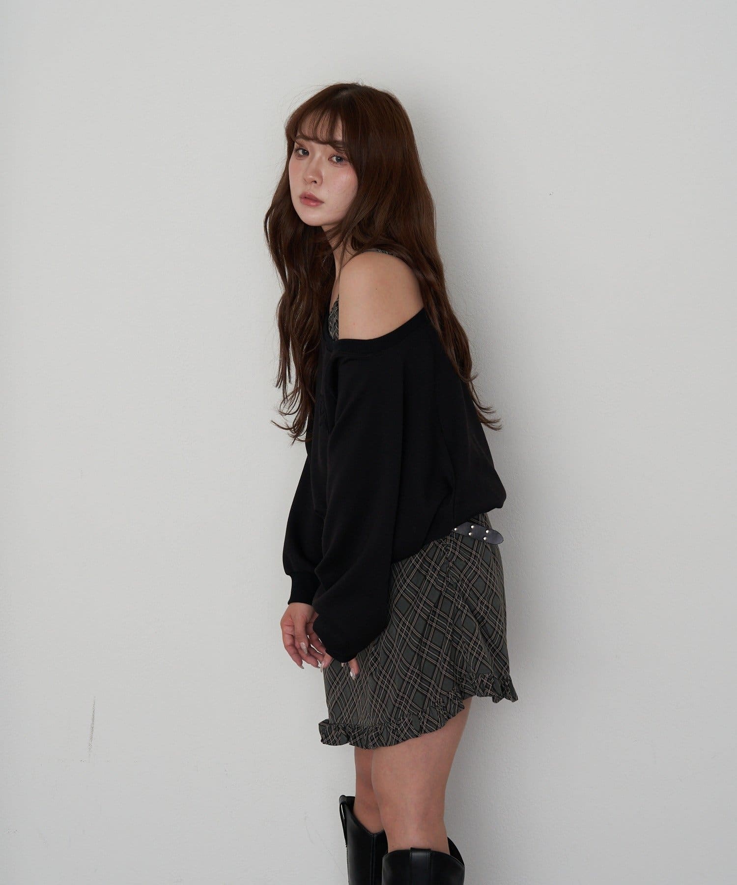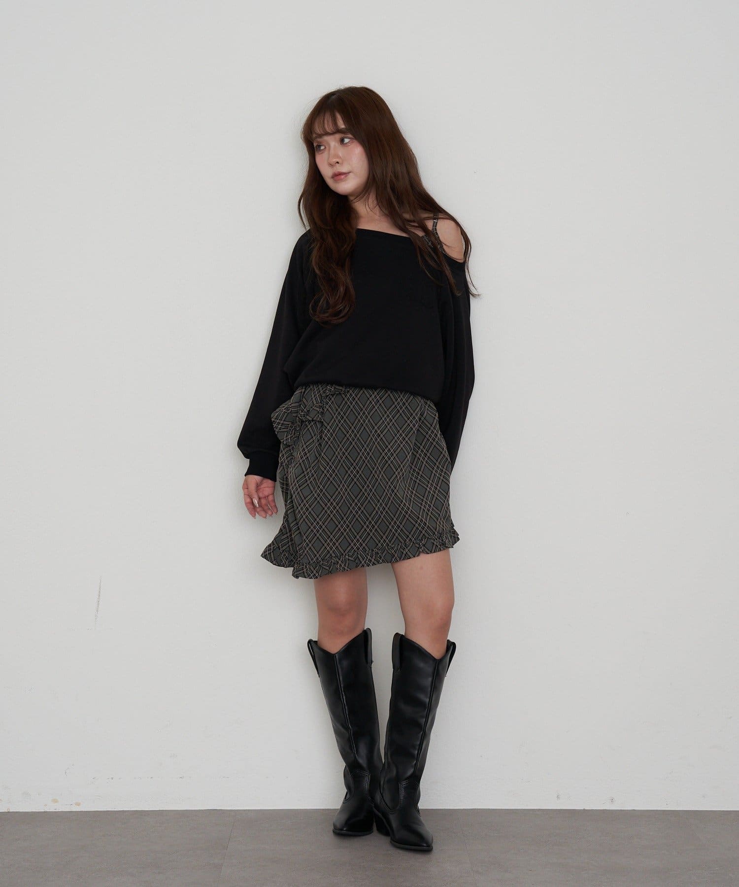 【RAY CASSIN】オフショルスウェットレイヤードチェックワンピース