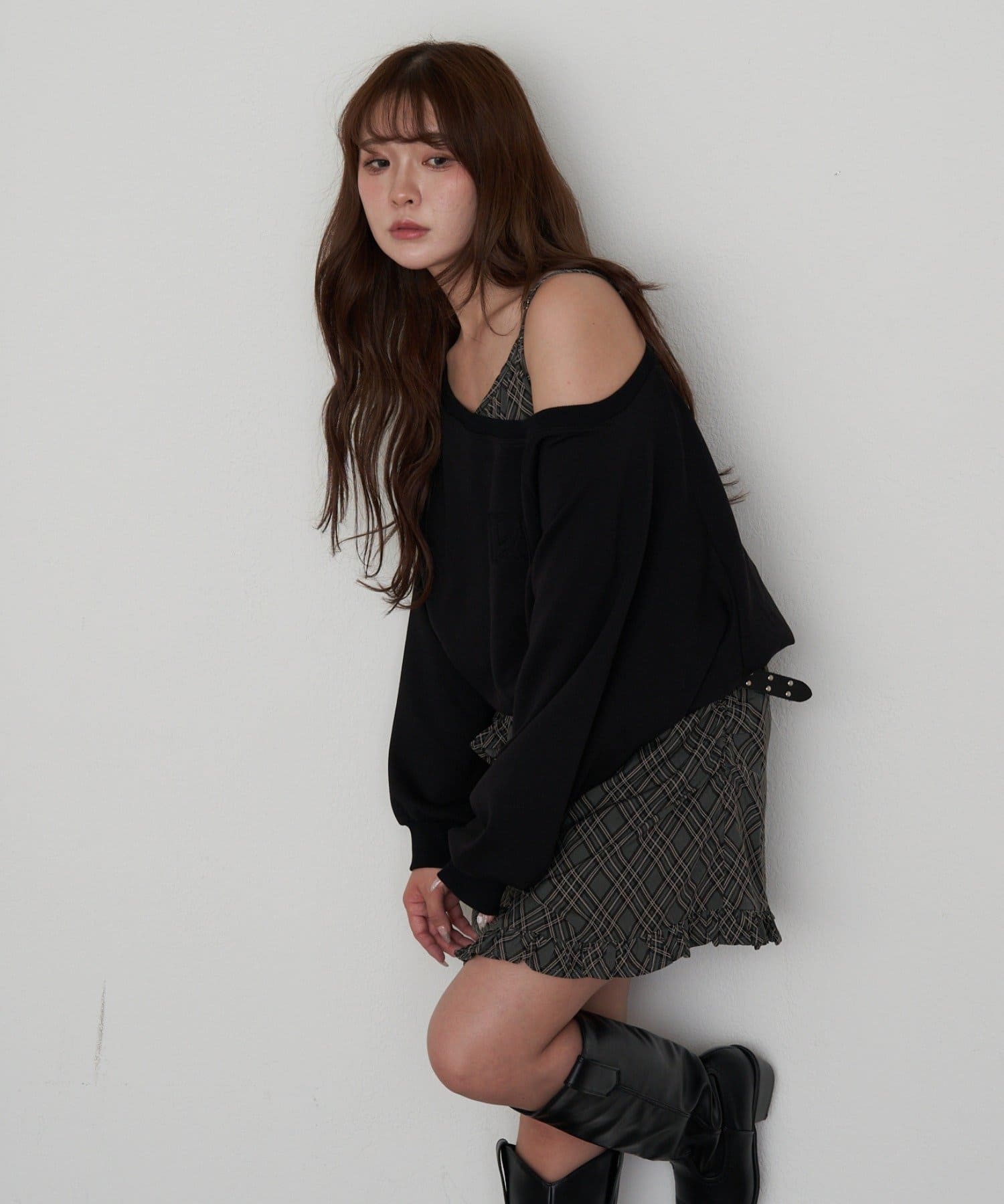 ・ショート丈のスウェットと、キャミワンピースがセットになったアイテムです。(別々で着用可能)