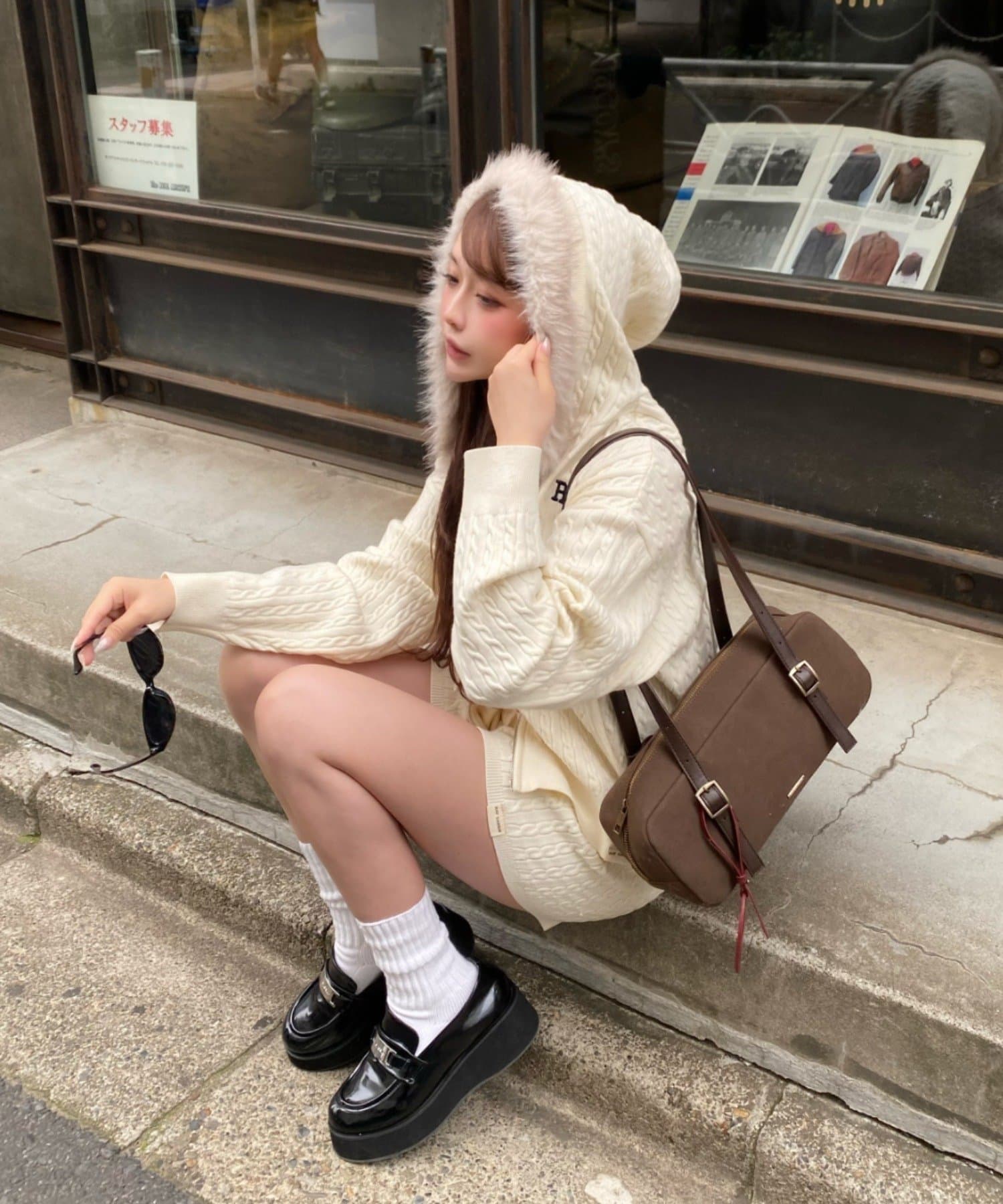 ・持ち手が長めなので冬のアウターを着ての肩掛けもストレスなく使えます。