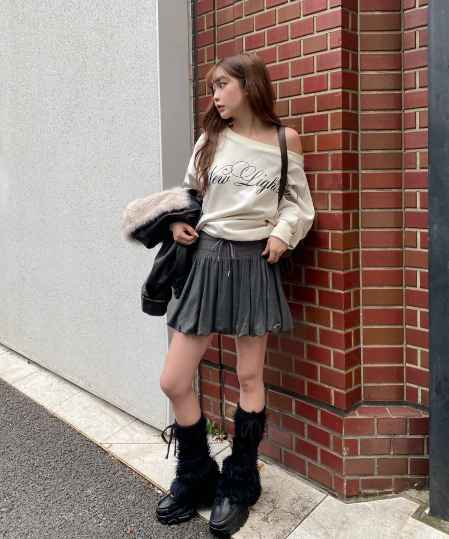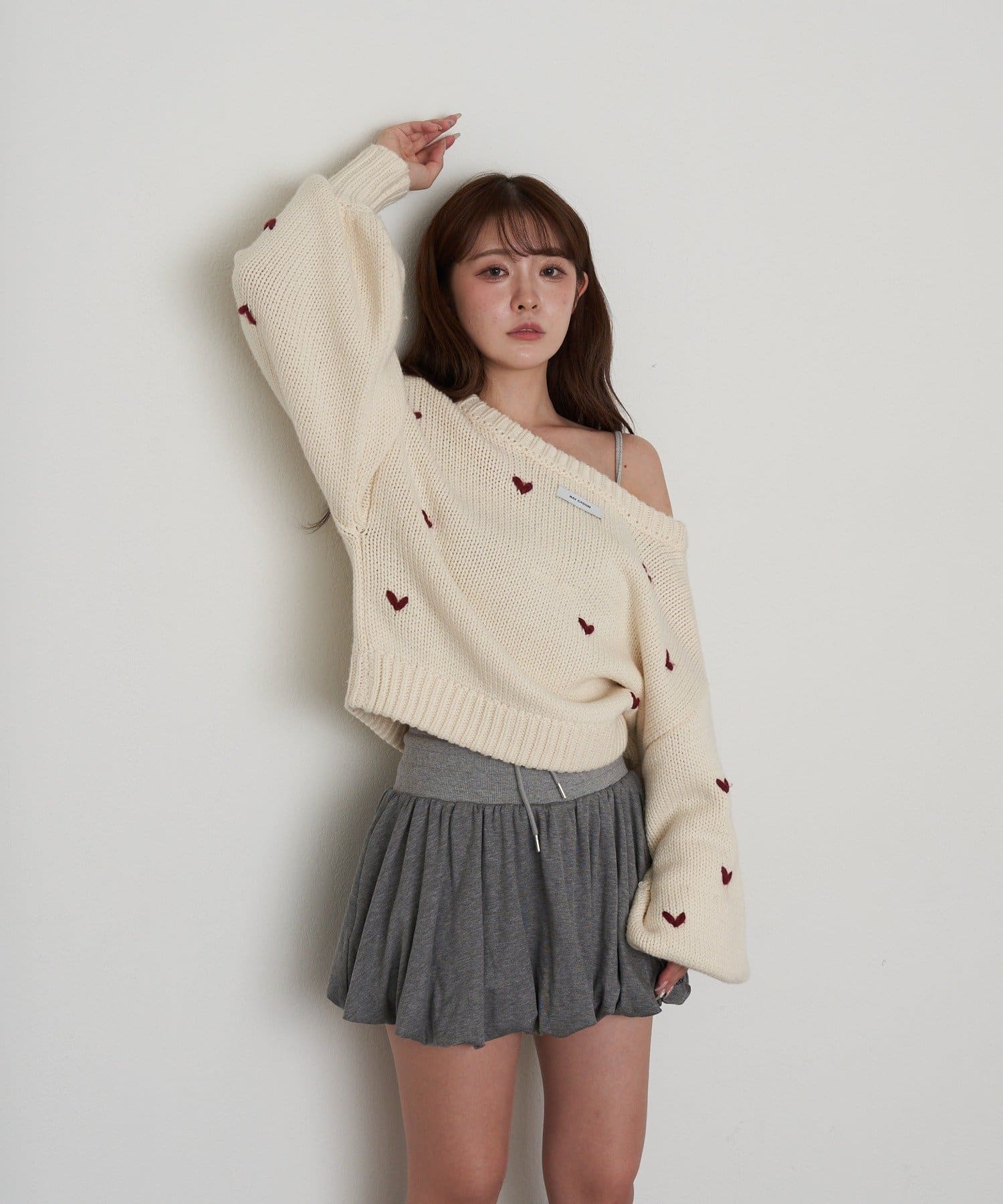 ・ざっくりしたニットと合わせたフェミニンスタイルもオススメ◎