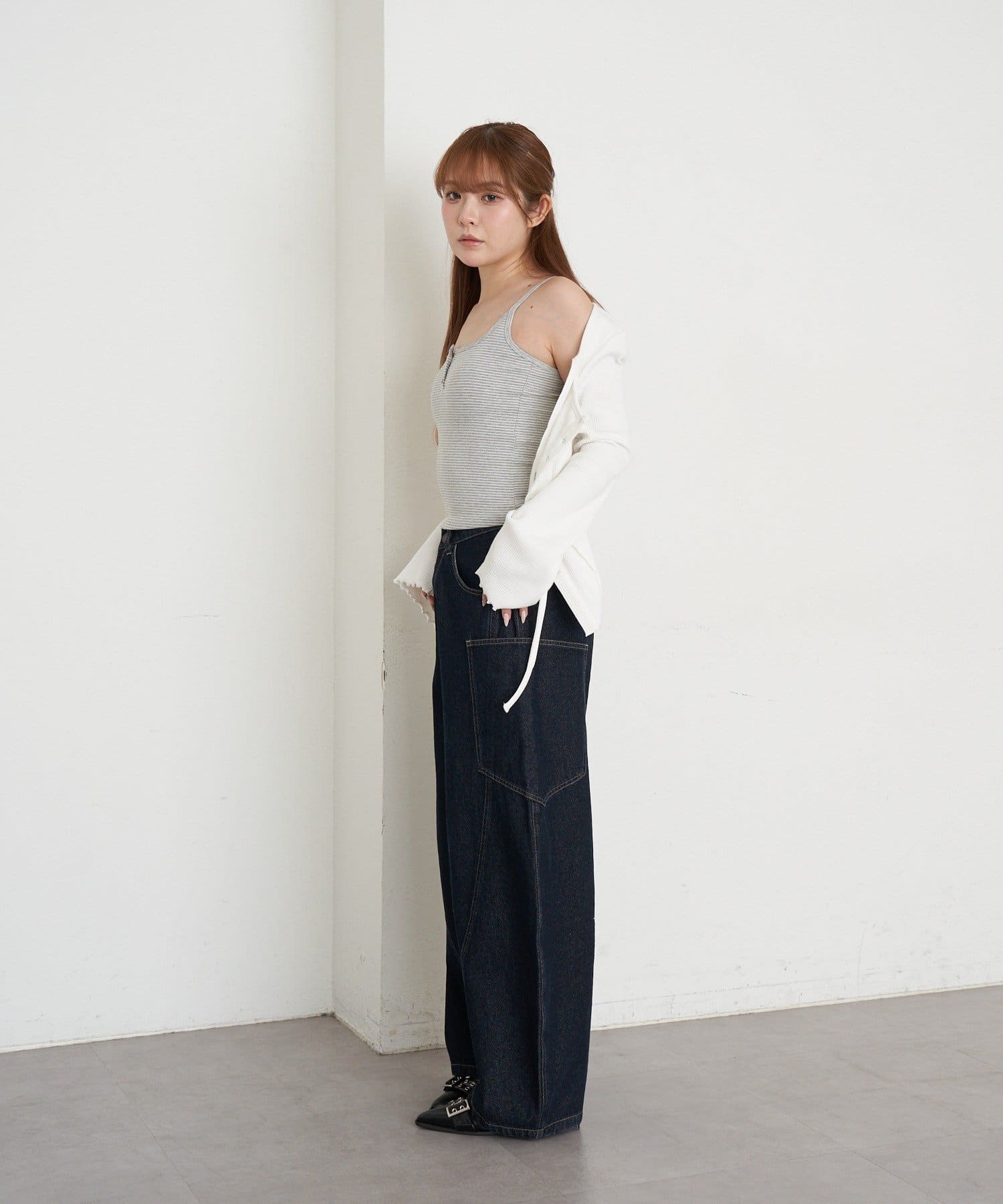 ・ゆったりトップスと合わせたメンズライクなスタイリングも◎