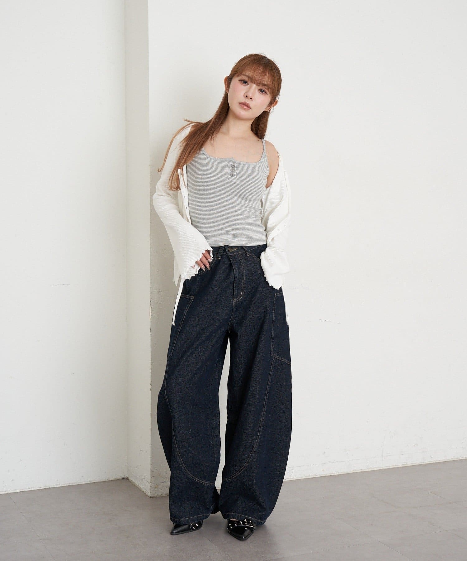 ・ゆったりトップスと合わせたメンズライクなスタイリングも◎