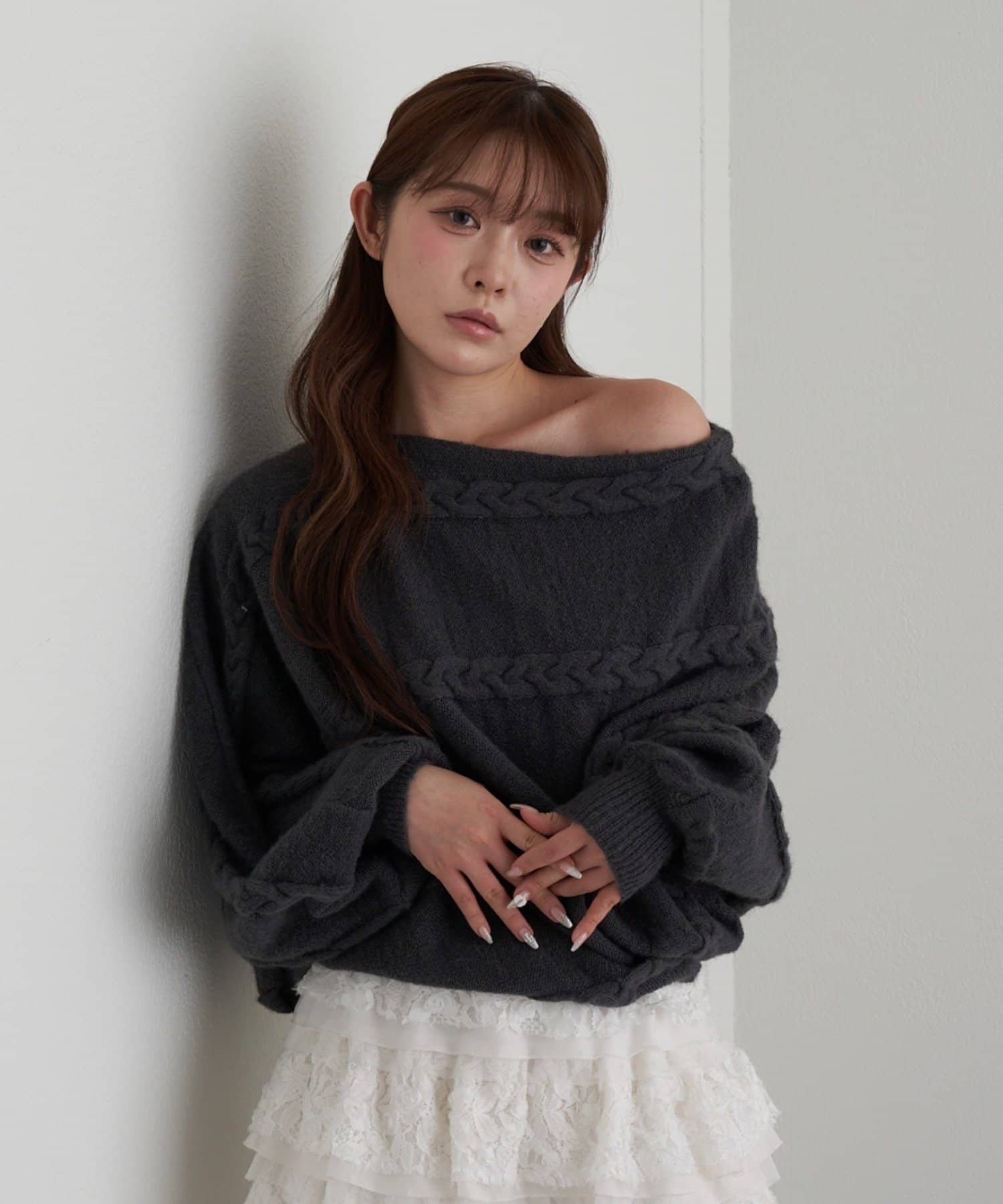 【RAY CASSIN】ケーブルドルマンルーズニット