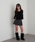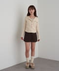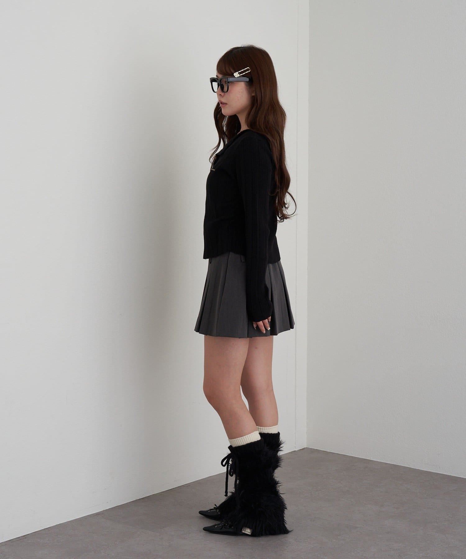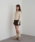 ・ミニ丈のボトムと合わせたフェミニンスタイル