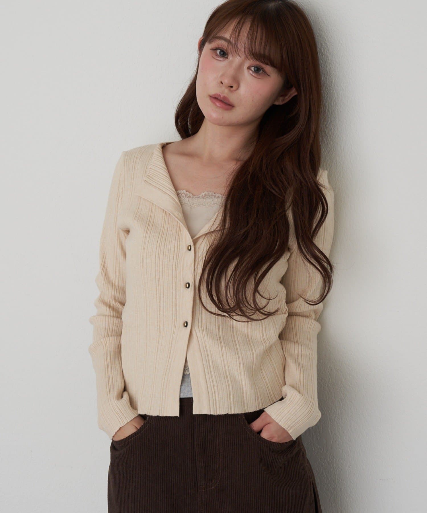 TOP > RAY CASSIN > レディース > トップス > ニット/セーター > レースレイヤードリブ前あきニット