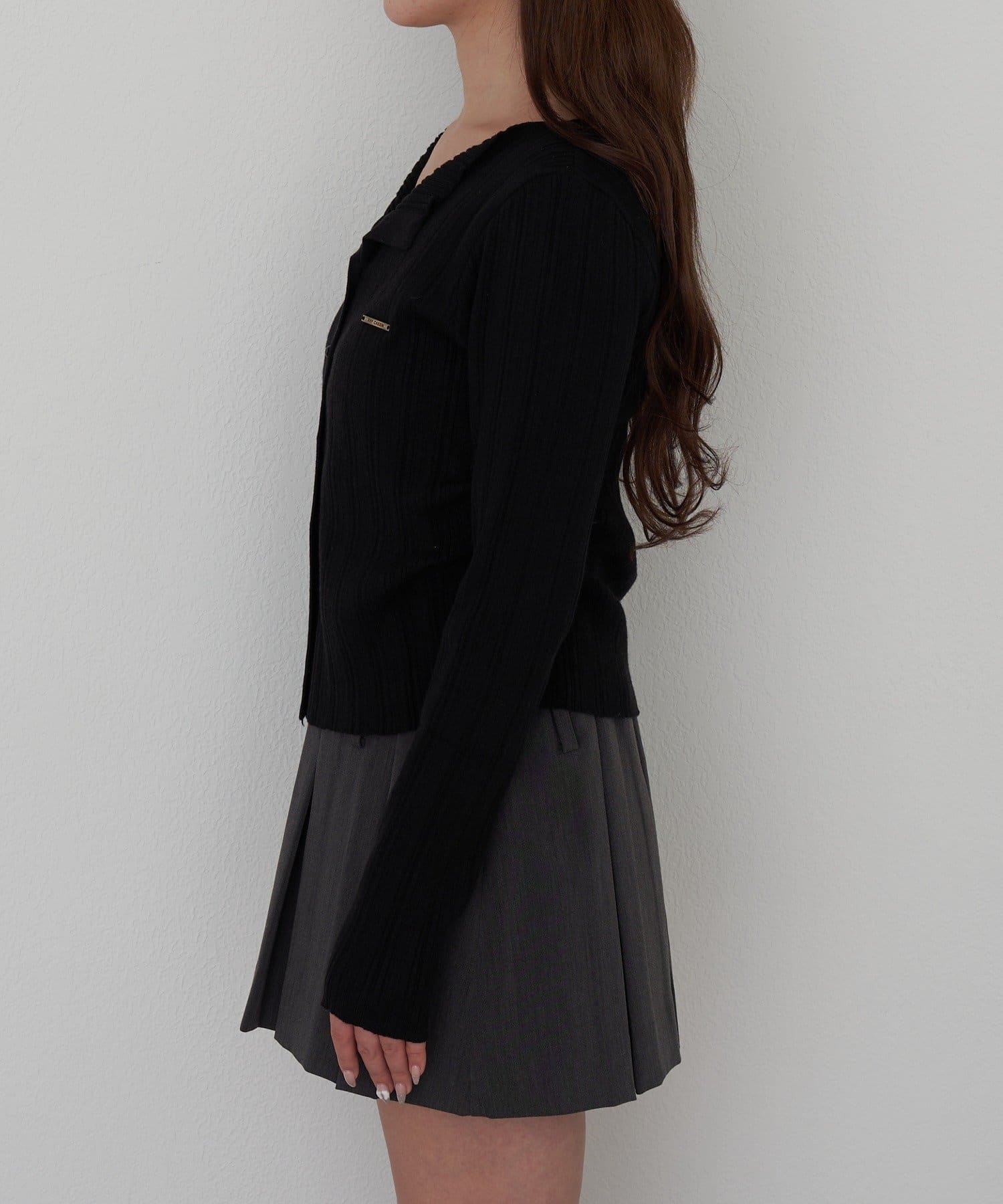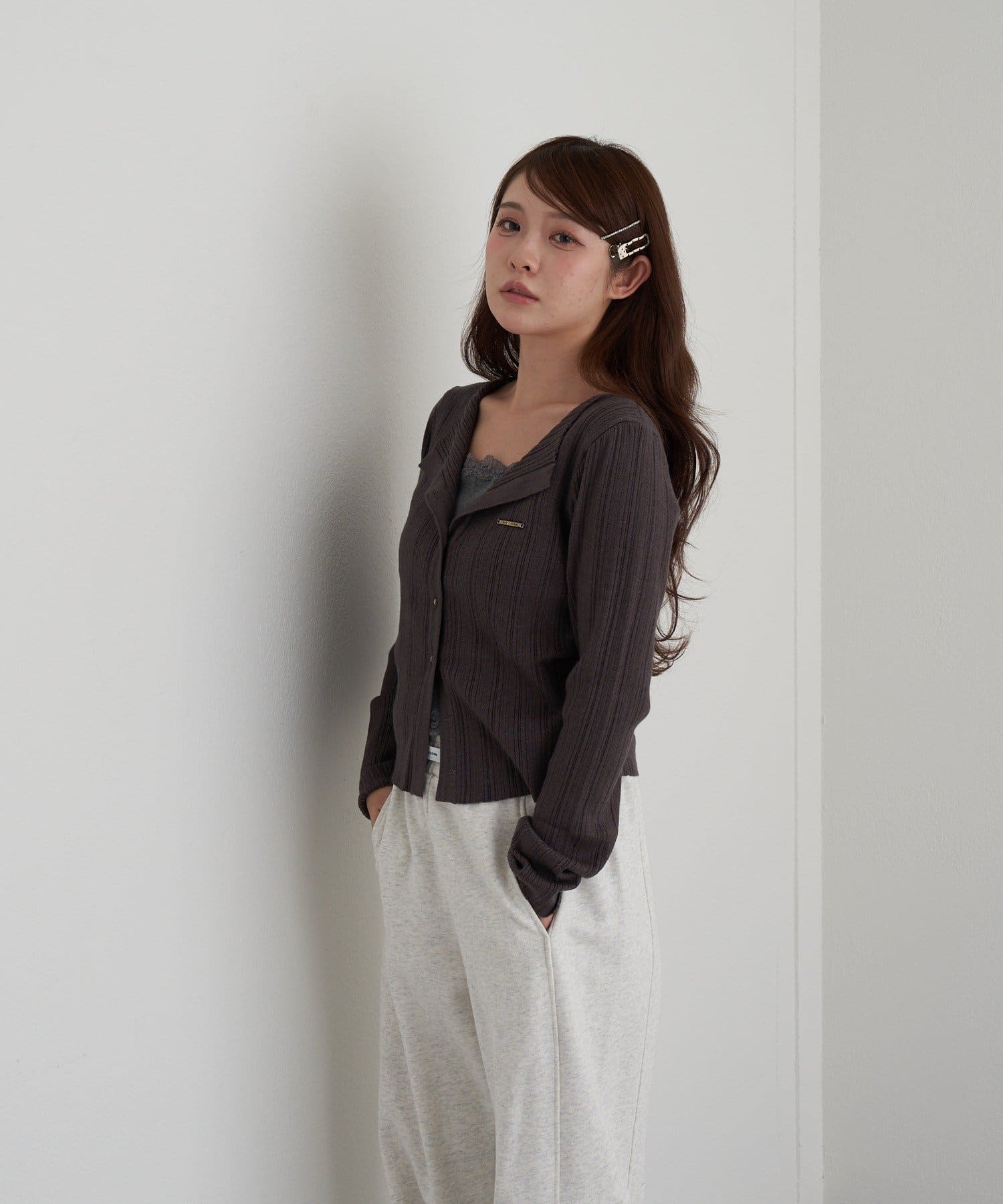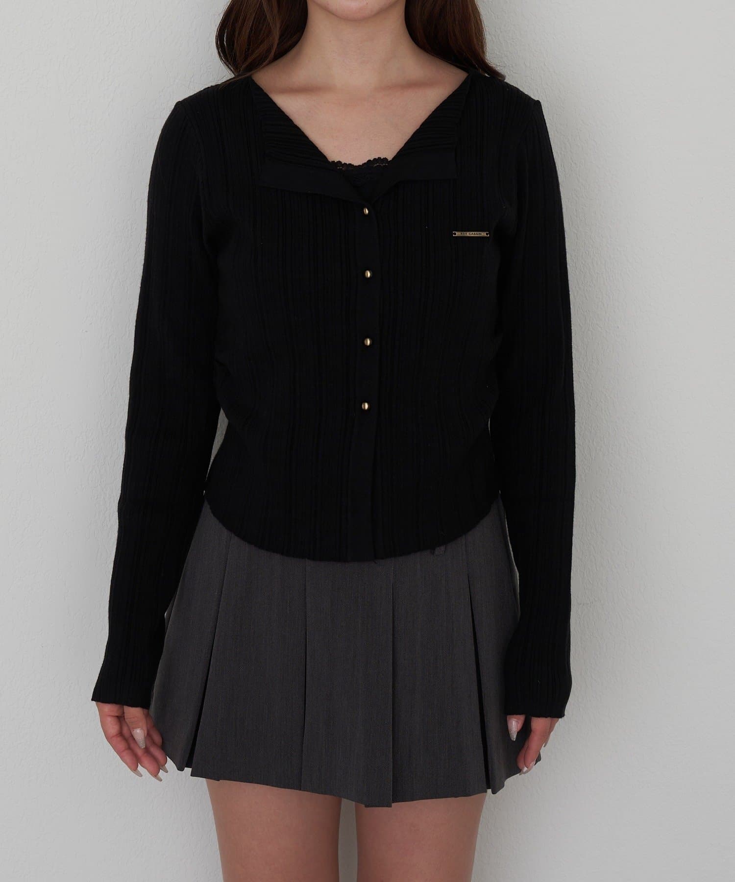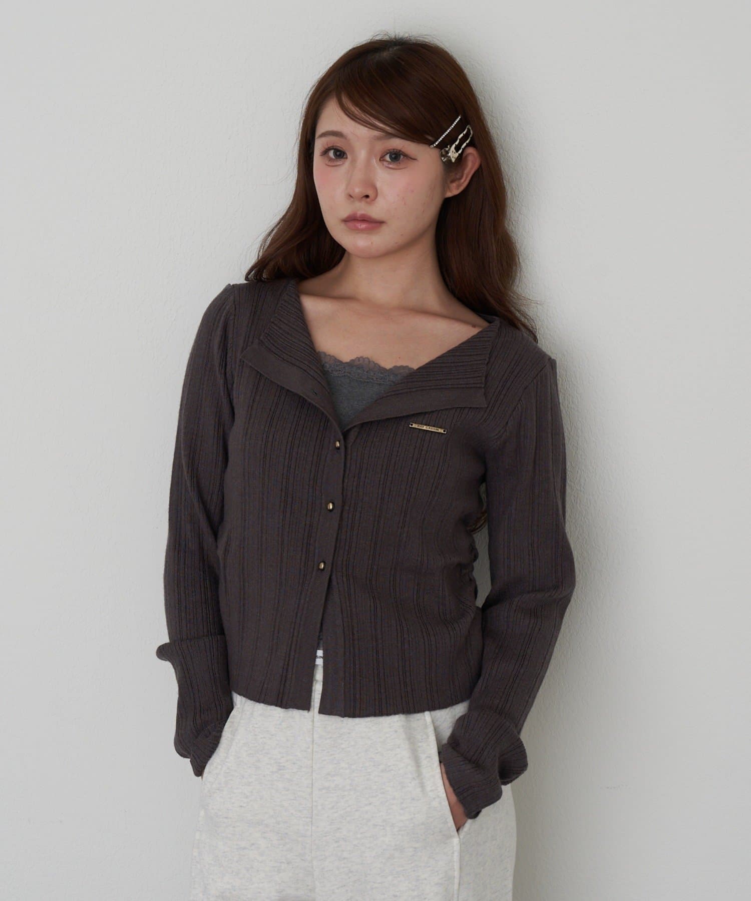 RAY CASSIN(レイカズン) レースレイヤードリブ前あきニット