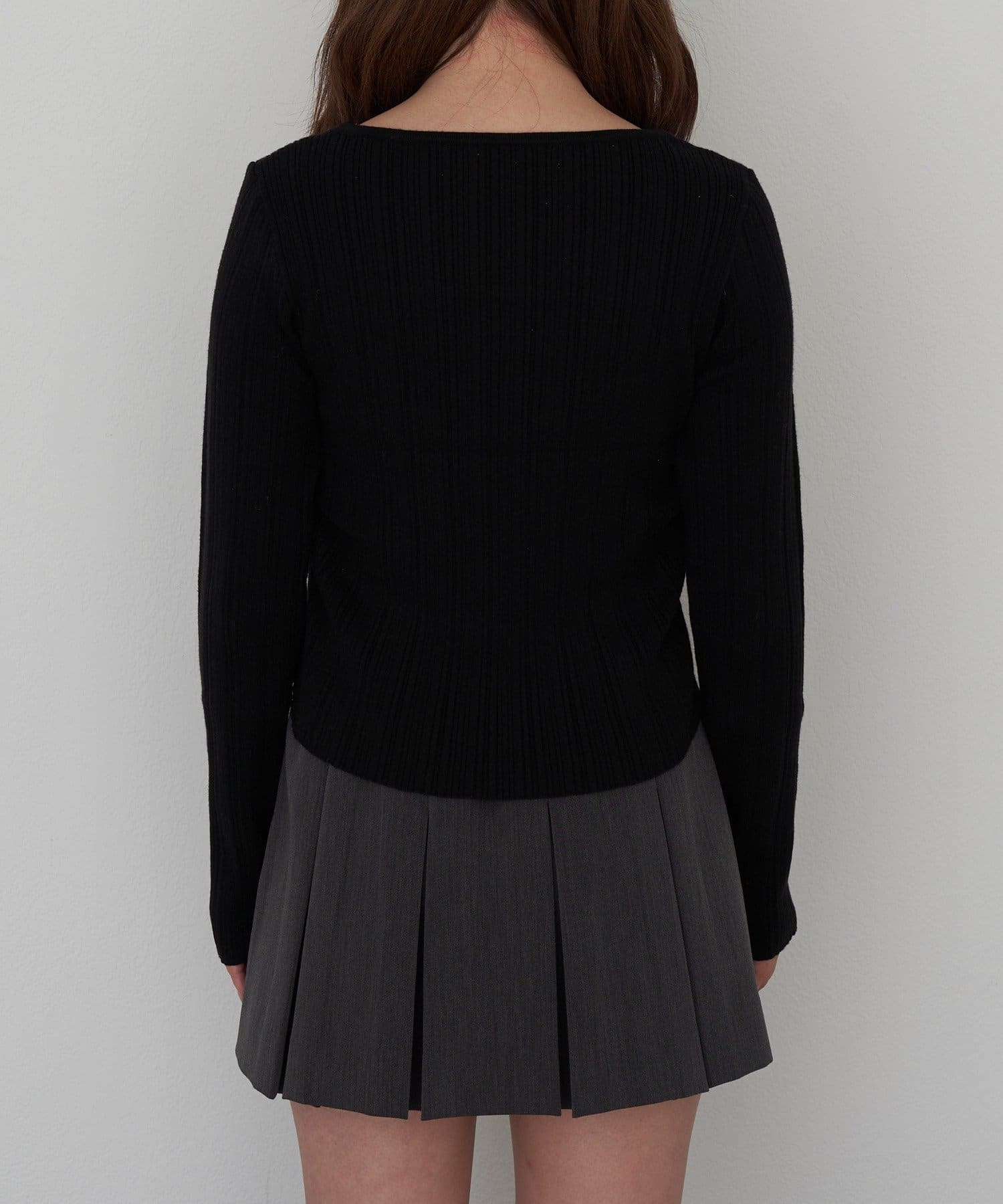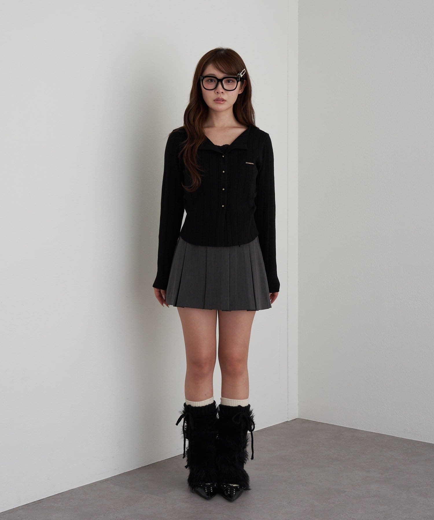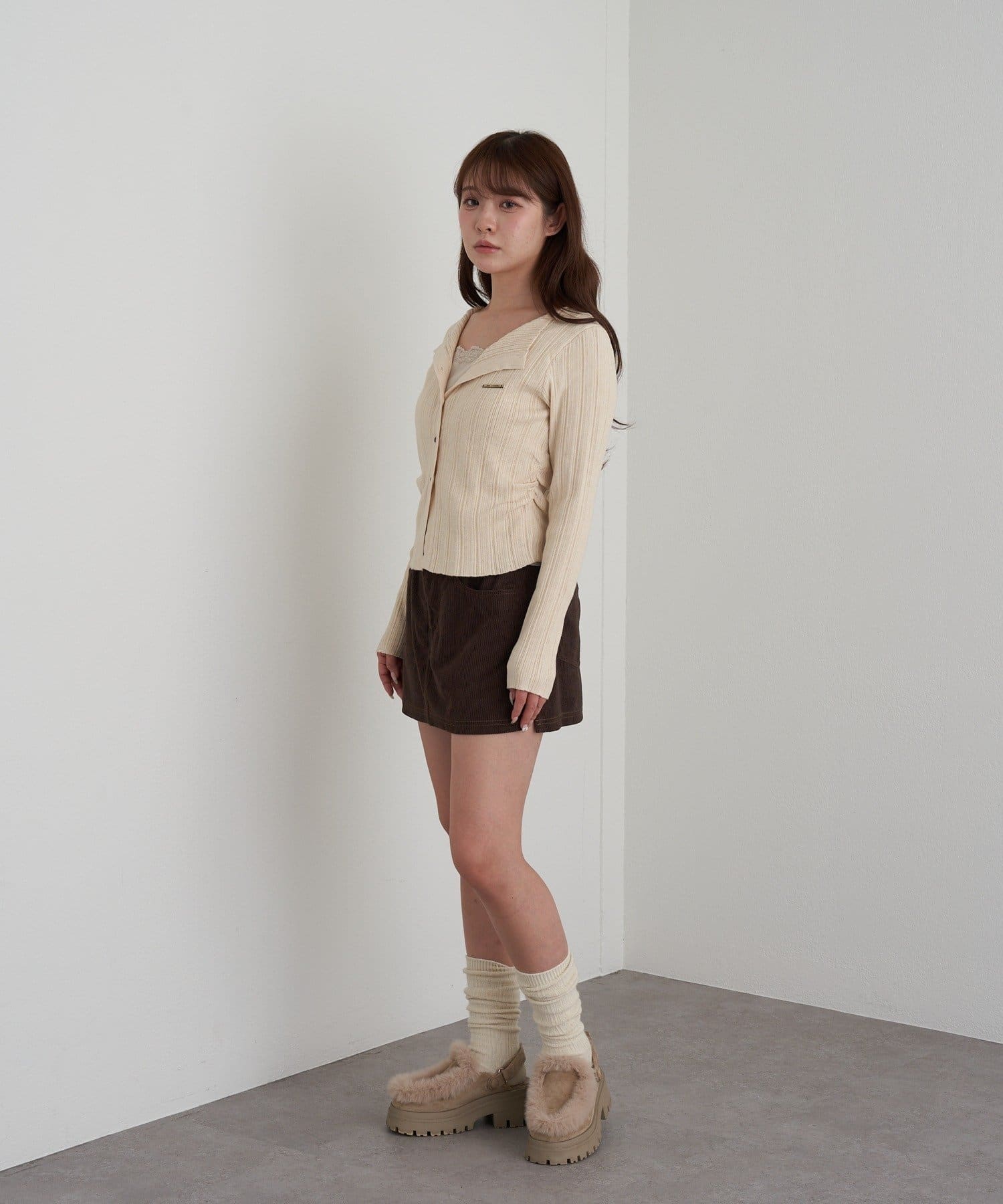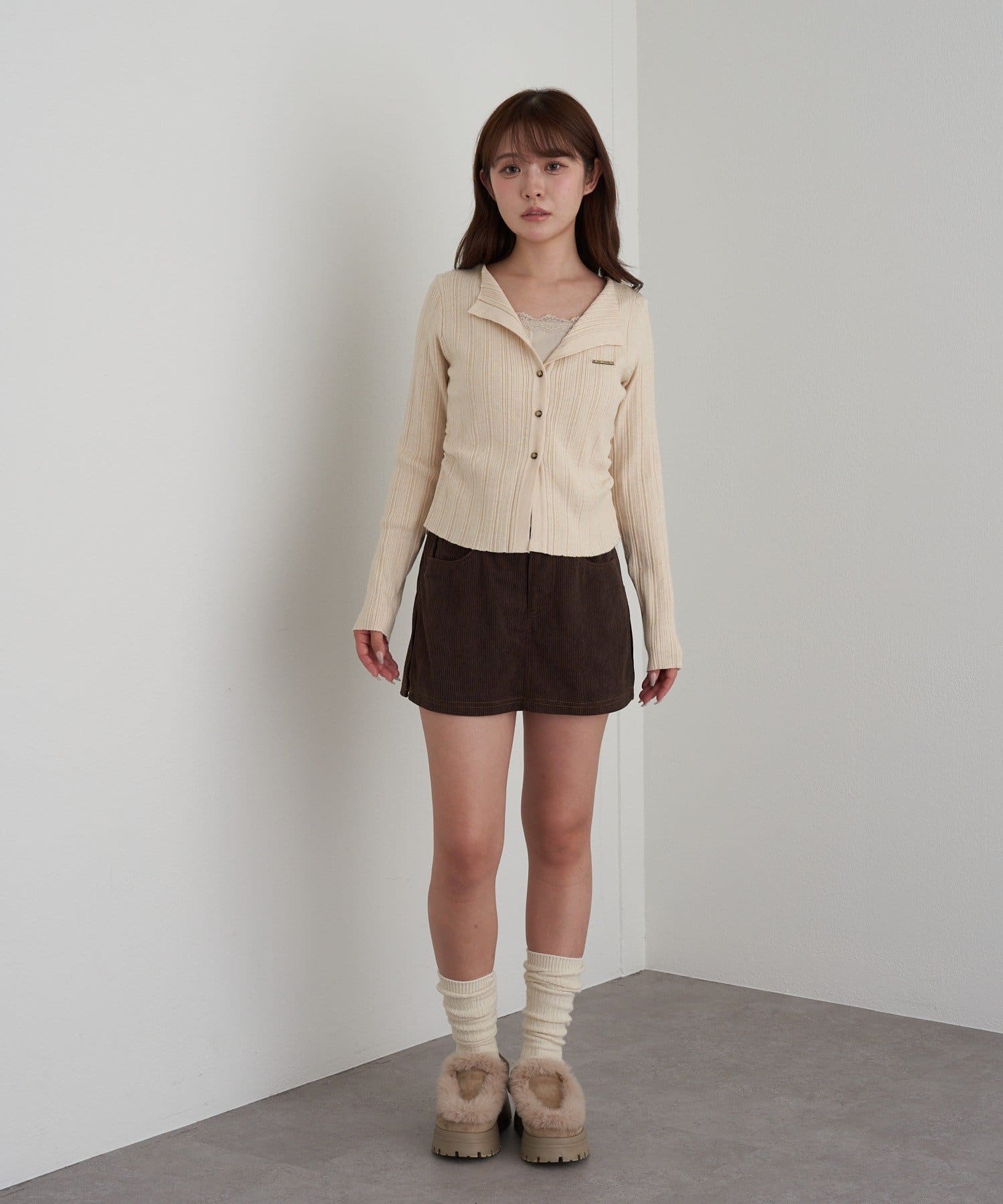 RAY CASSIN(レイカズン) レースレイヤードリブ前あきニット