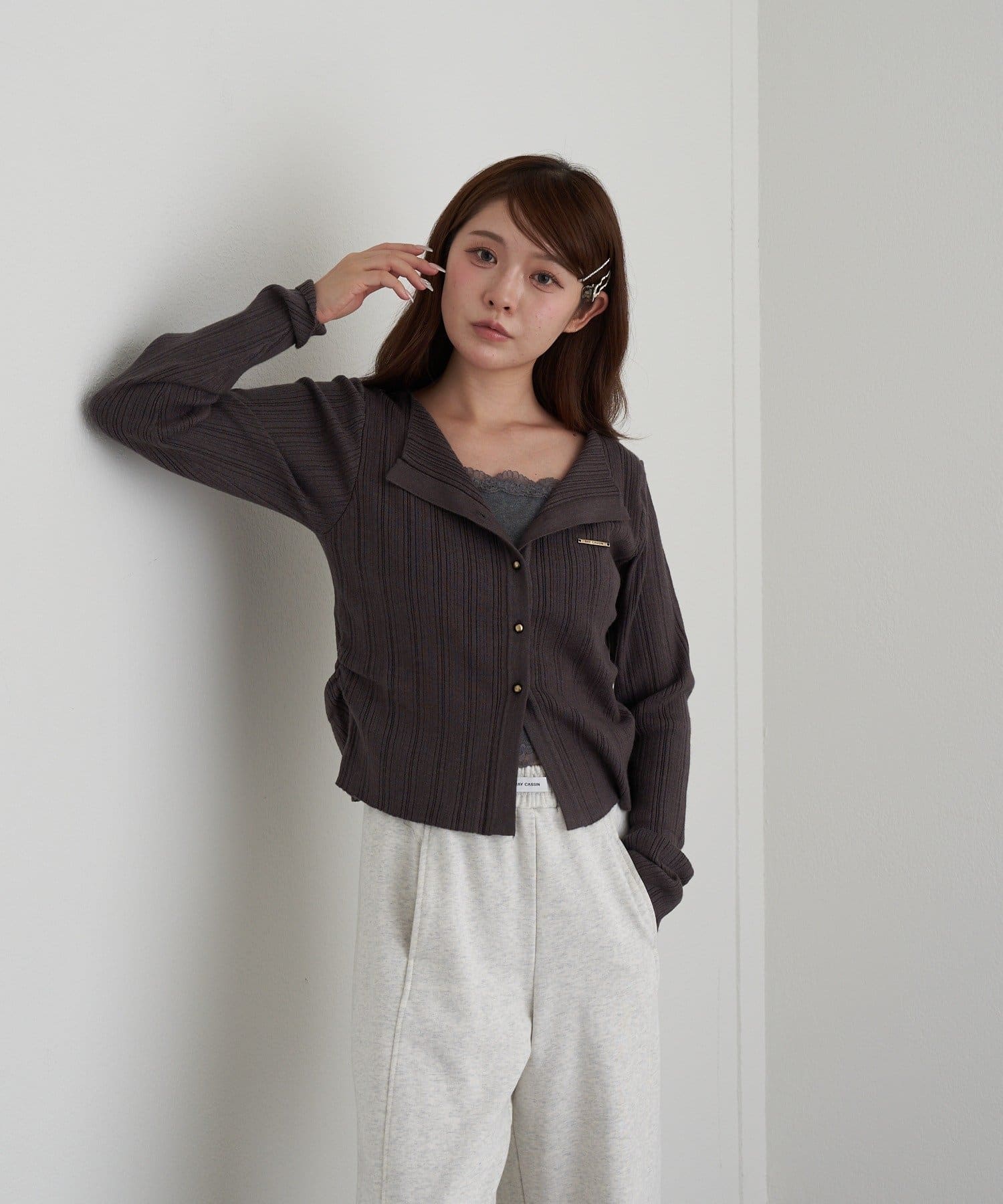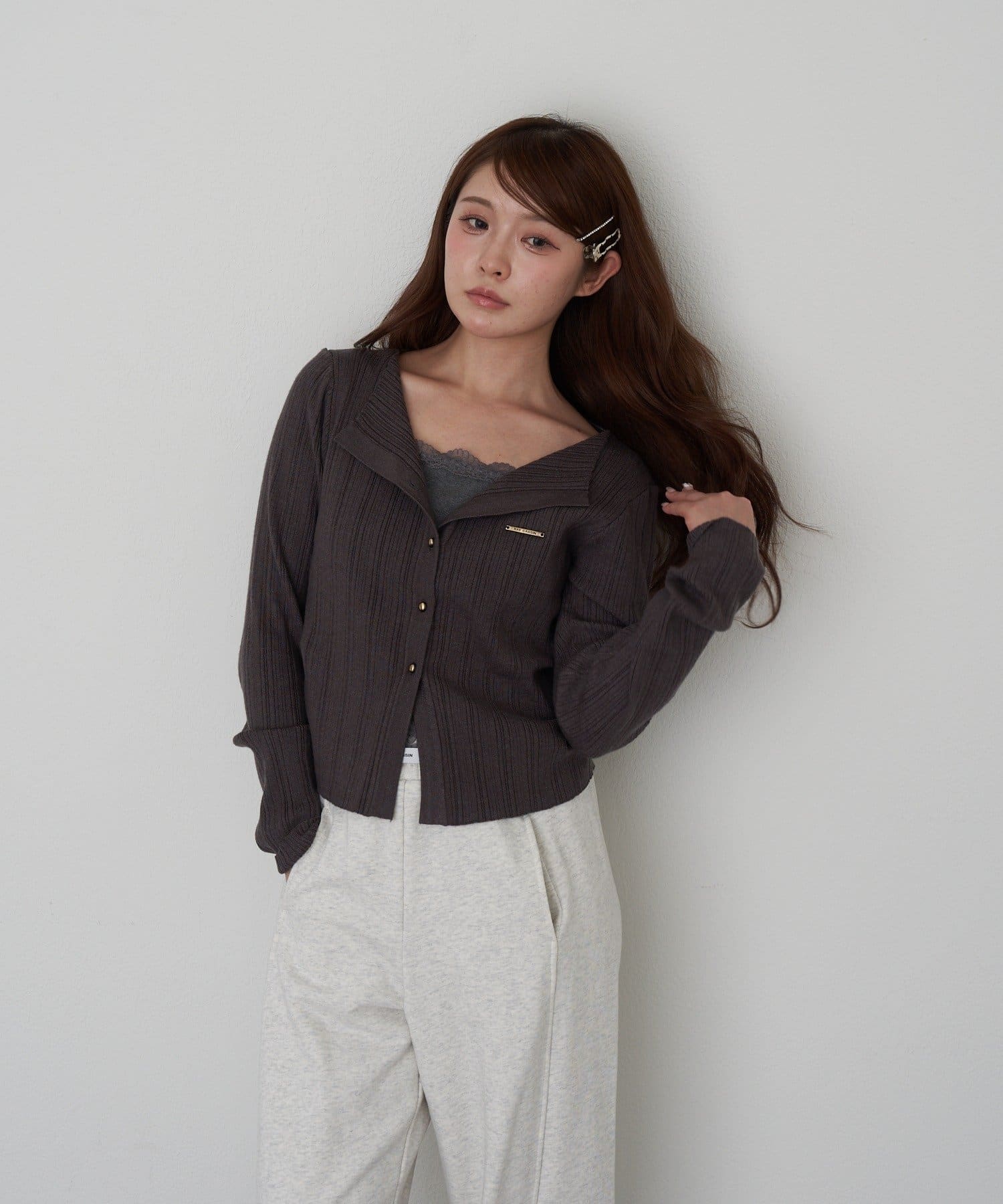 ・ロンTとカーディガンをレイヤードしたスタイルが1枚で完成するアイテムです。