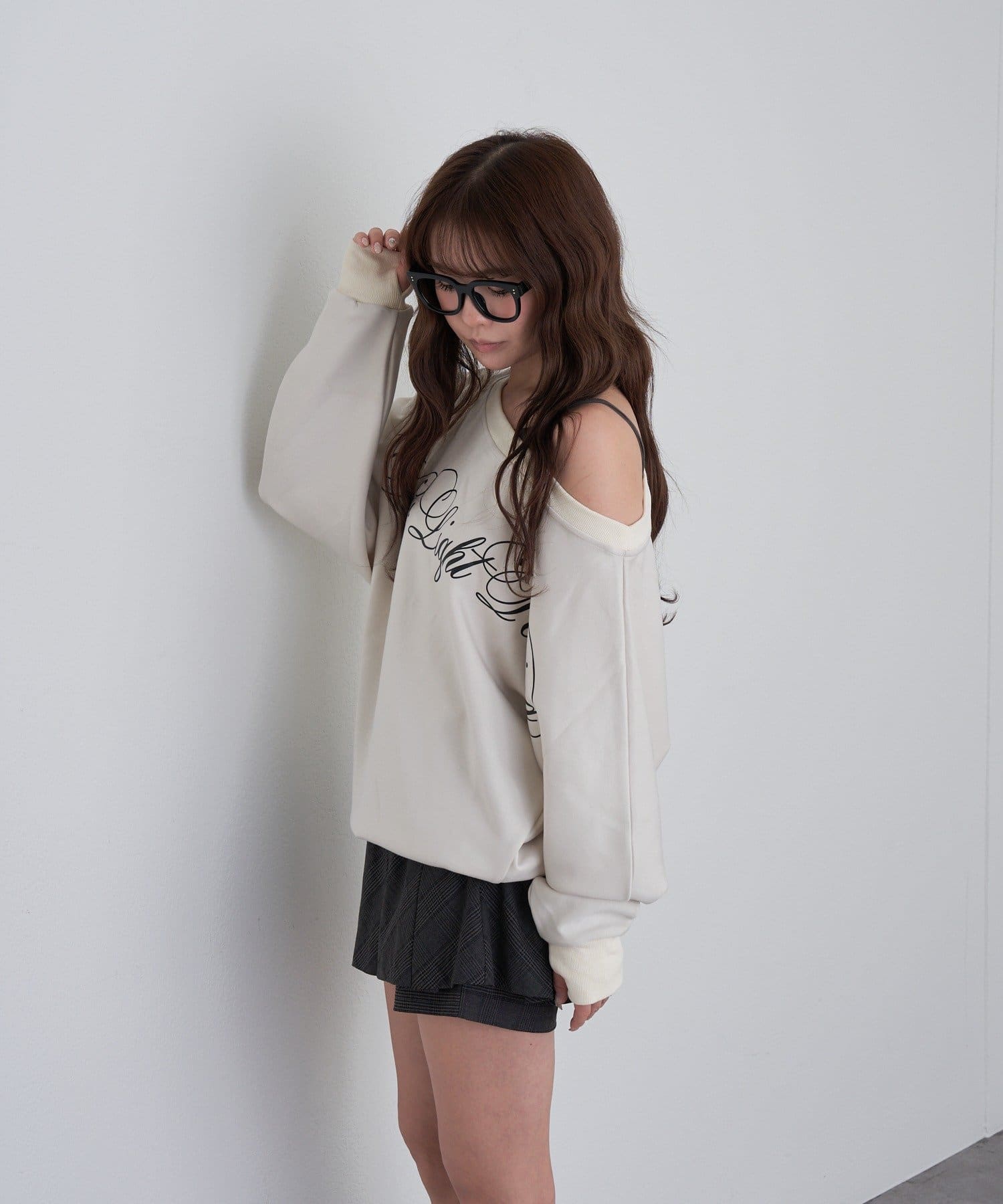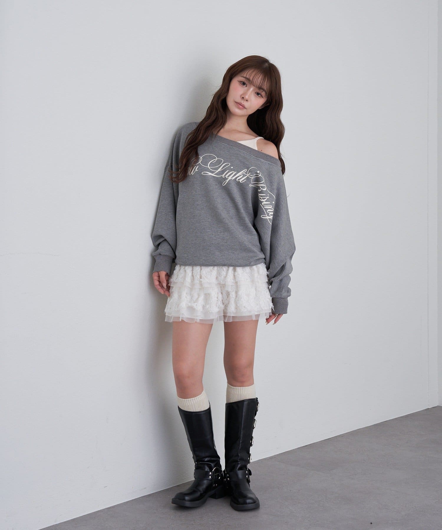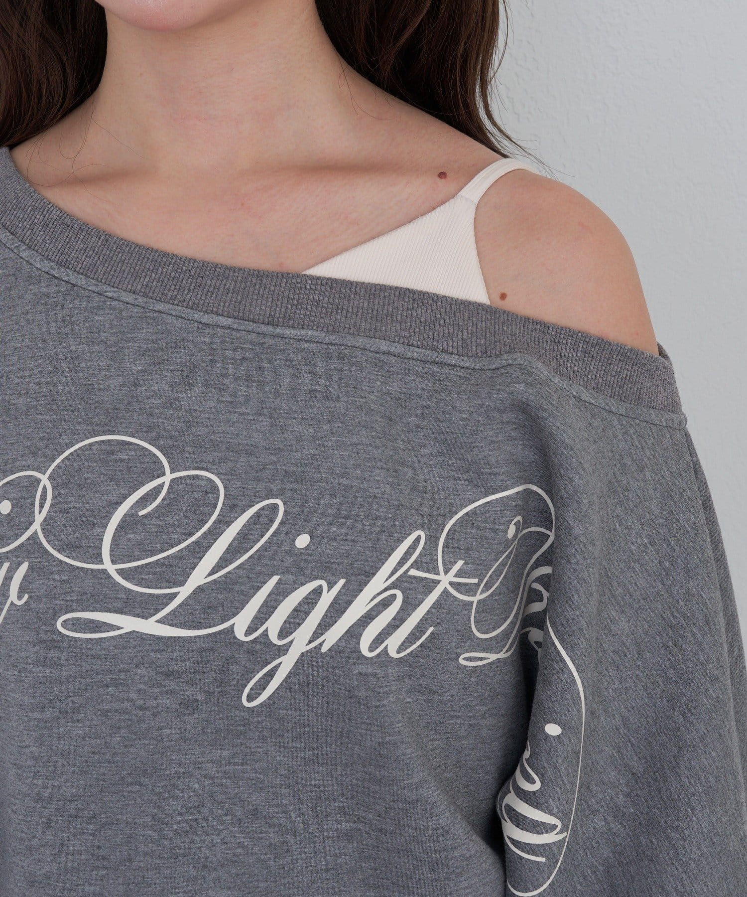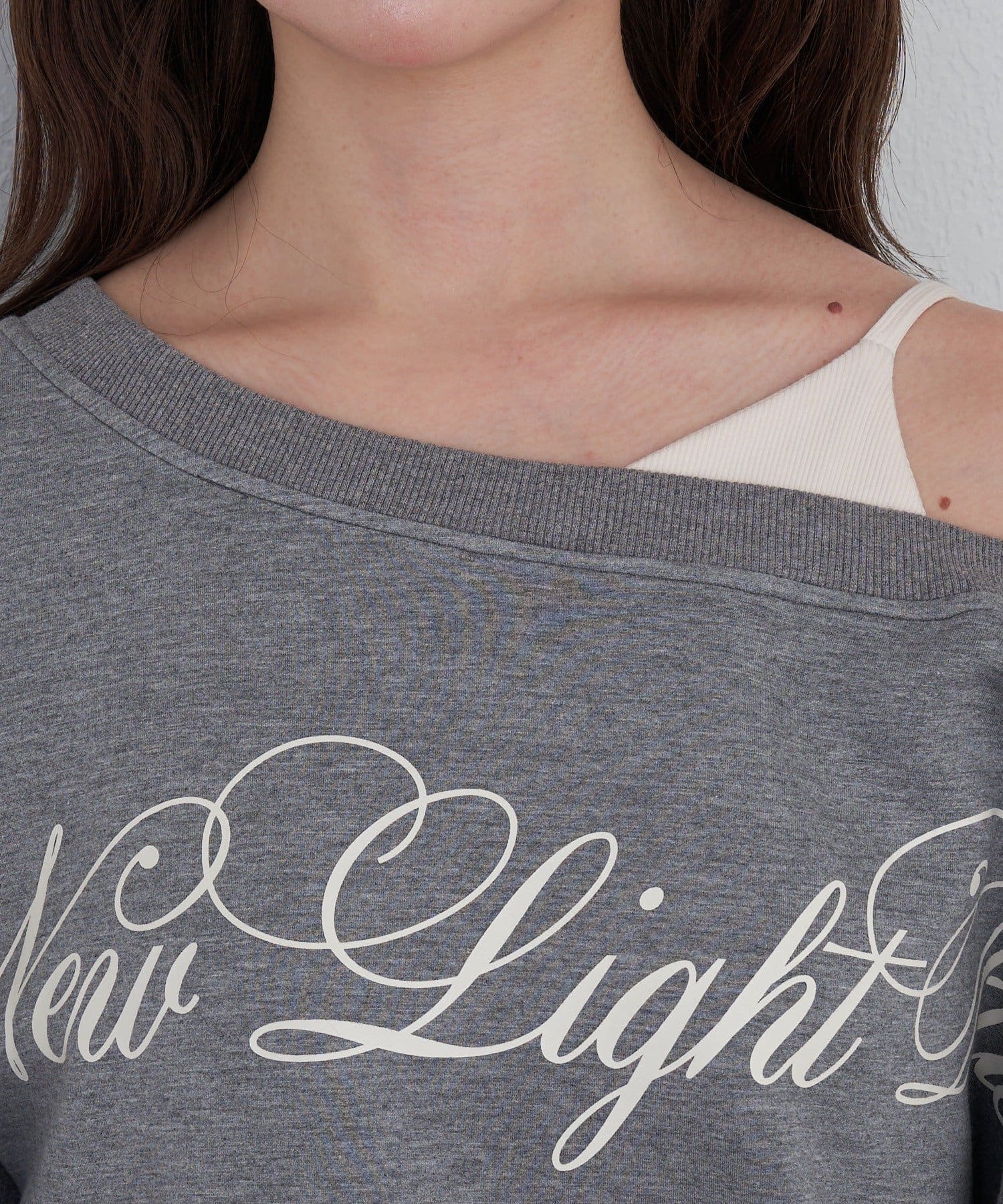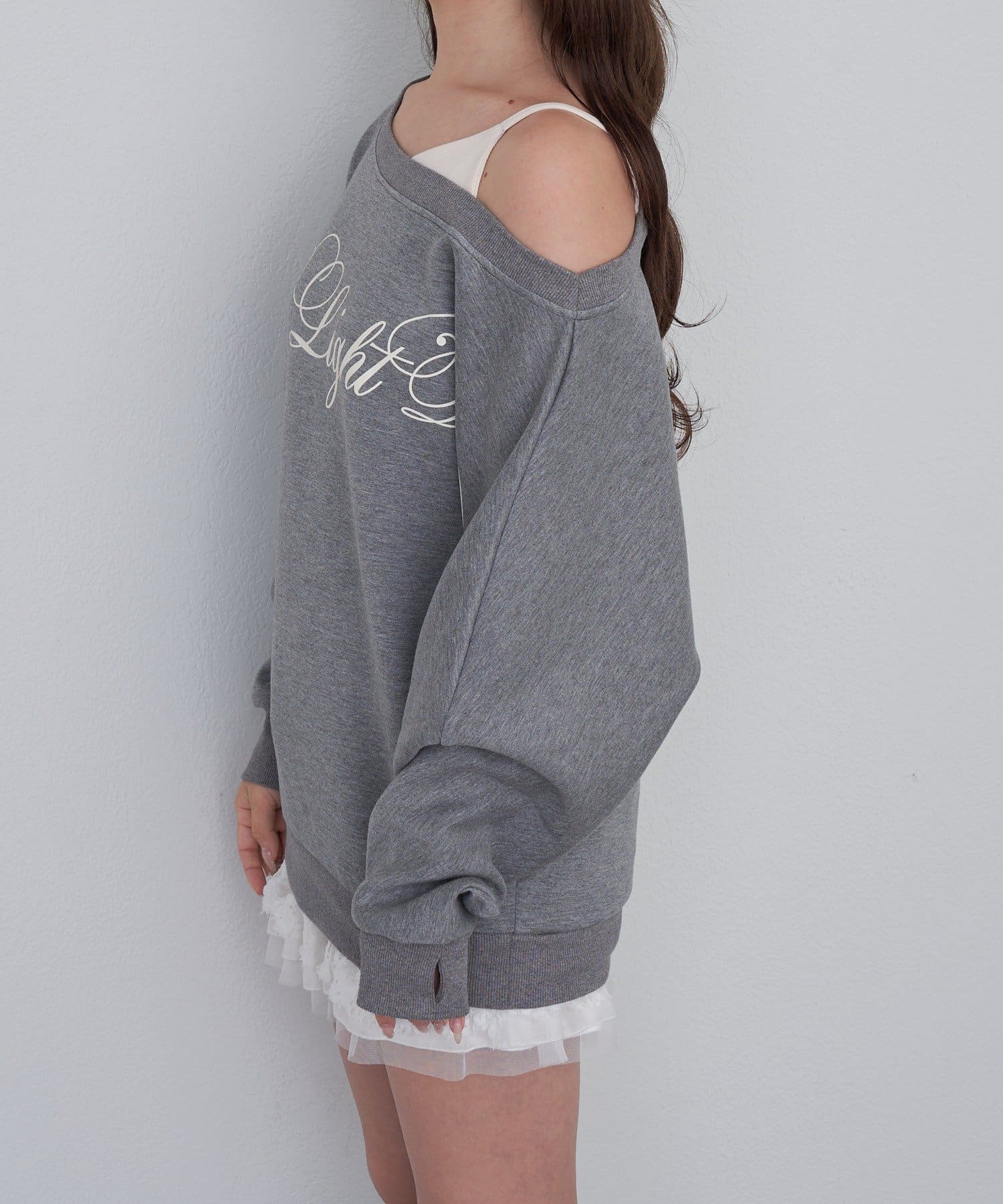 レイヤードロゴワンショルスウェット