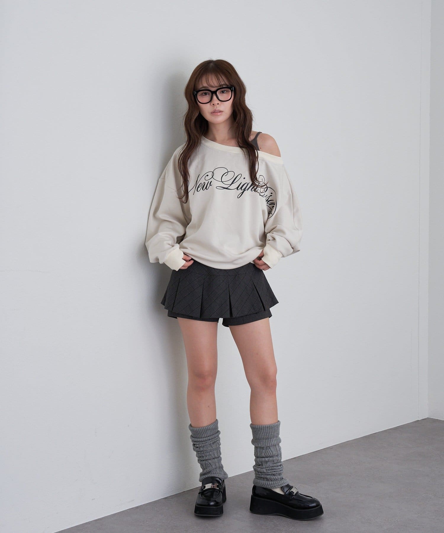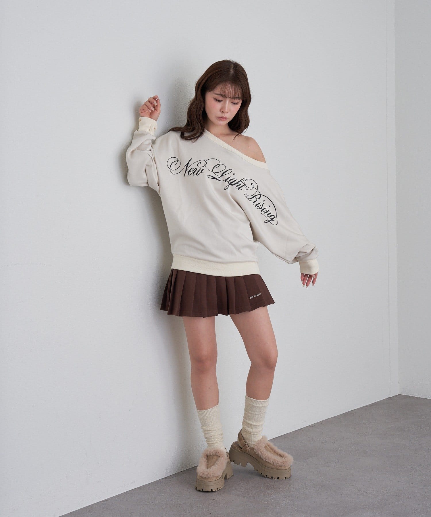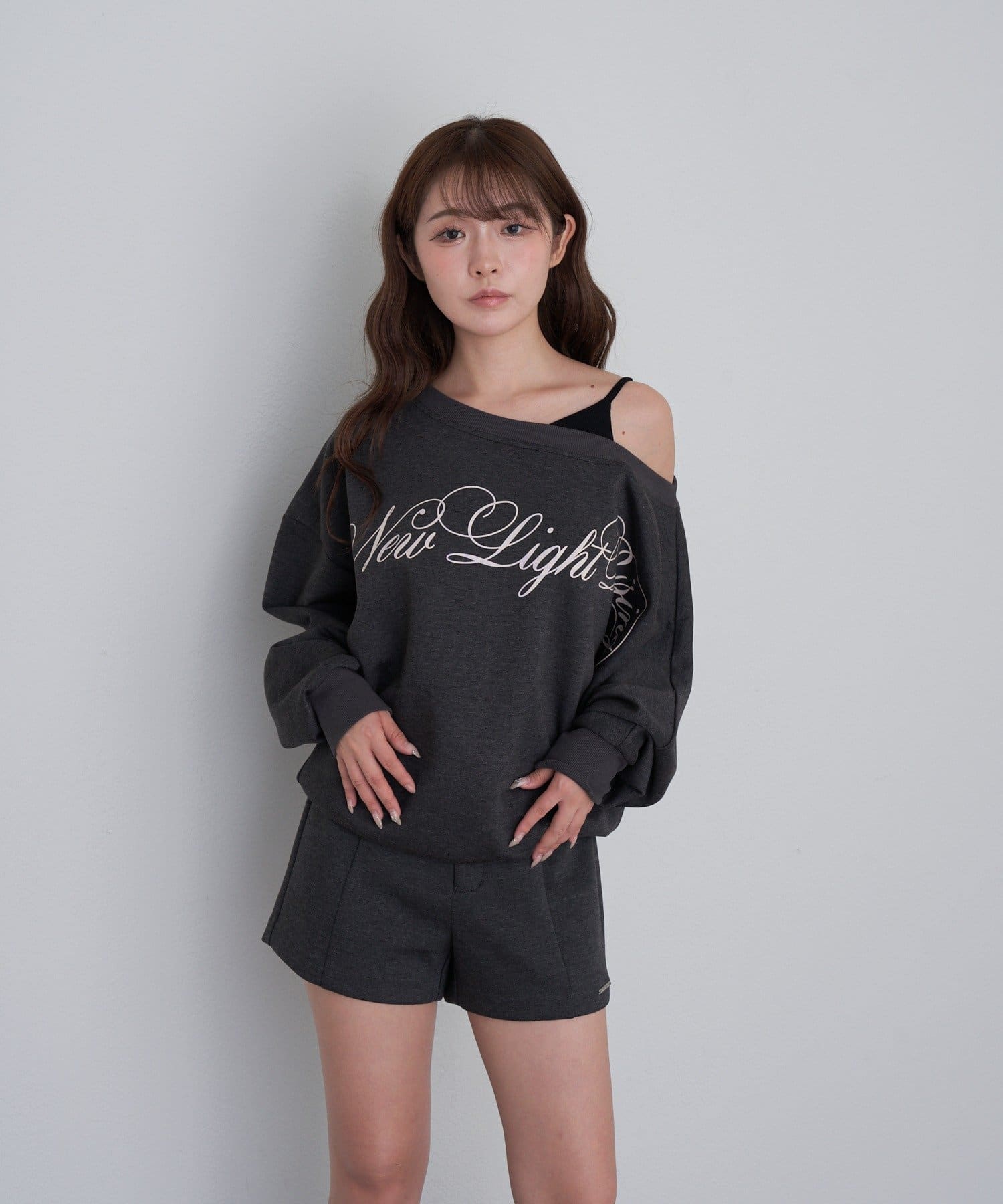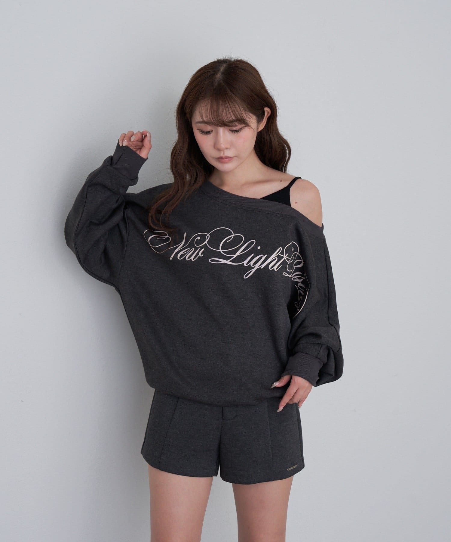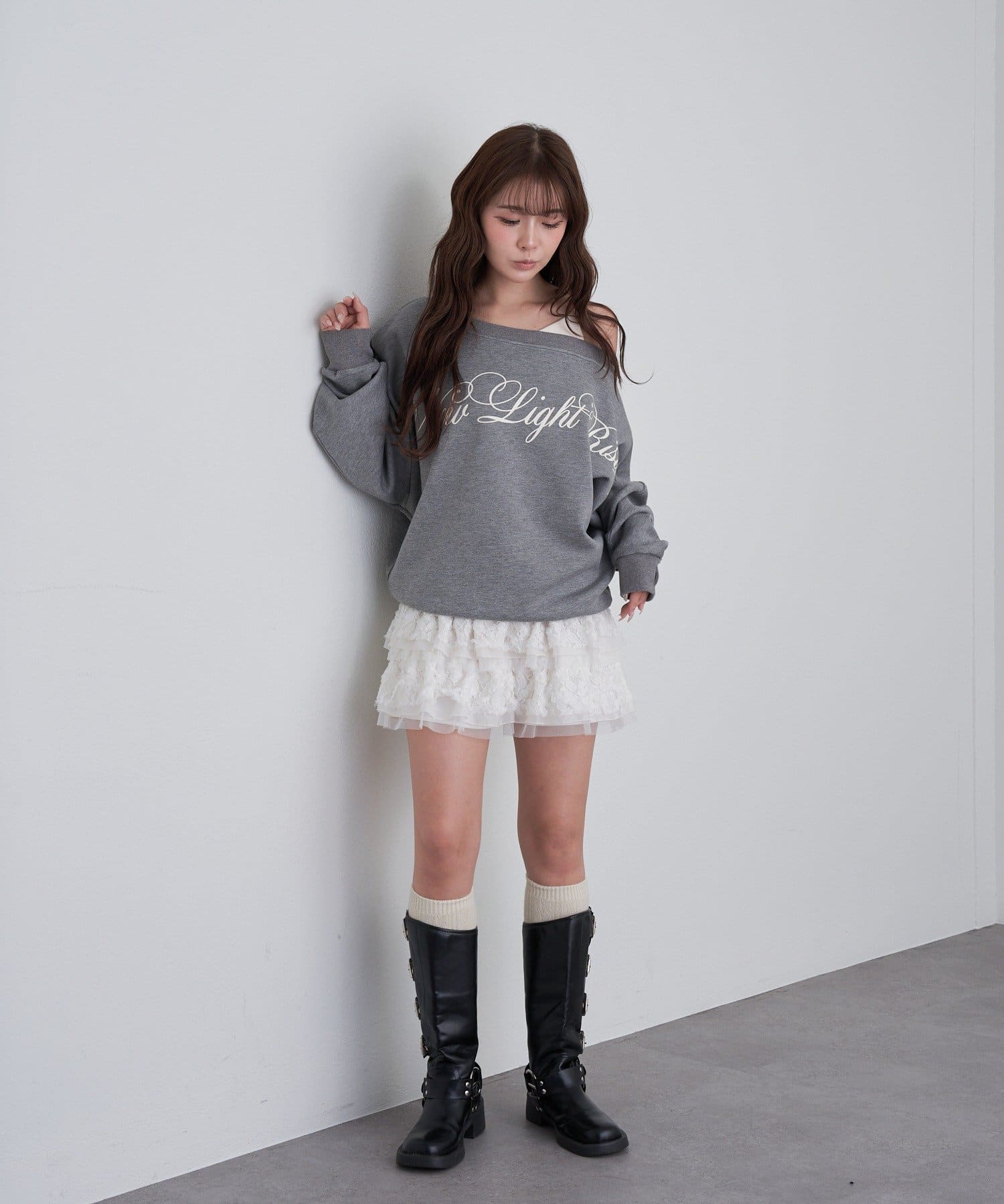 レイヤードロゴワンショルスウェット