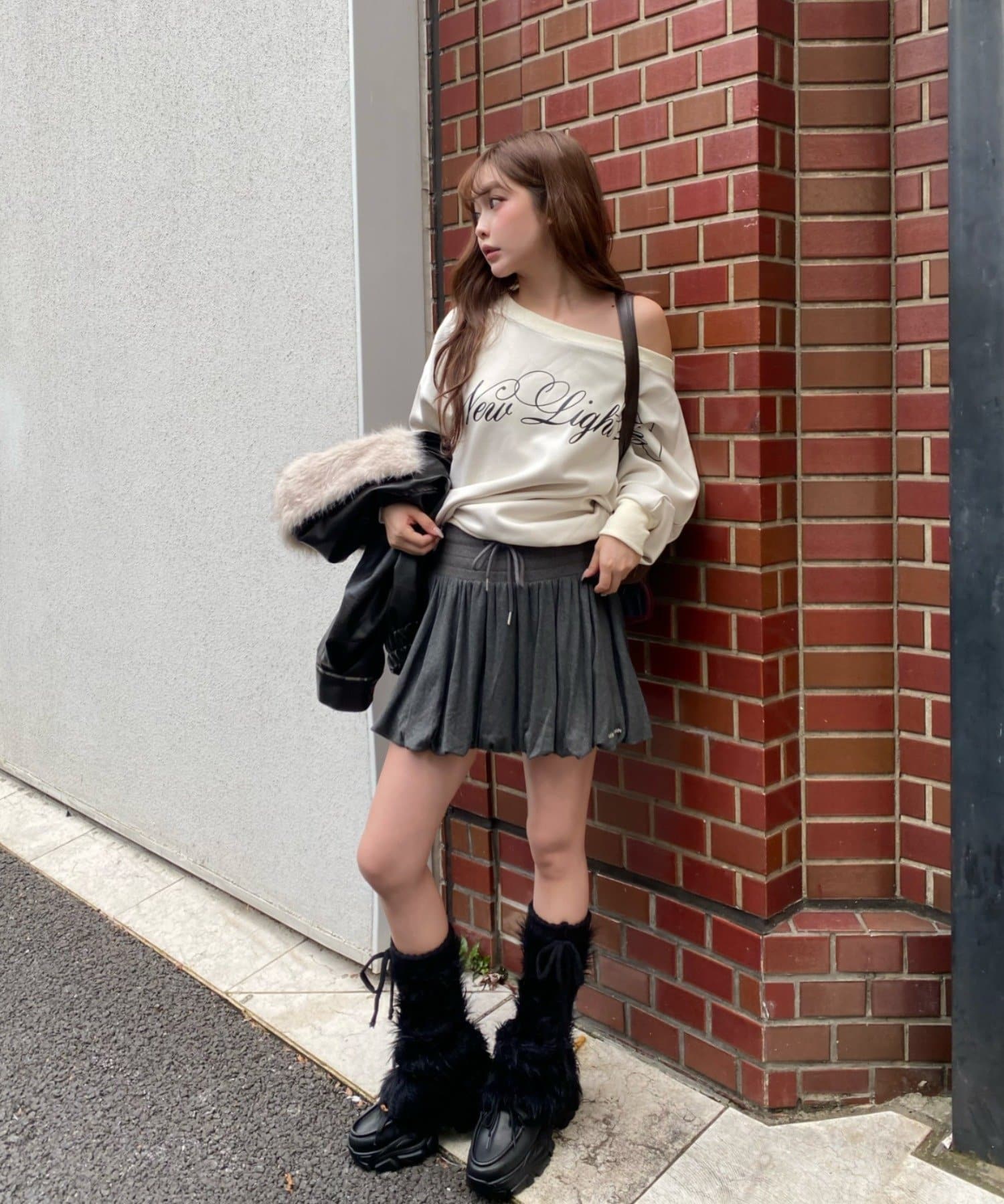 ・プリーツスカート合わせがトレンドな着こなしに。