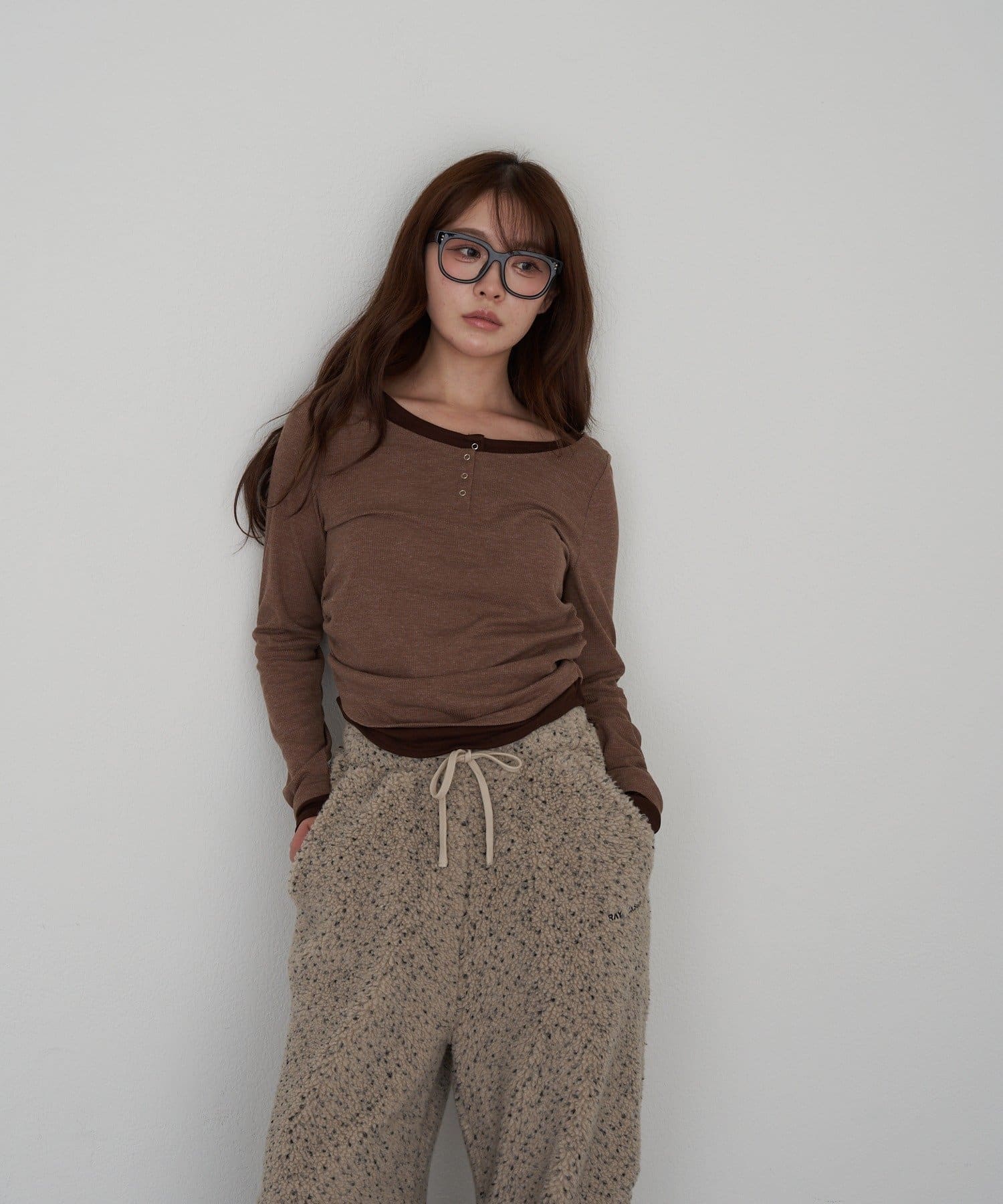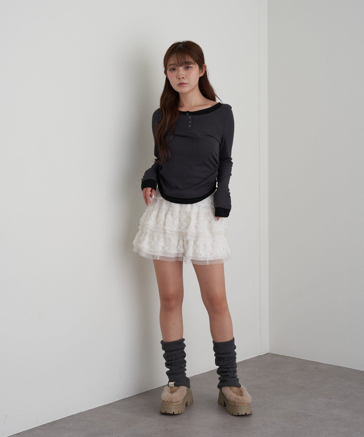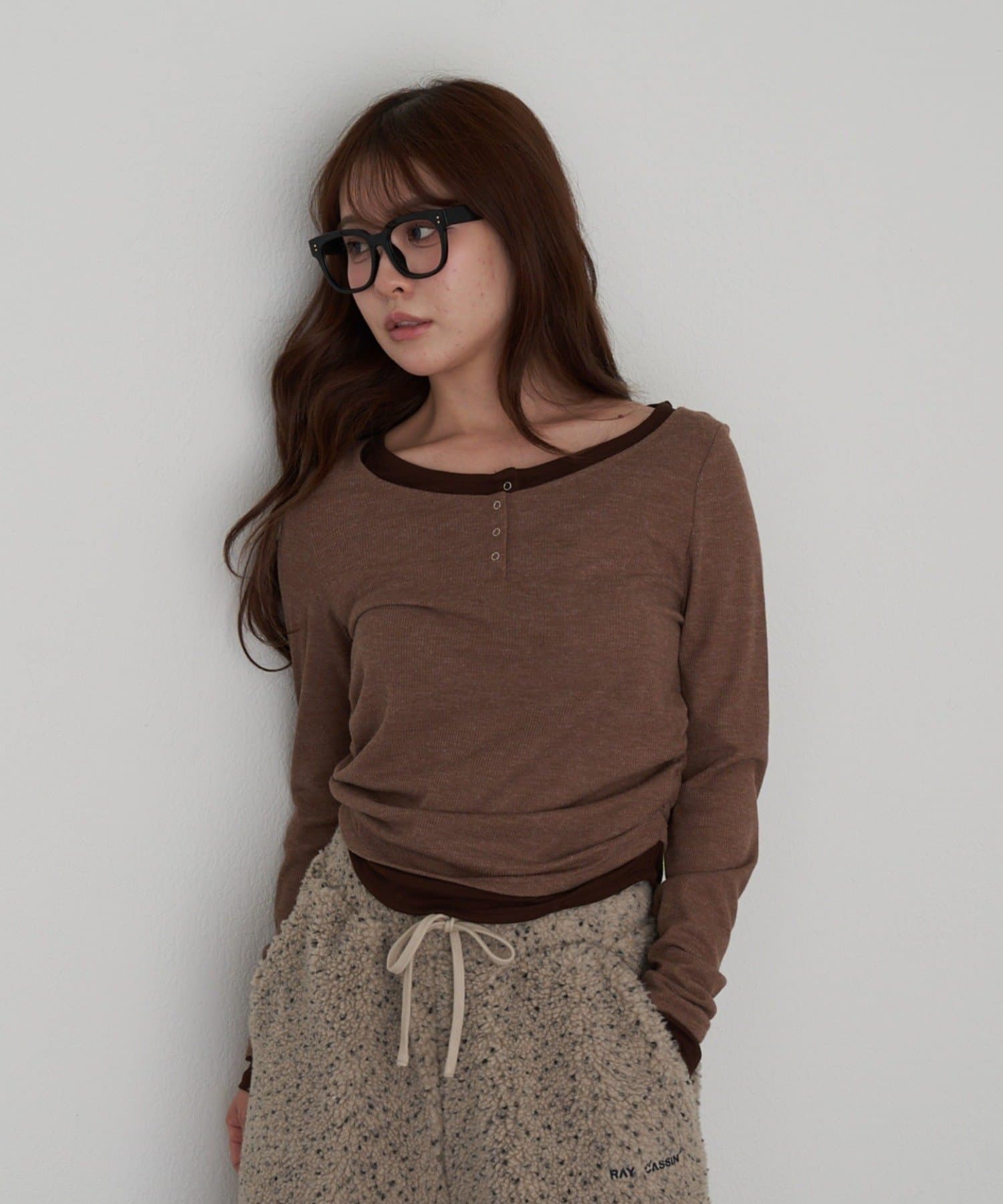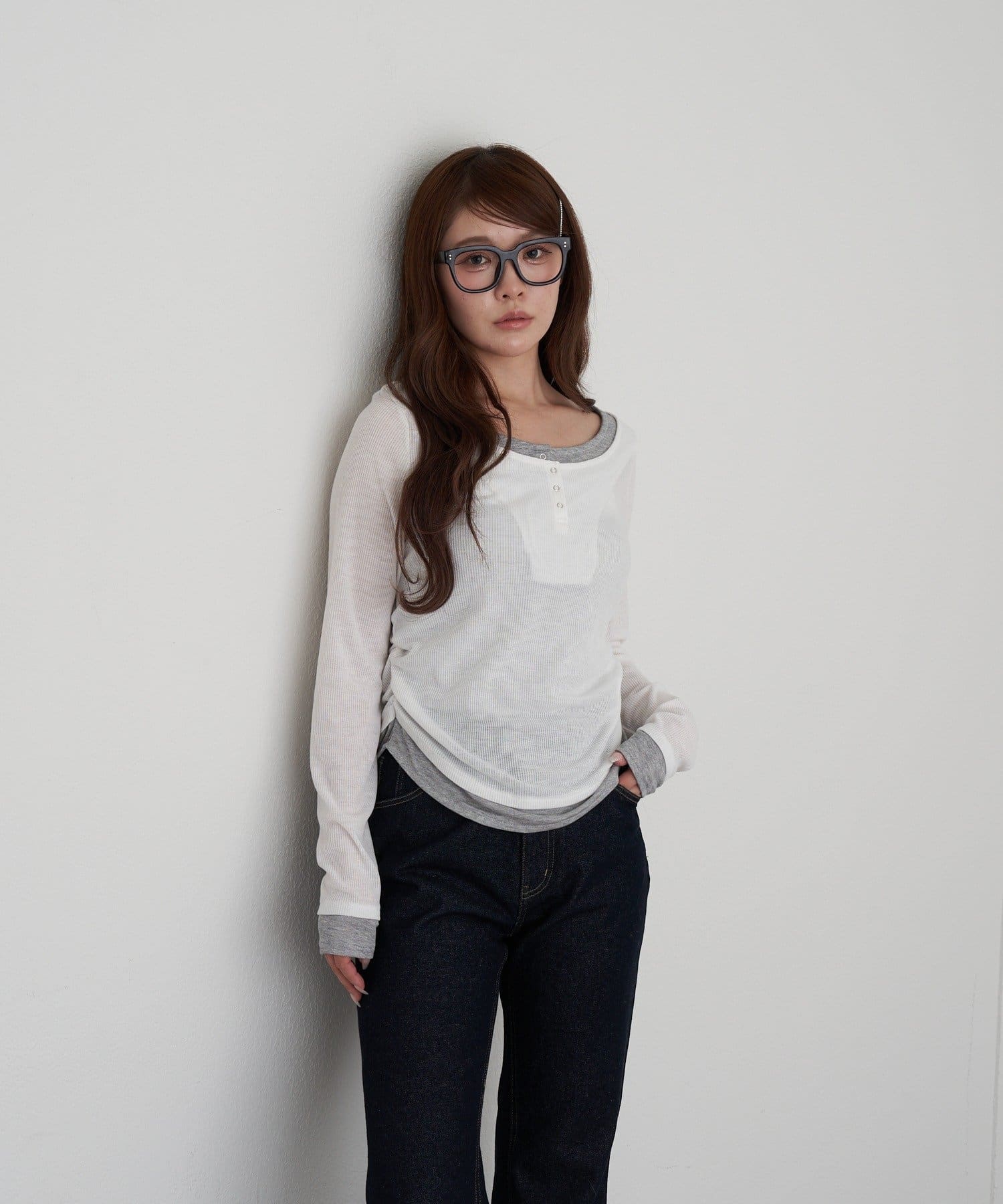UネックレイヤードヘンリーロンT