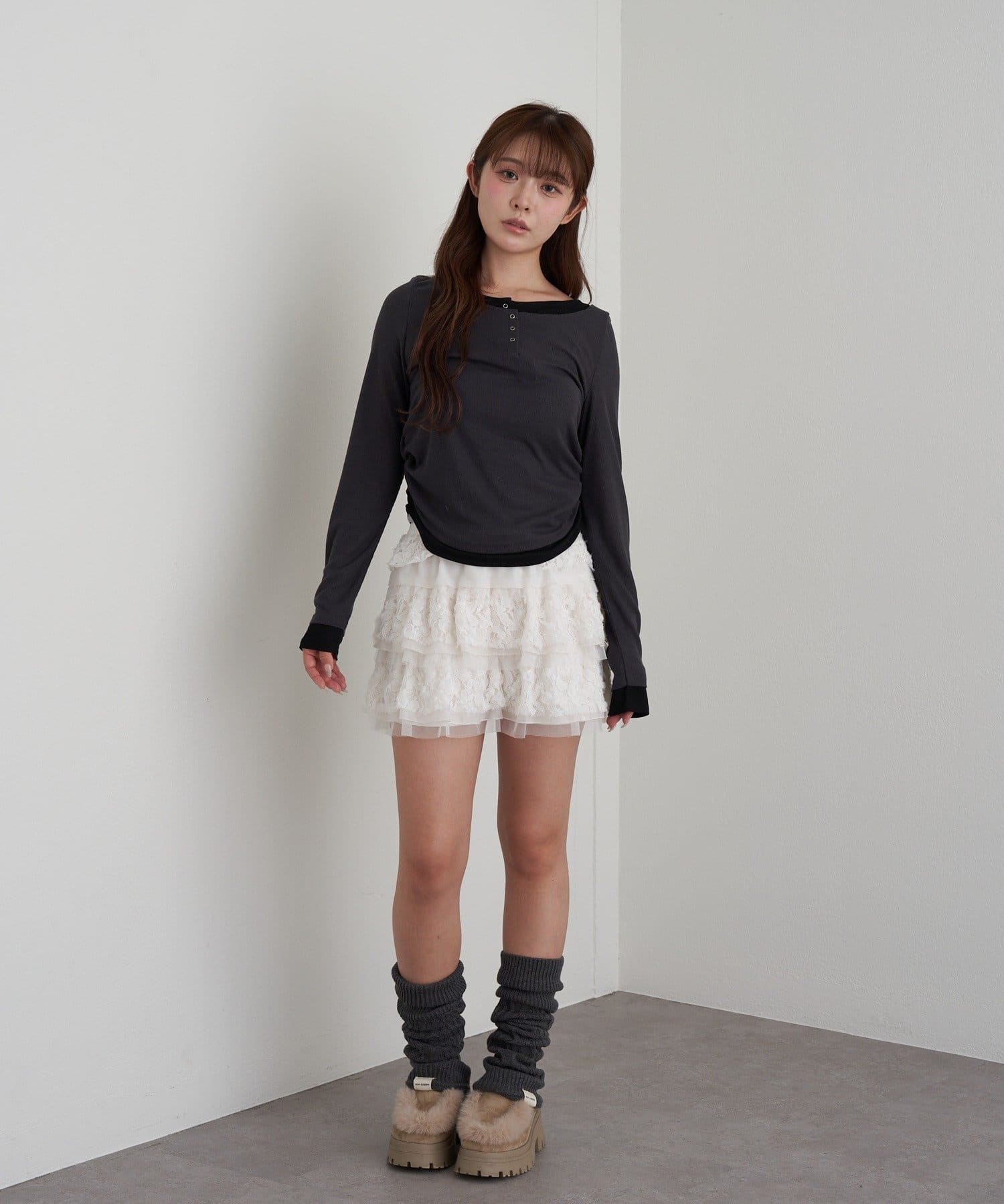 ・柔らかい生地が身体に馴染むので、冬アウターに合わせるトップスとしてもオススメ◎