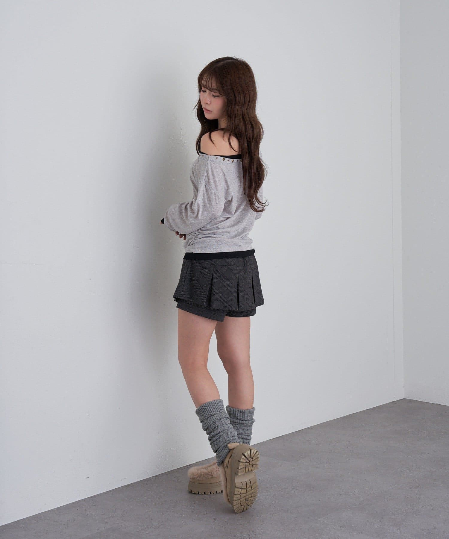 ・サイドのギャザーで細見えするため、ルーズなボトムスにも相性抜群〇