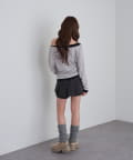 ・ショートパンツとブーツを合わせたスタイルがトレンドな着こなしに。