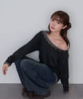 ・サイドのギャザーで細見えするため、ルーズなボトムスにも相性抜群〇