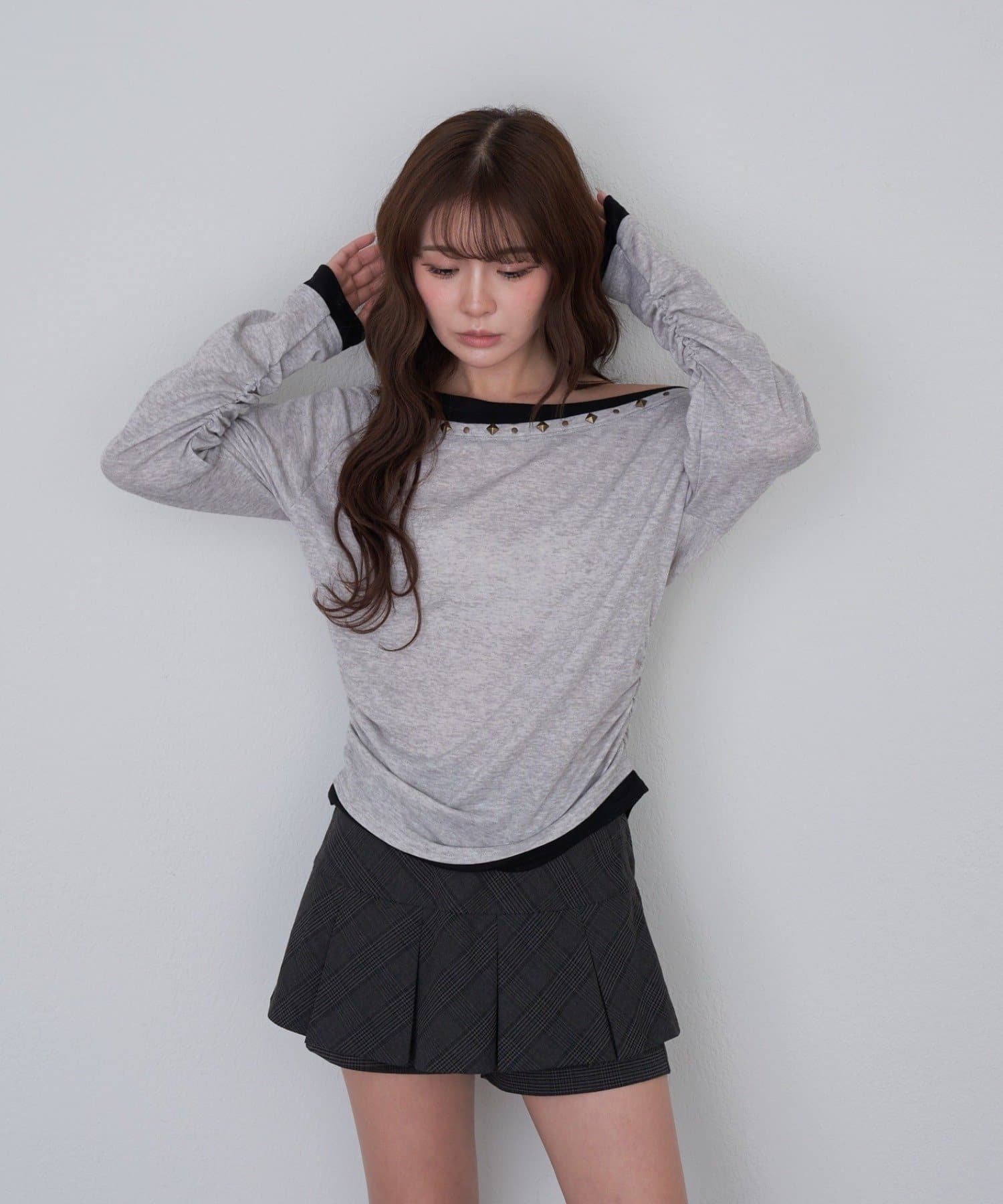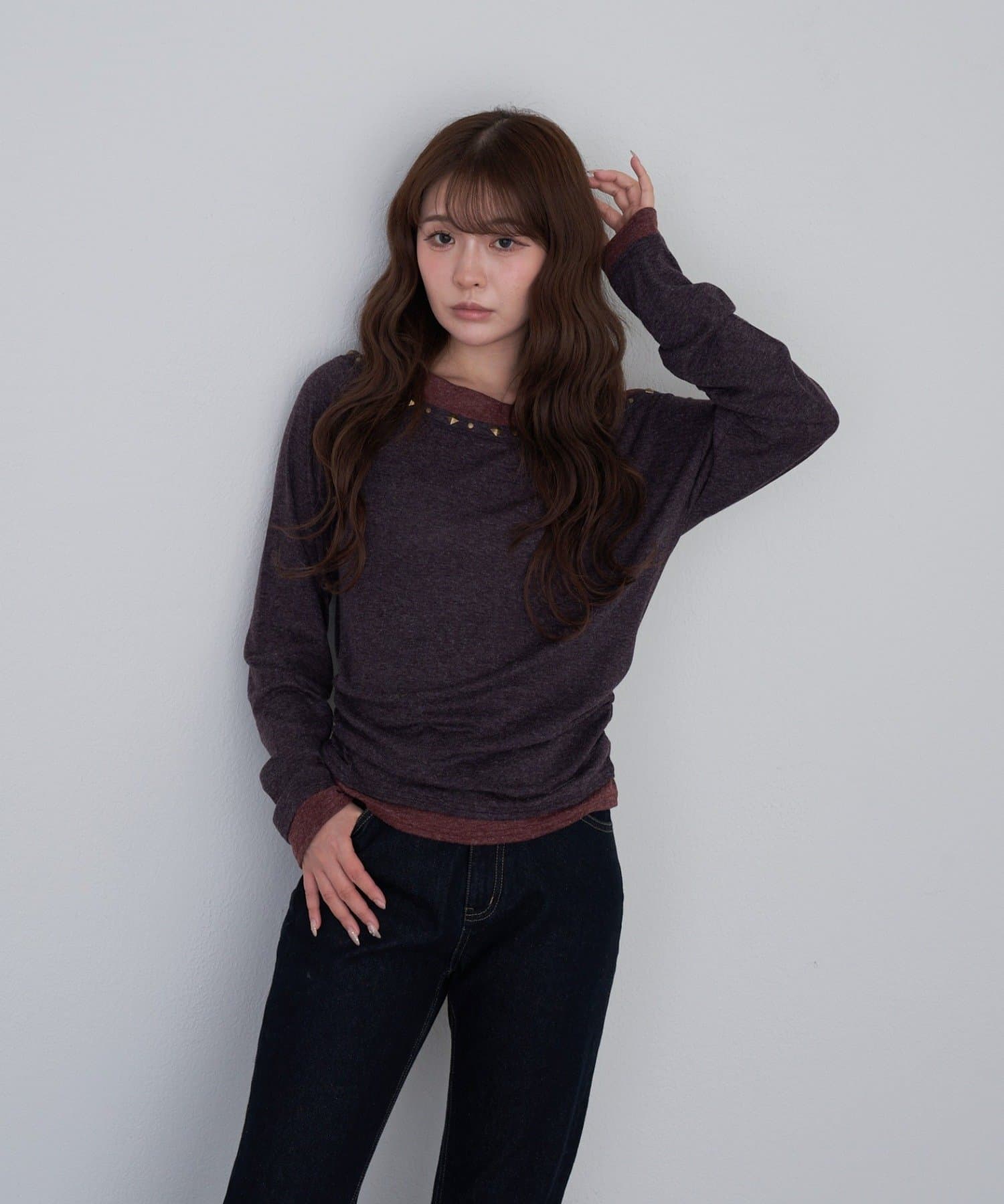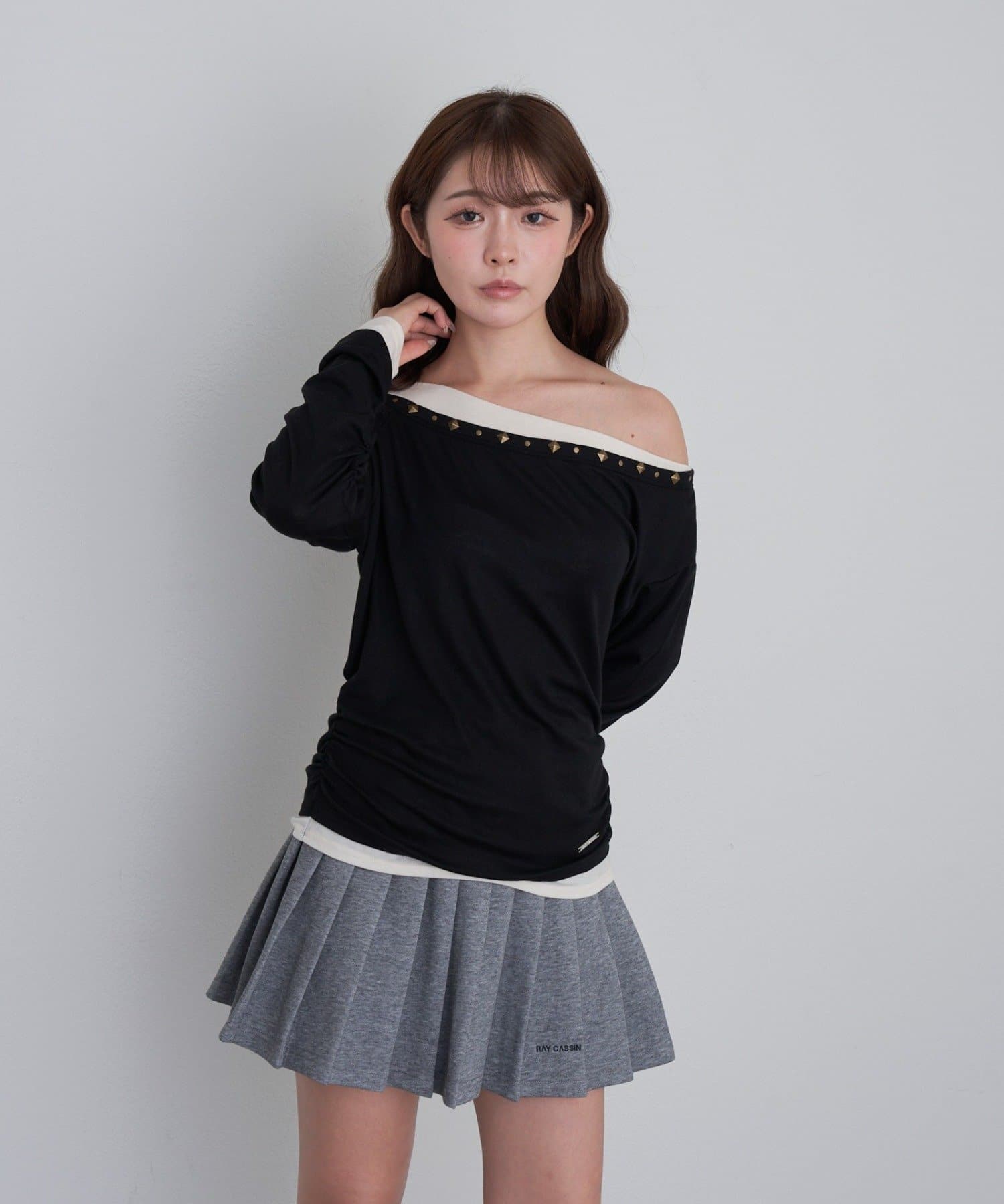 【RAY CASSIN】スタッズ付レイヤードロングTシャツ