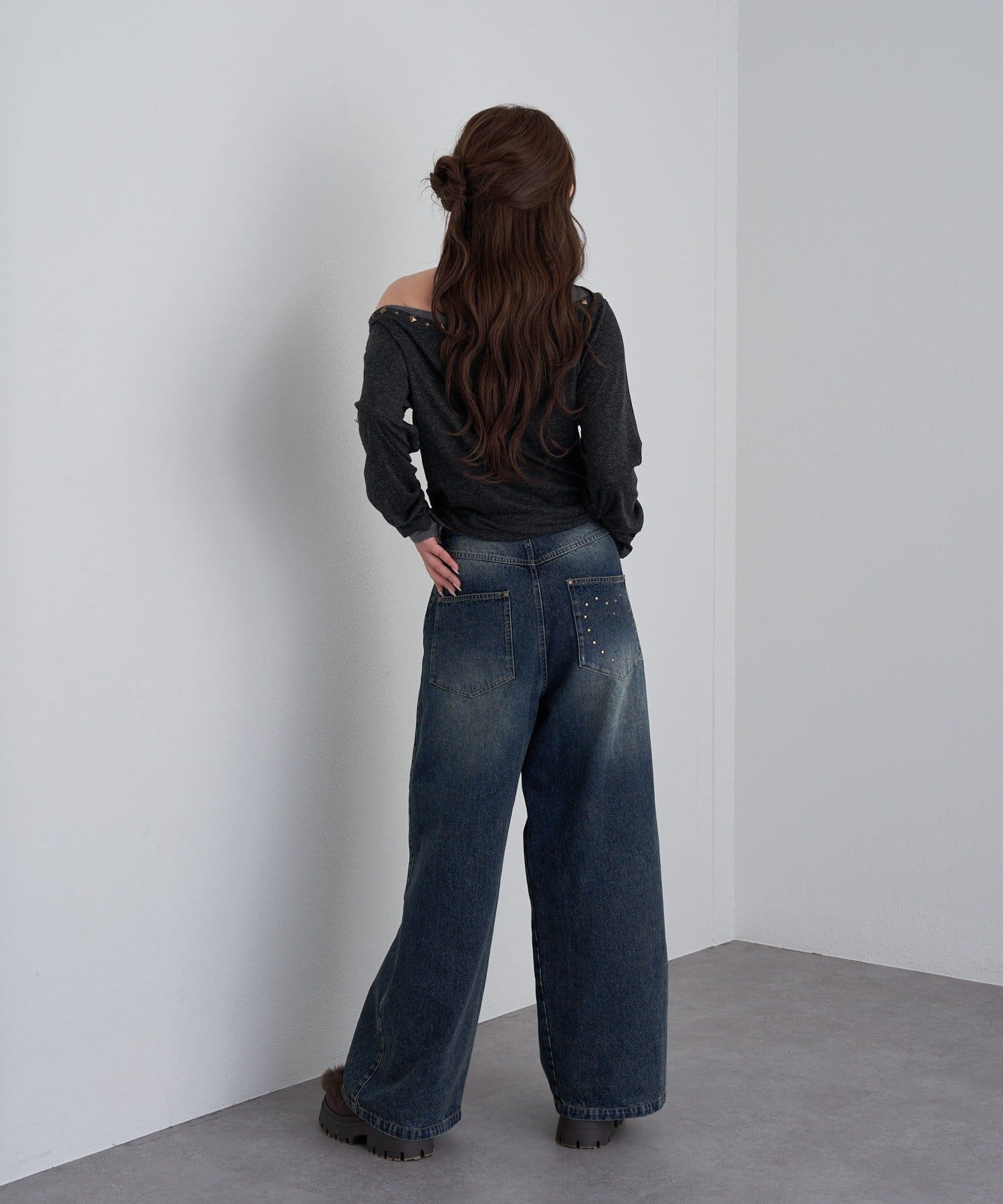 ・スタッズは、着用時の摩擦や洗濯により、変色やはがれることがありますのでご注意ください。