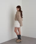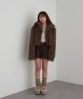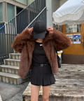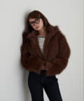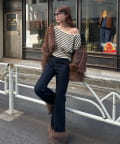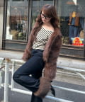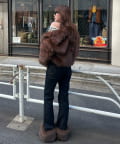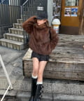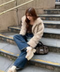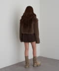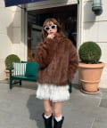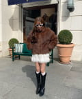 フェミニン派の方は、ミニ×ブーツの王道スタイルに、存在感のあるファーを合わせることでトレンドスタイルに。