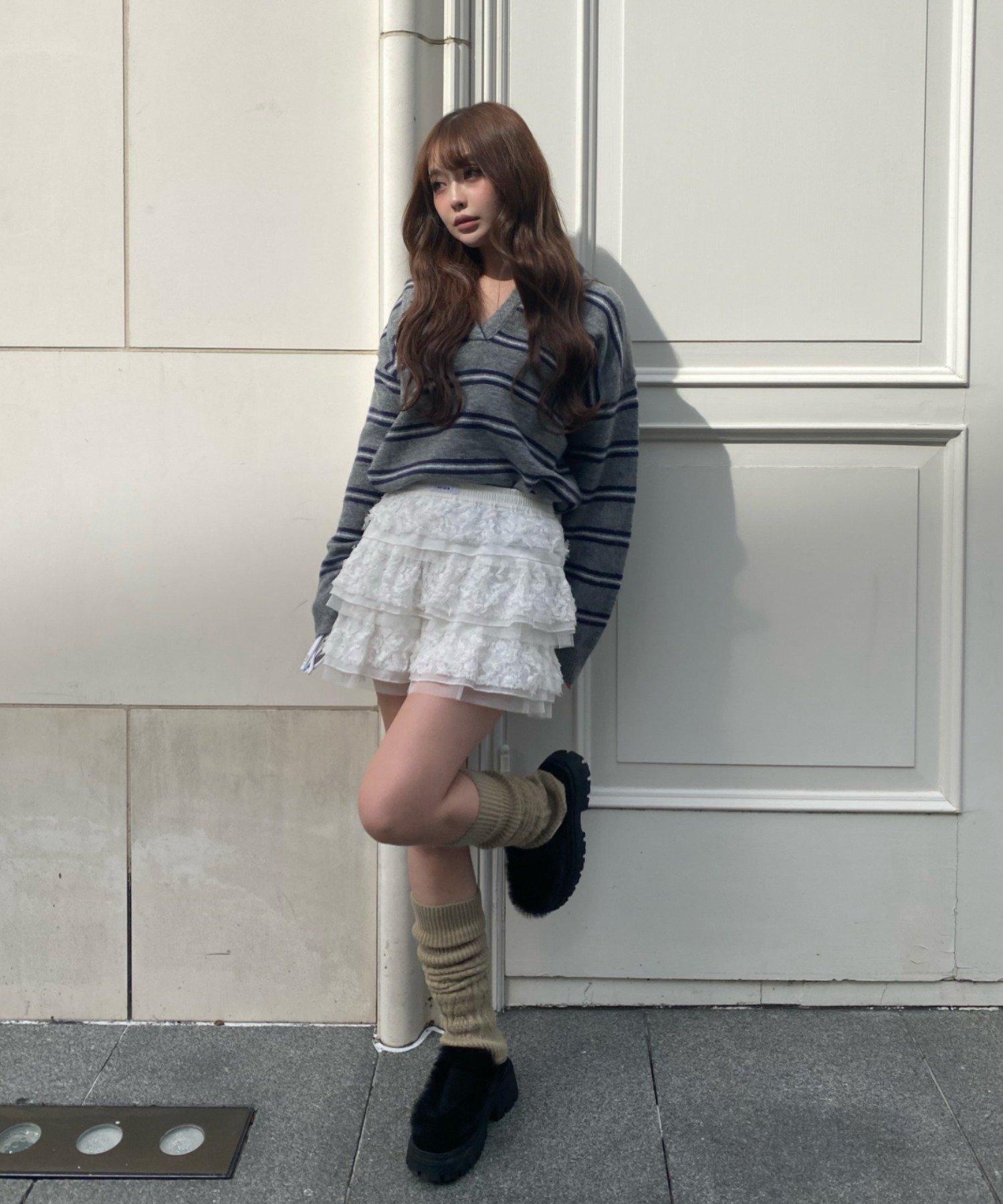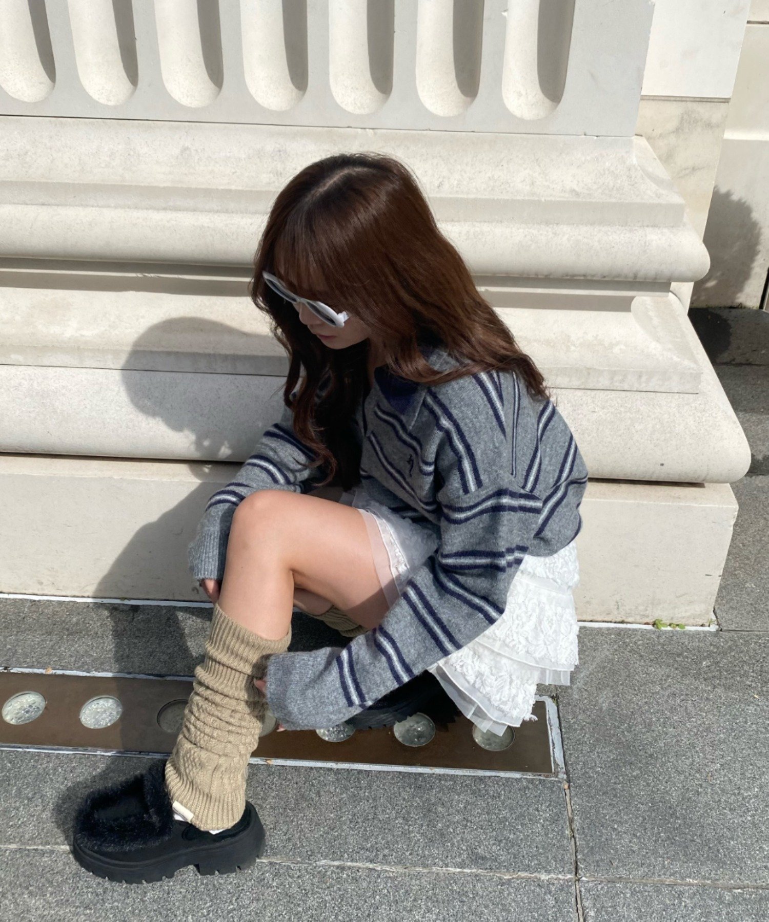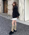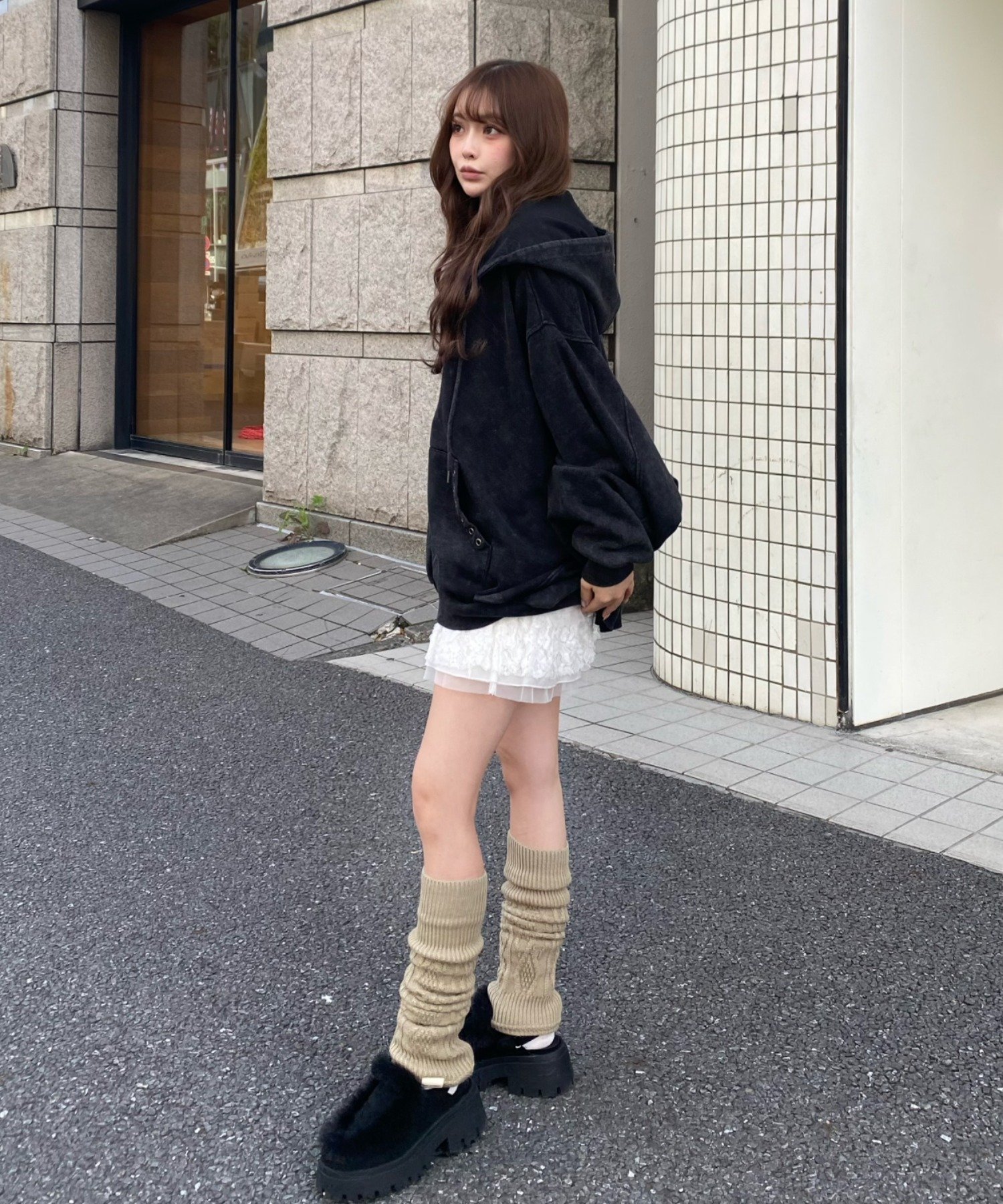 ・チクチクしにくい柔らかい素材のレッグウォーマーは、デイリーコーデに+1すると一気に秋冬モードに。