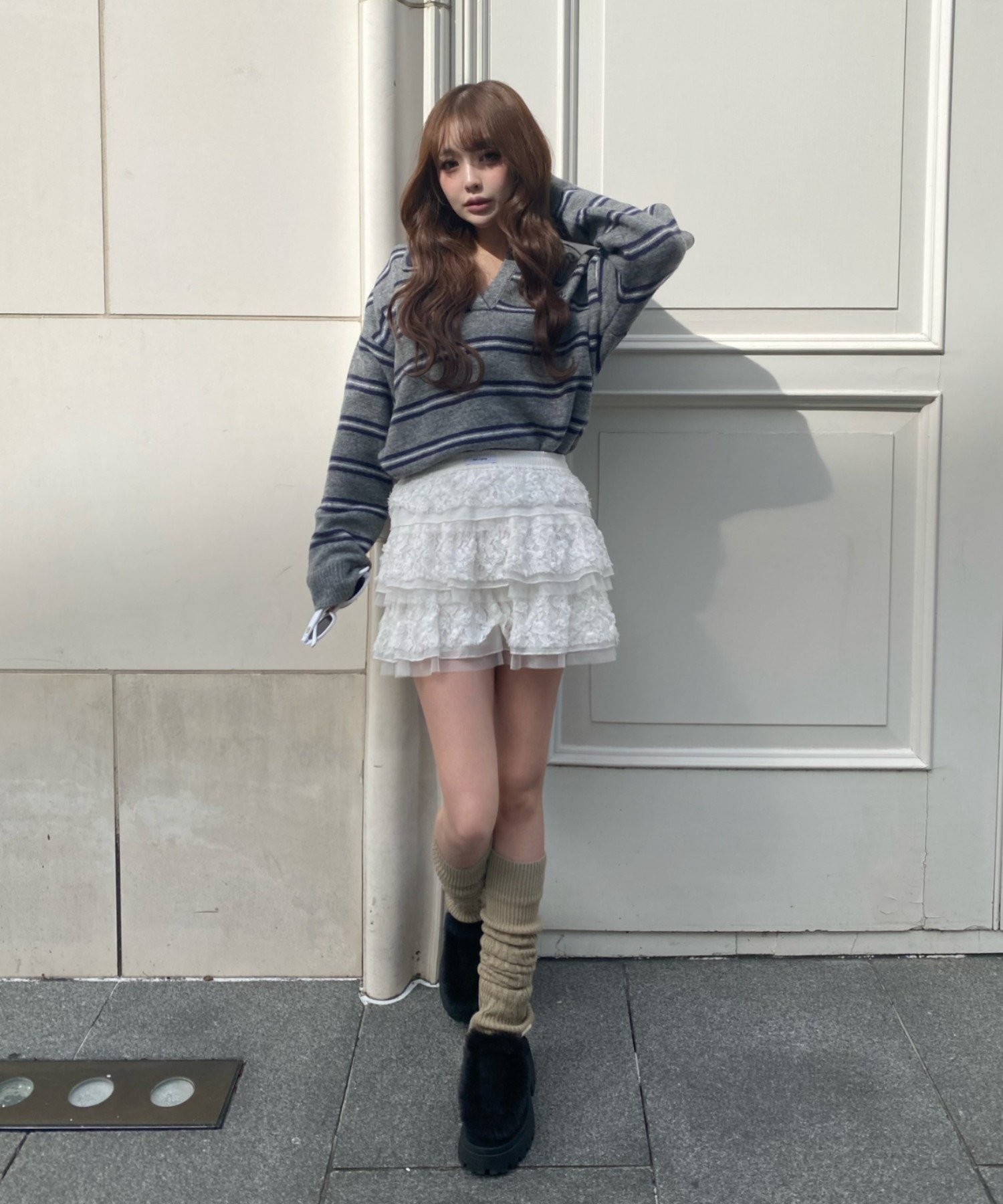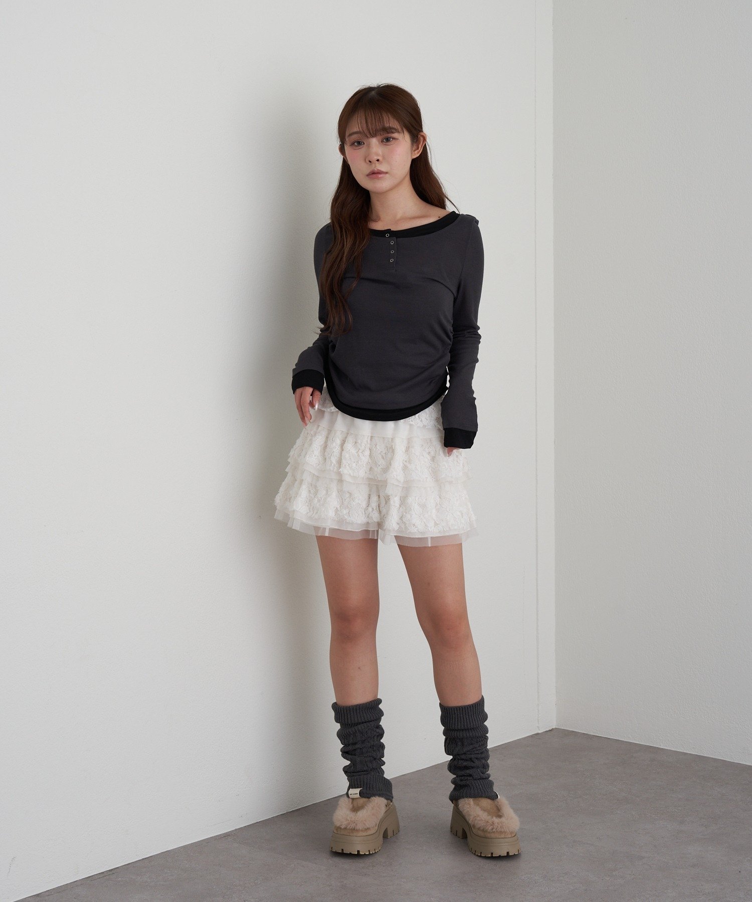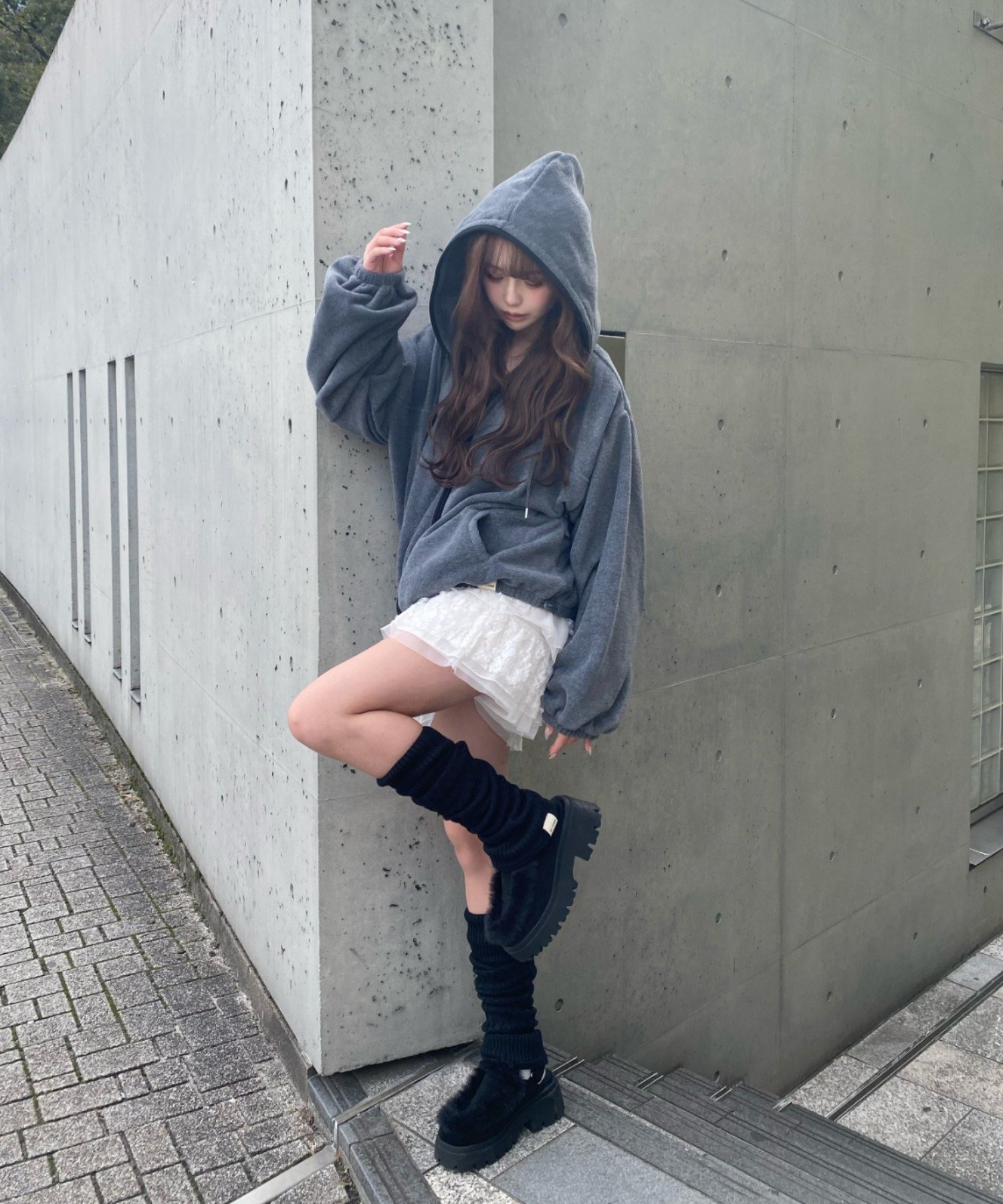 ・チクチクしにくい柔らかい素材のレッグウォーマーは、デイリーコーデに+1すると一気に秋冬モードに。