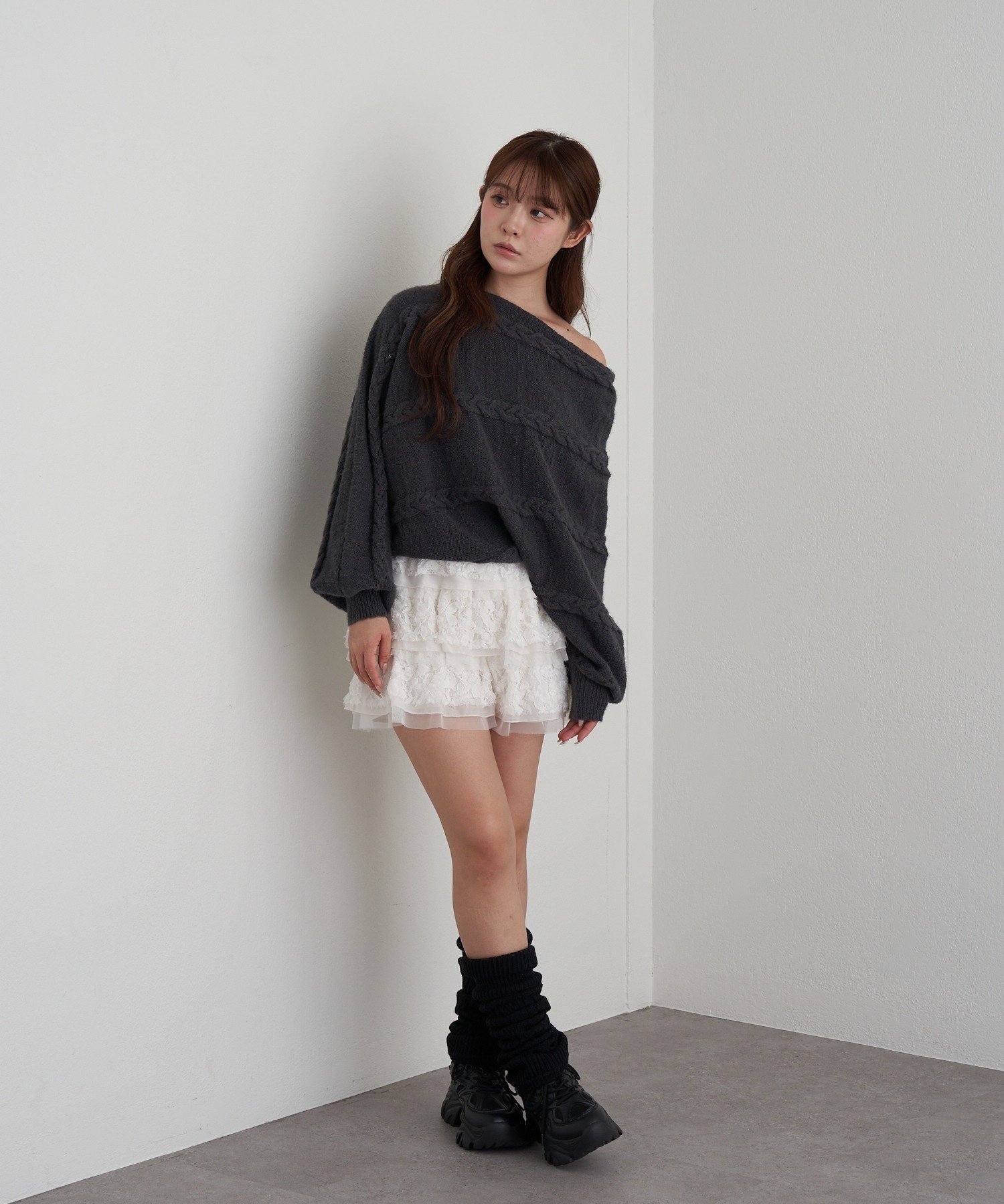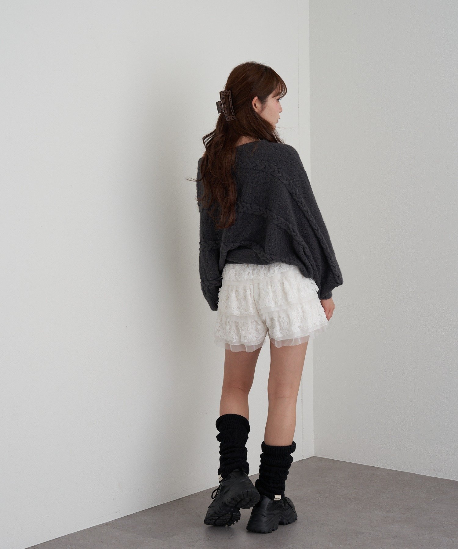 ・細かいケーブル編みが脚のラインをキレイに見せてくれます。