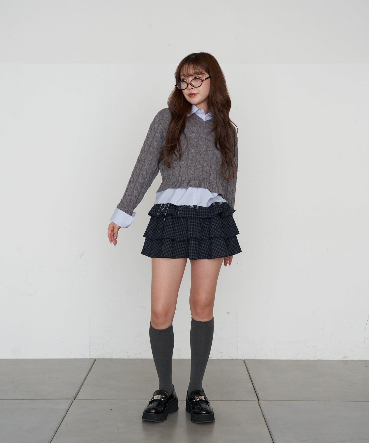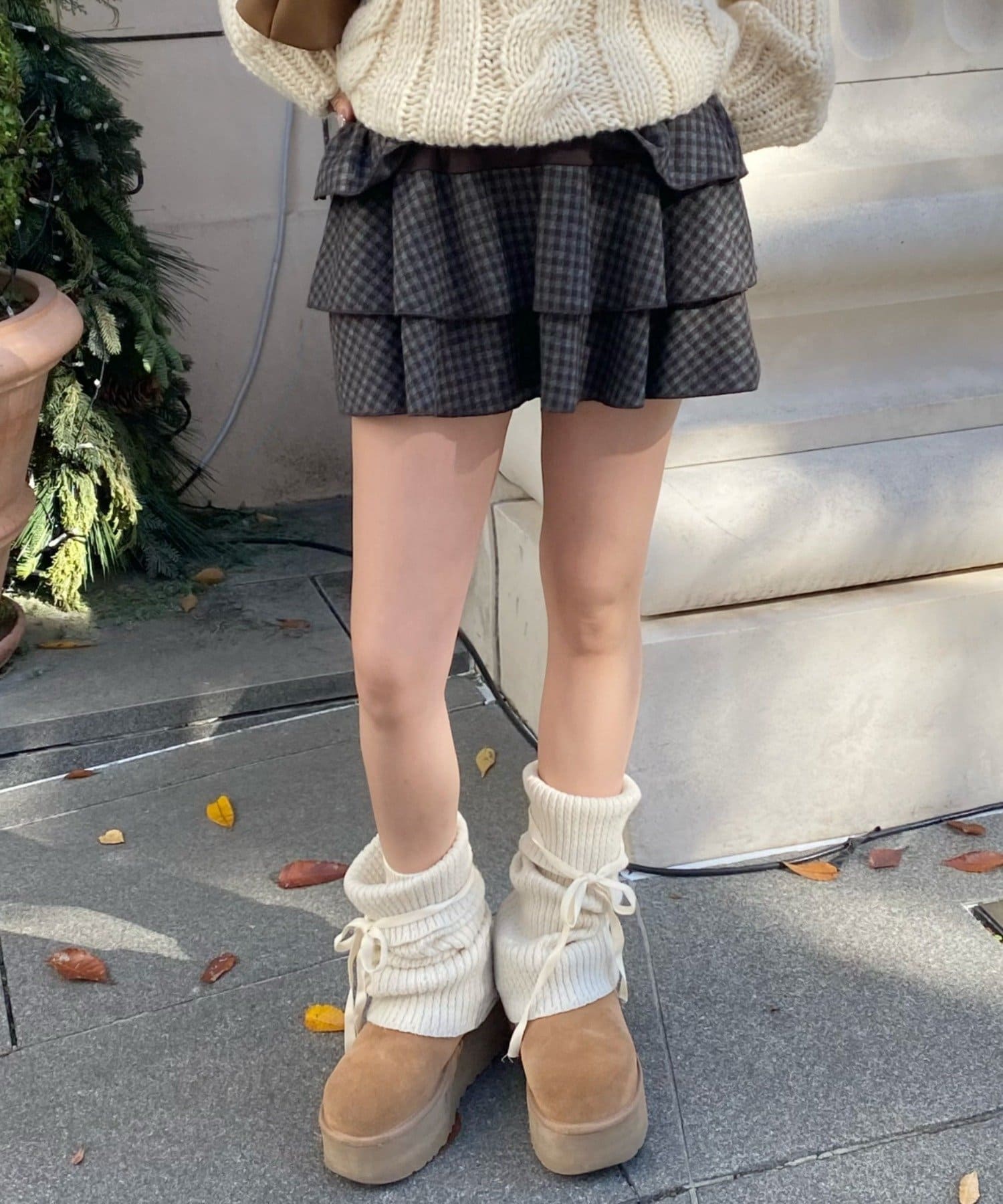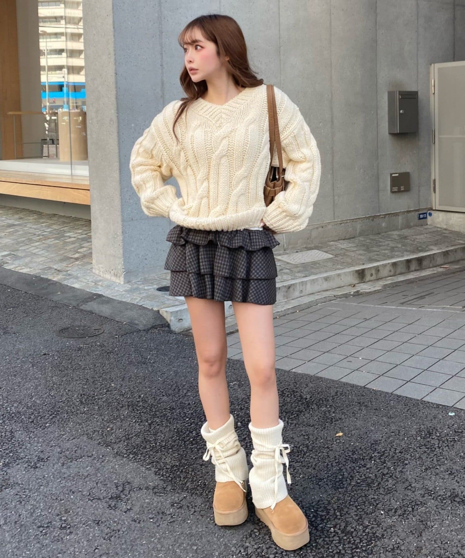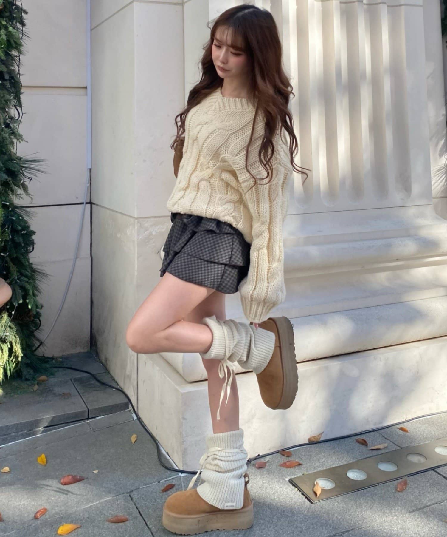 ・ざっくりニットと合わせれば、冬の王道フェミニンコーデが完成◎