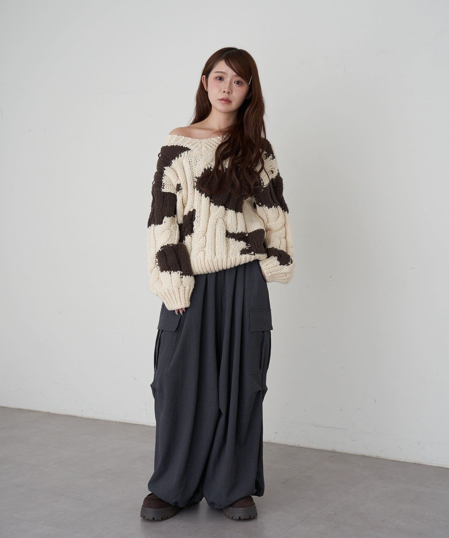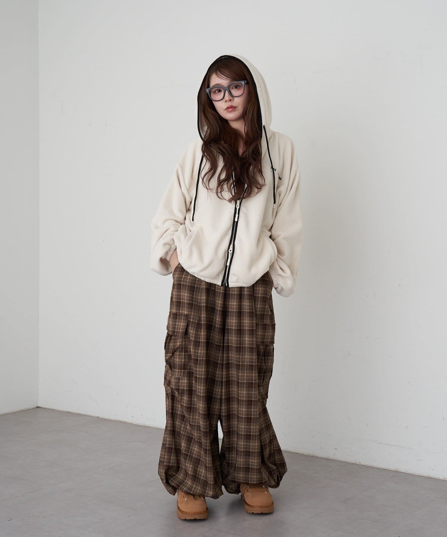 ・ウエストはゴム、裾は絞れるのでFサイズですが体型に合わせて調節が可能◎