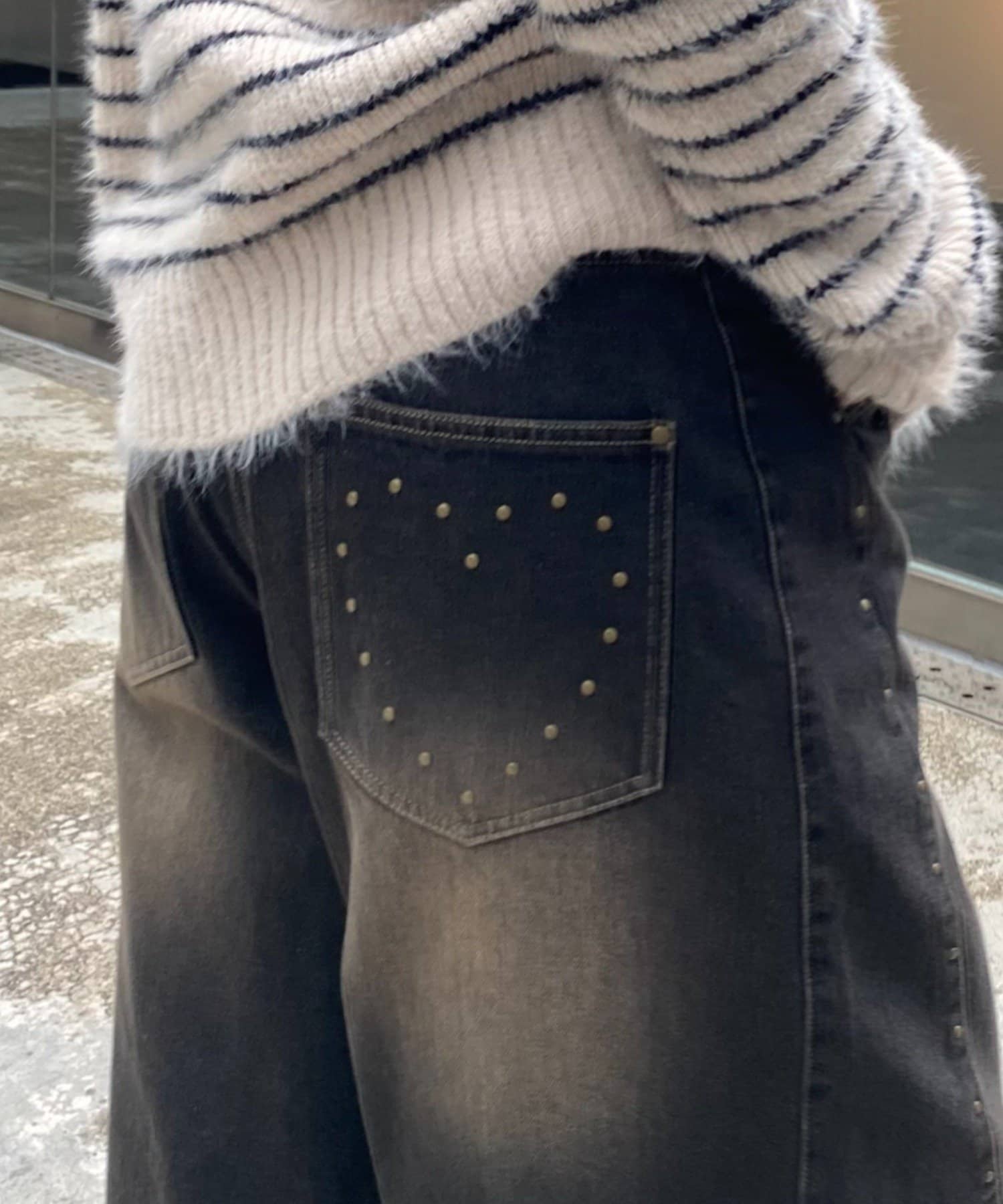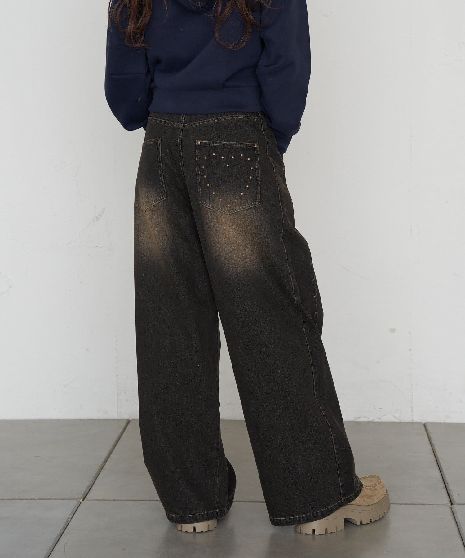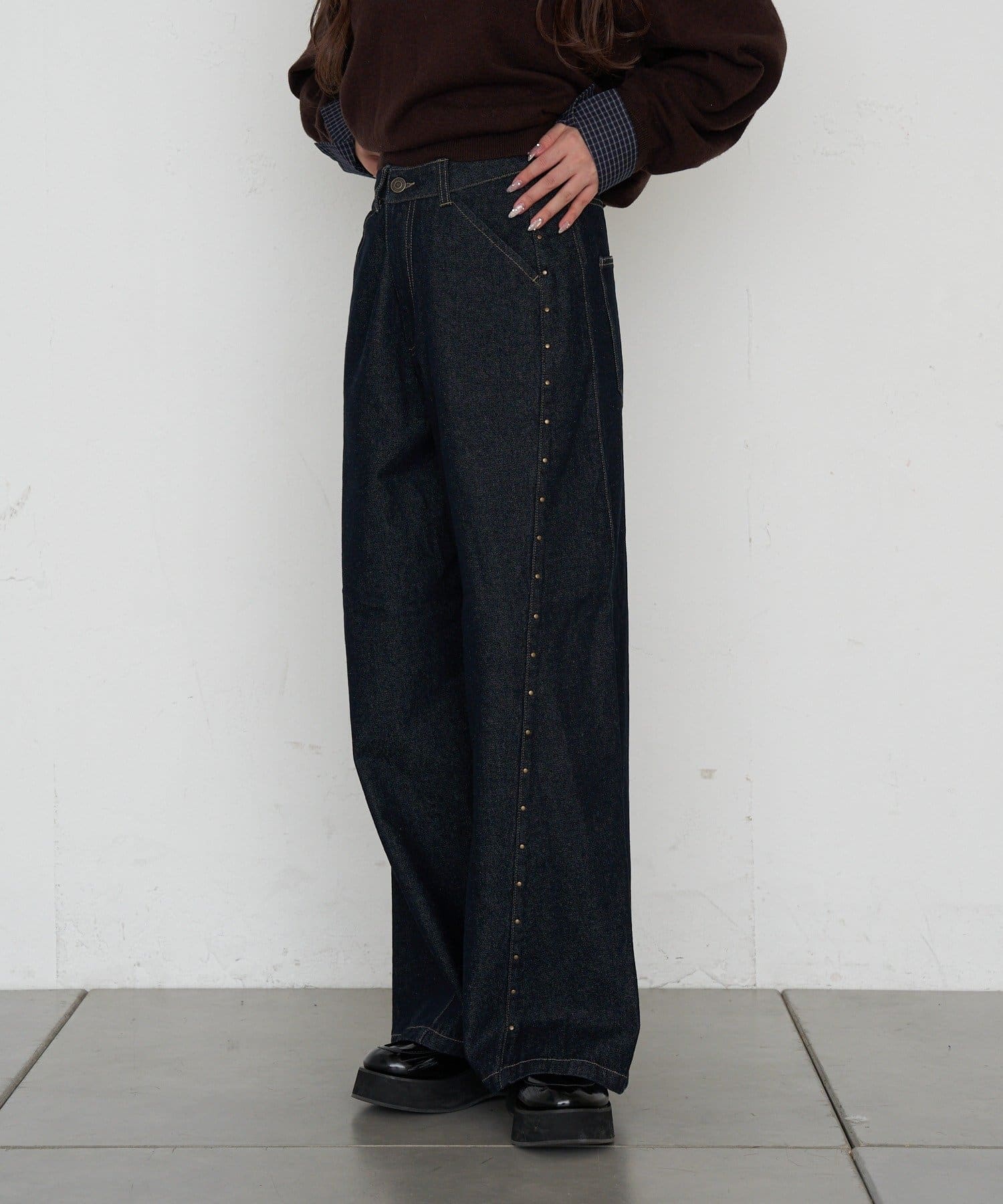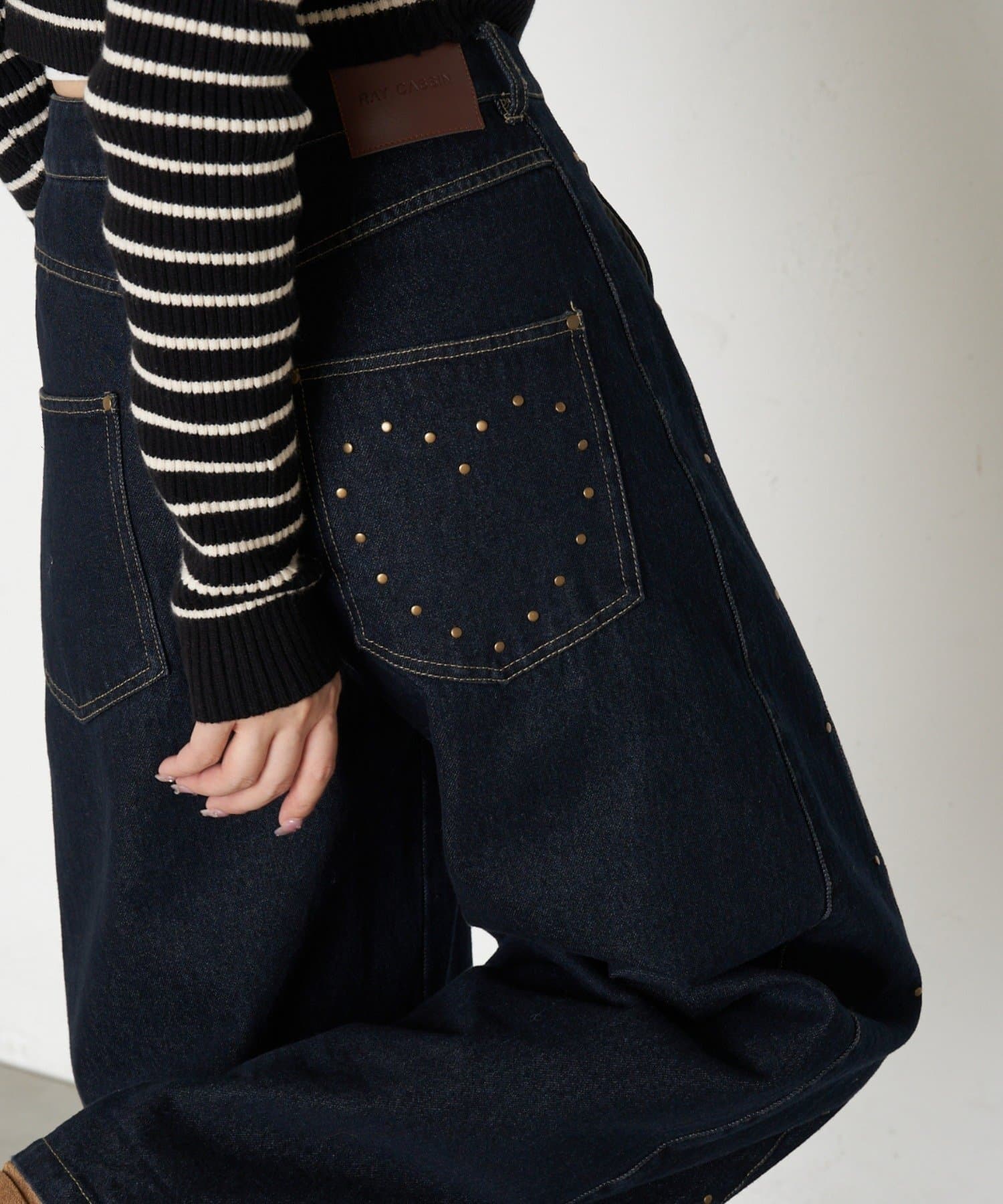 • RAY CASSIN(レイカズン) スタッズ付ワイドデニム