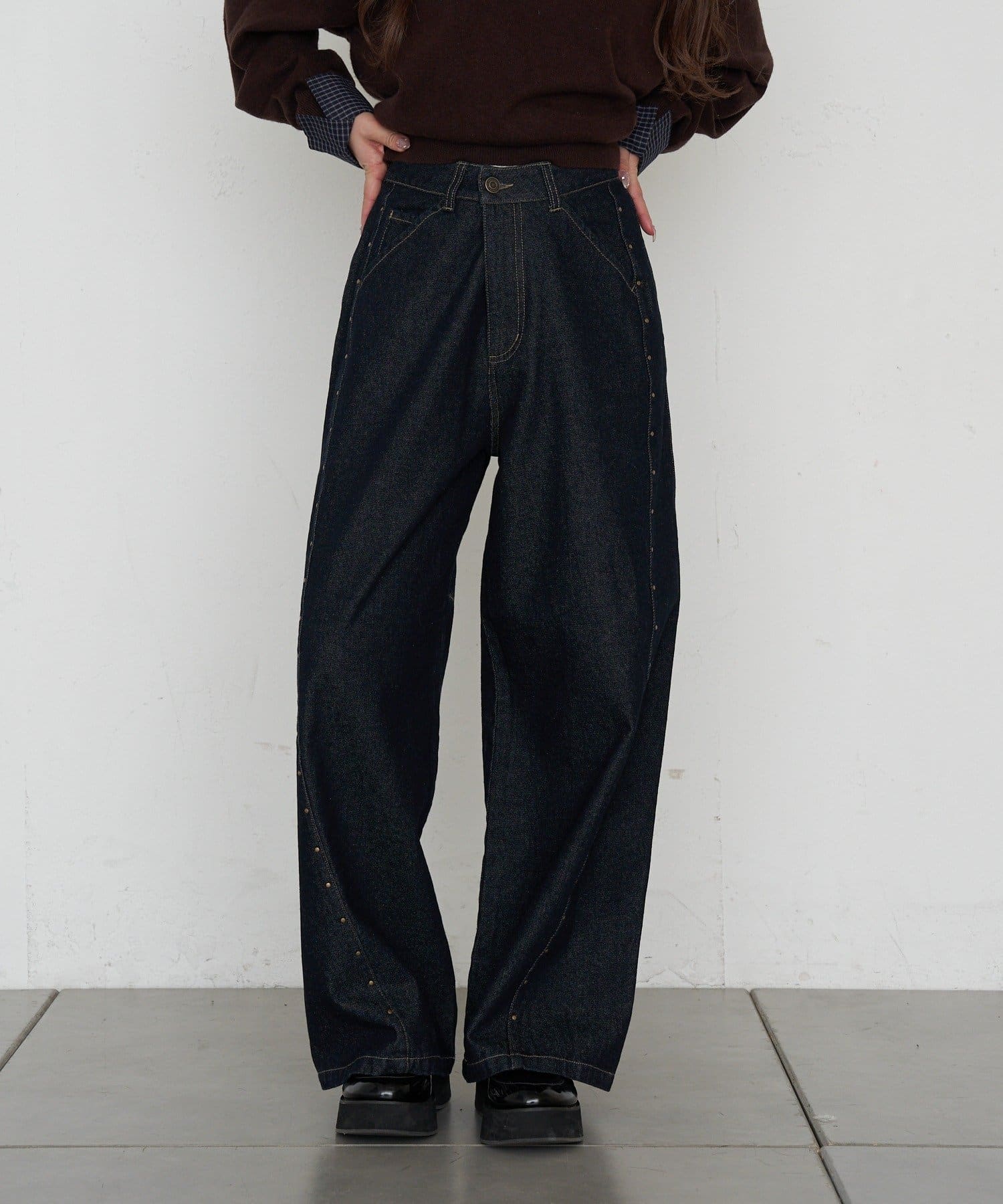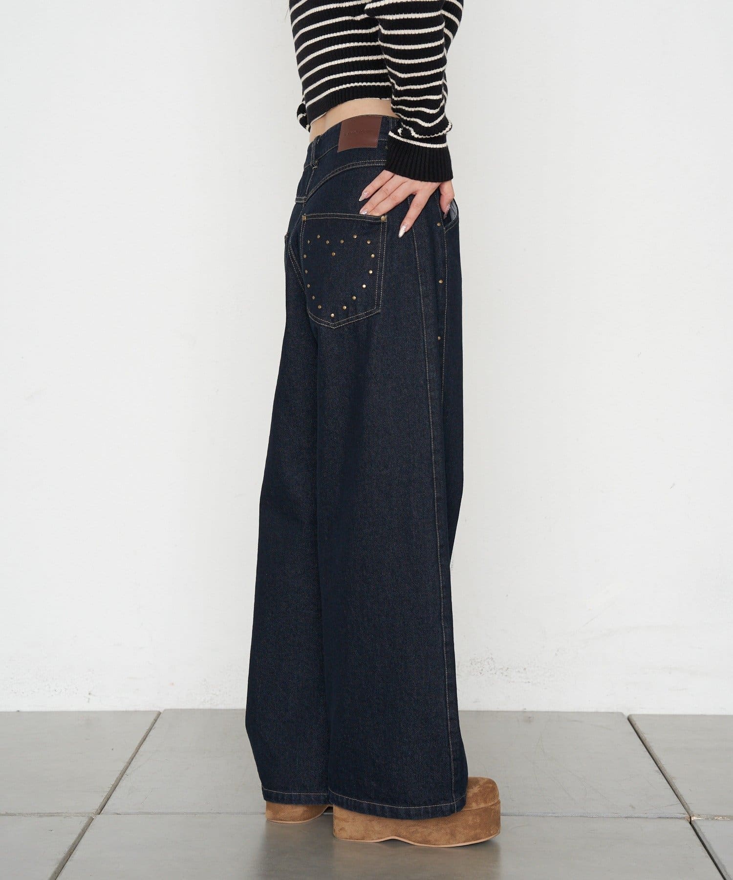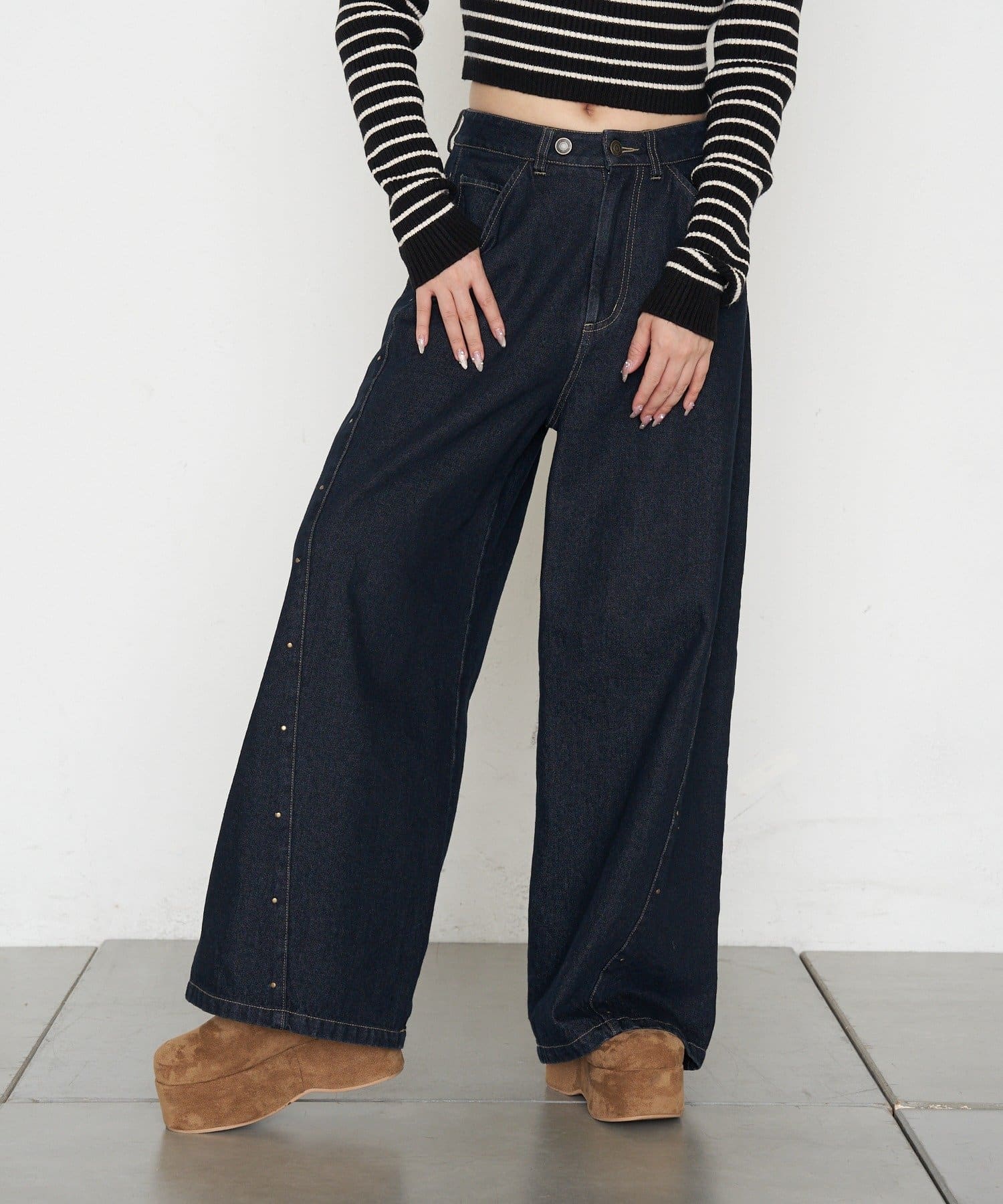TOP > RAY CASSIN > レディース > パンツ > デニムパンツ > スタッズ付ワイドデニム