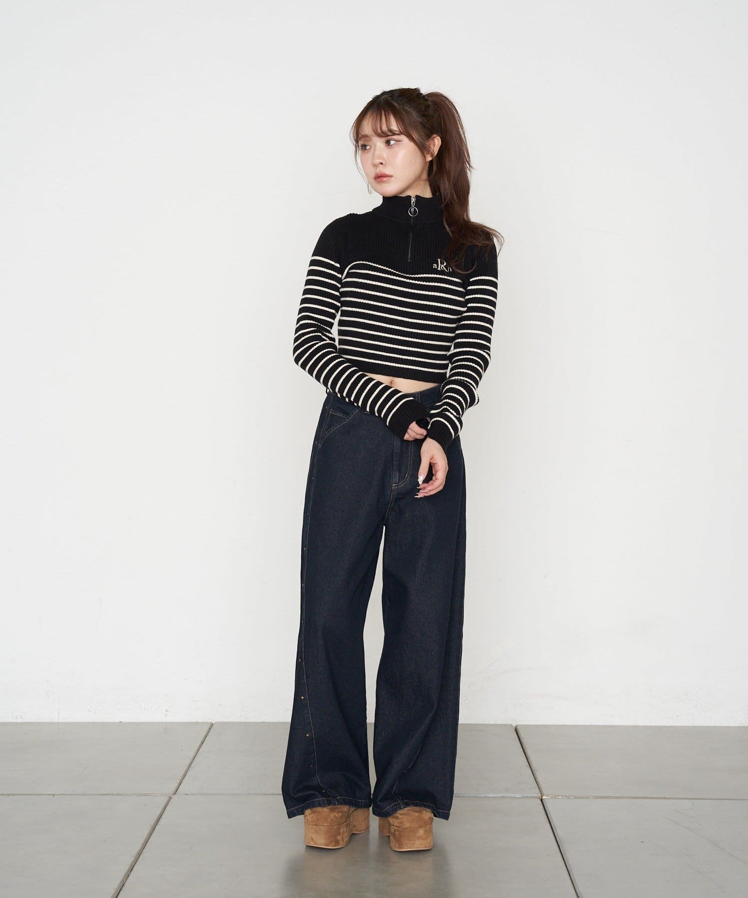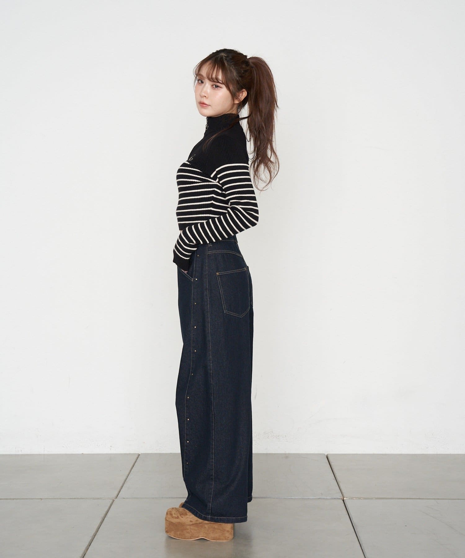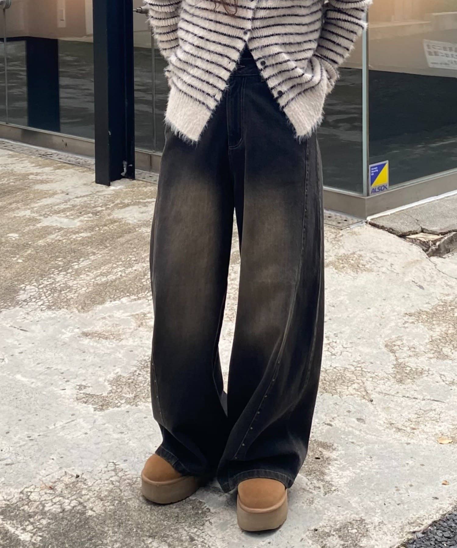TOP > RAY CASSIN > レディース > パンツ > デニムパンツ > スタッズ付ワイドデニム