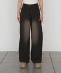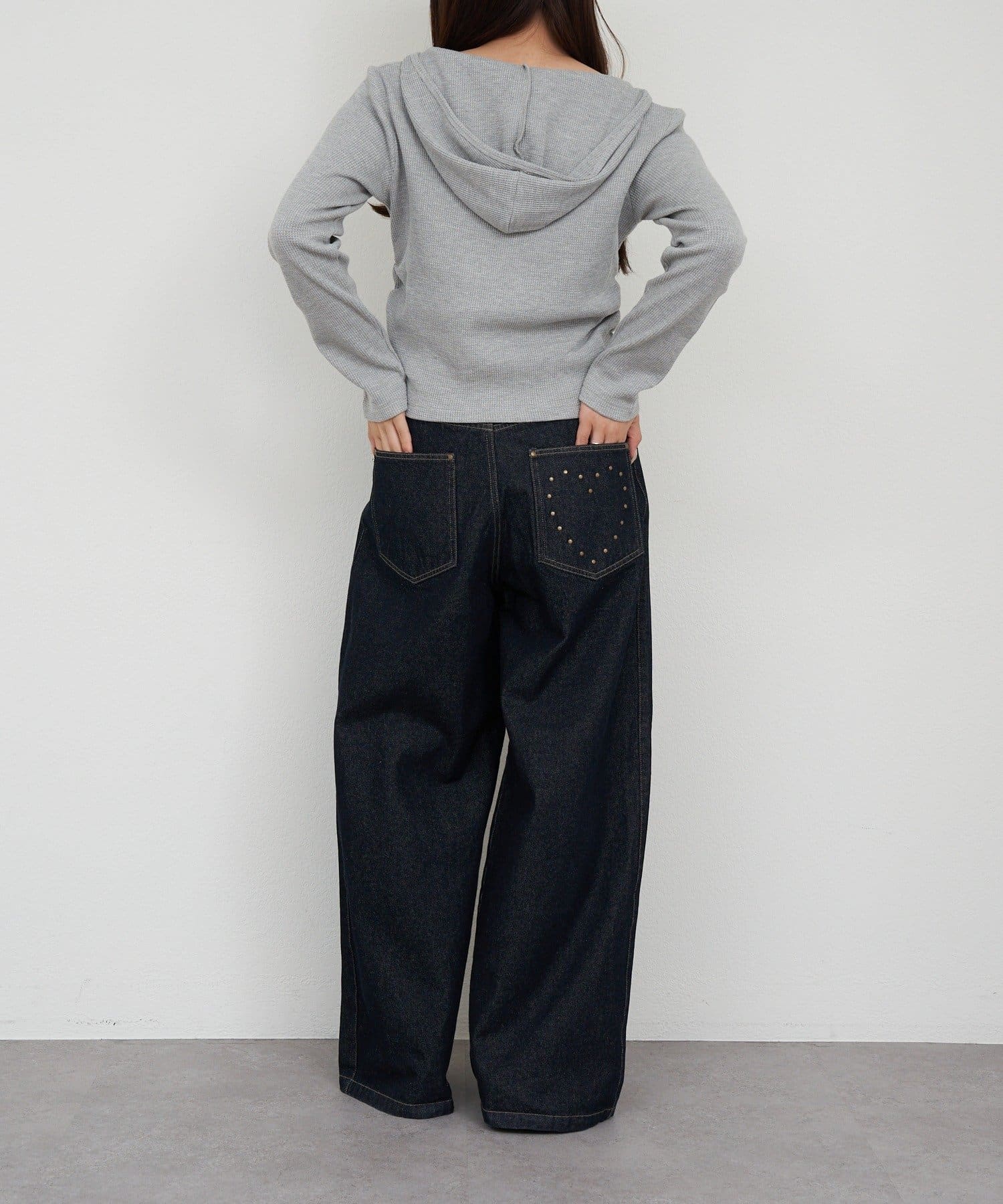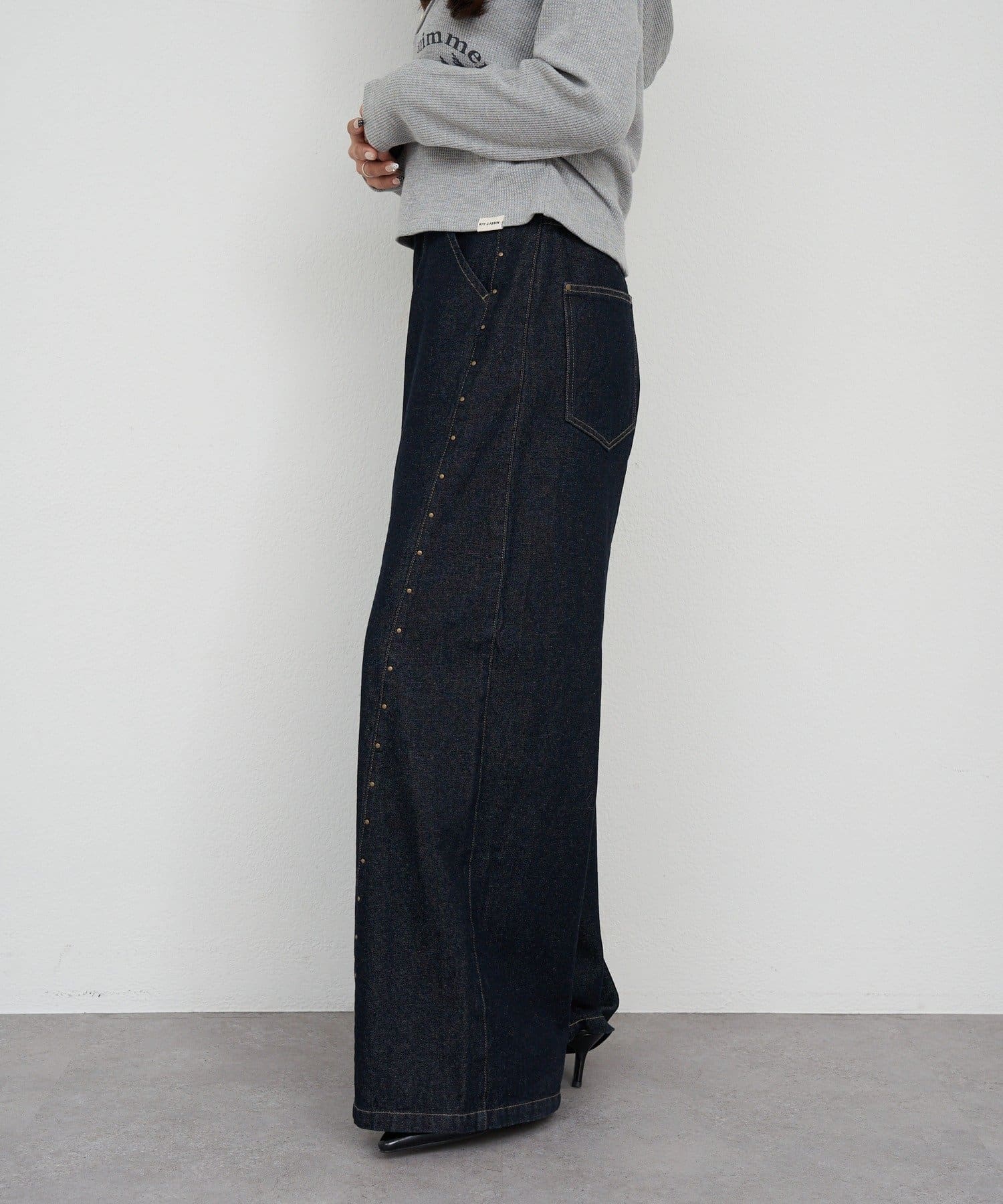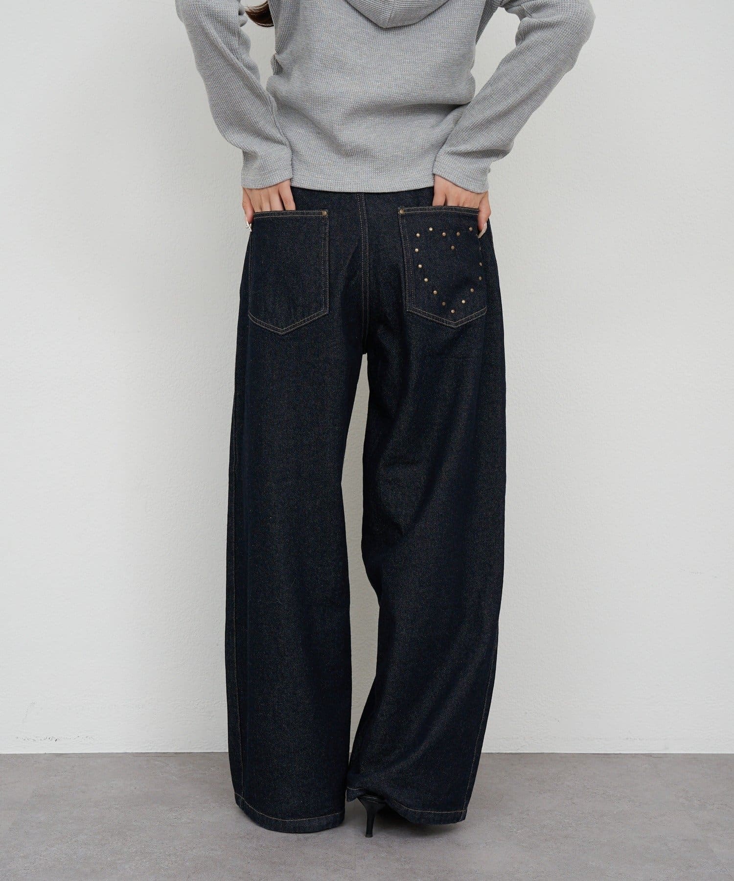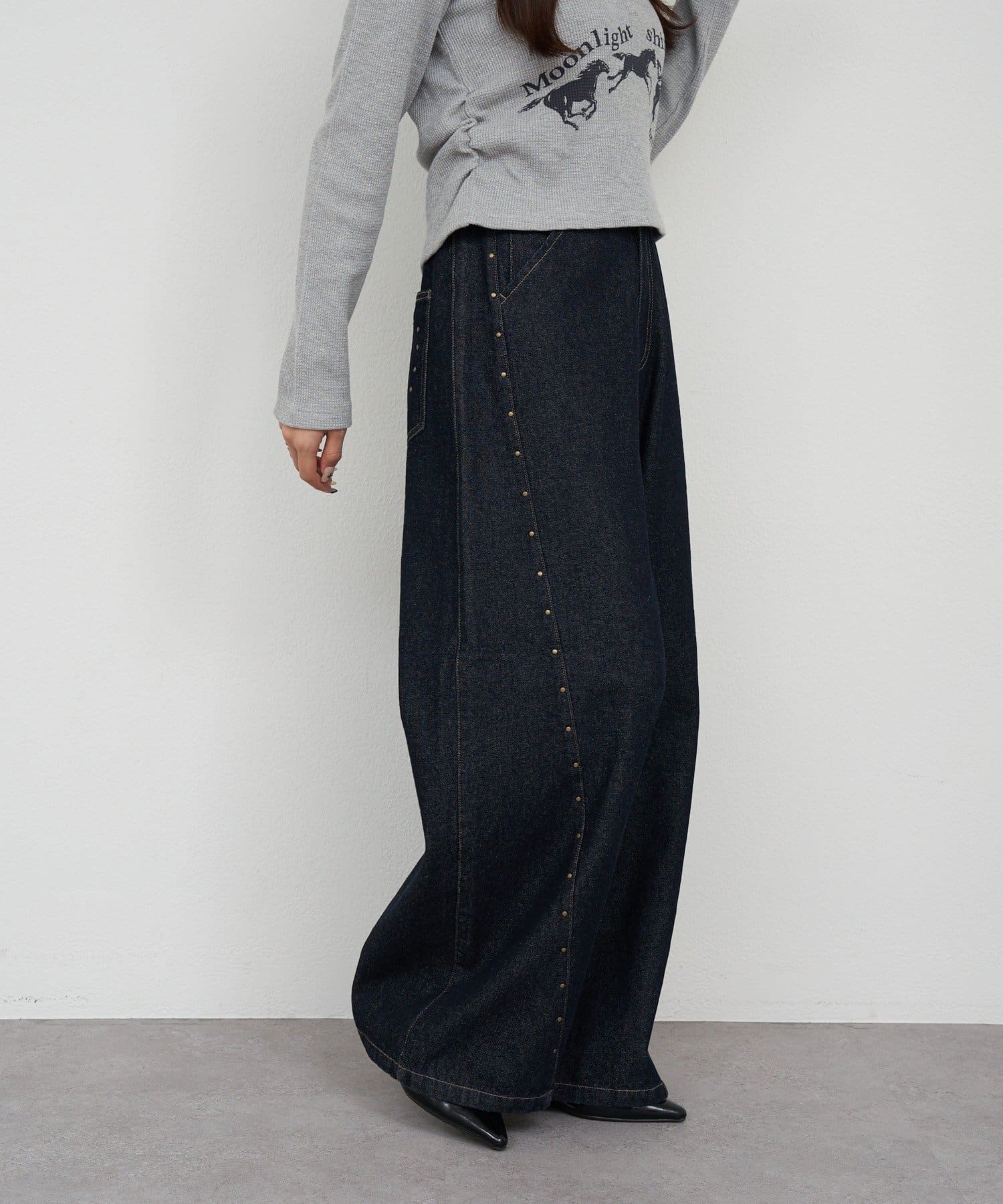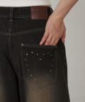 スタッズ付ワイドデニム