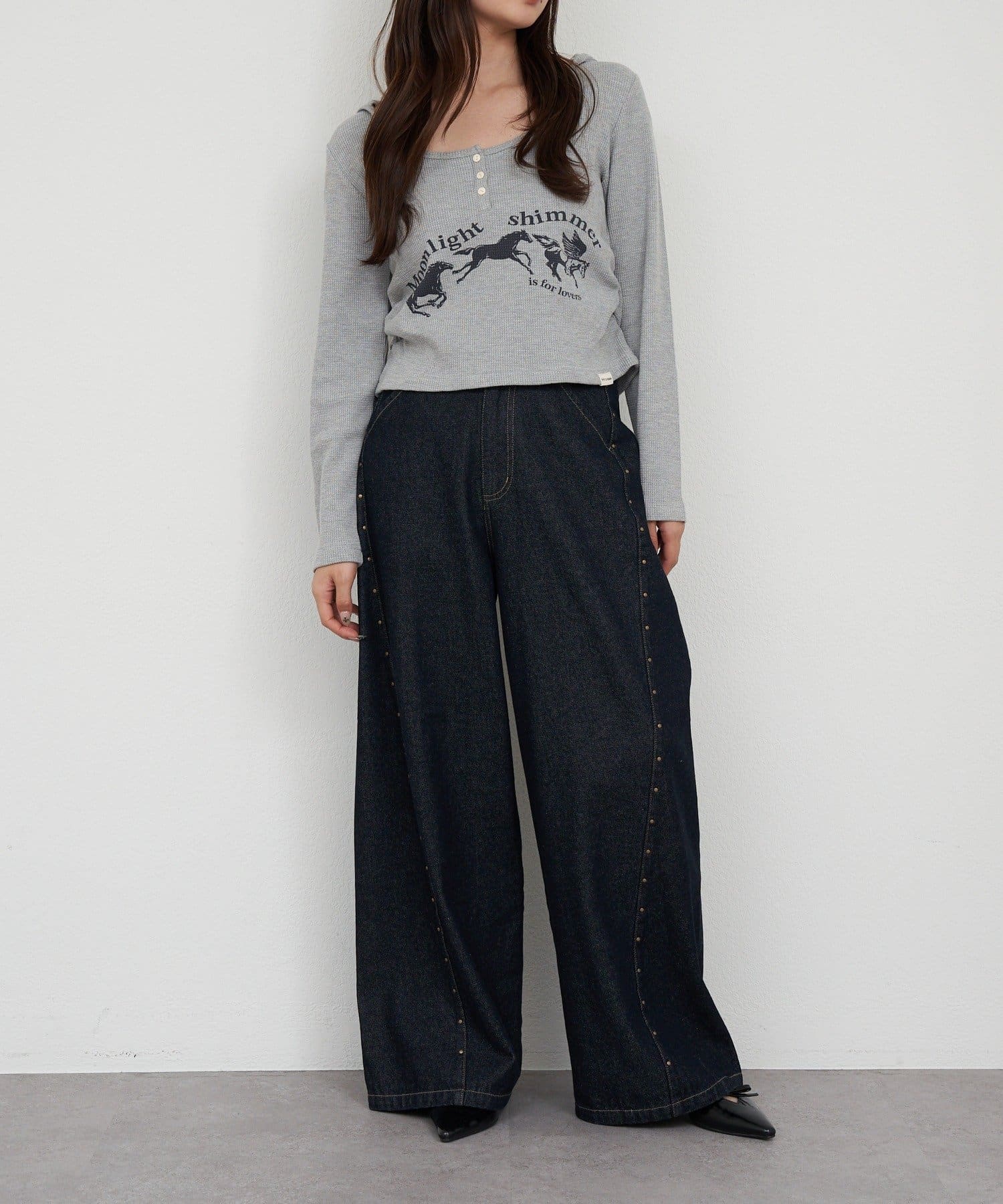 ワイドデニム×スタッズが新鮮な1着が新登場