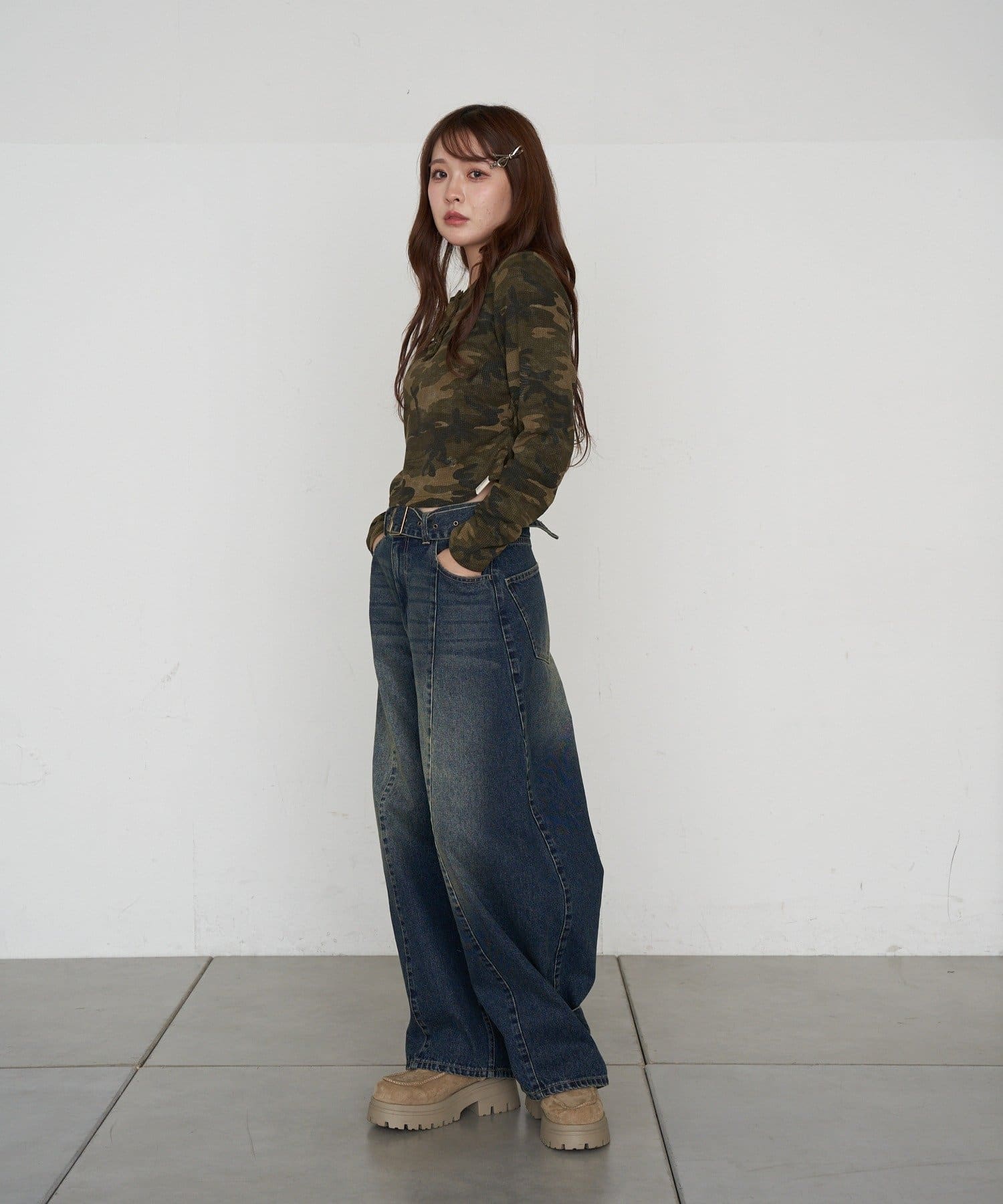 バレルレッグ / ワイドデニム / カジュアル / 海外ガール