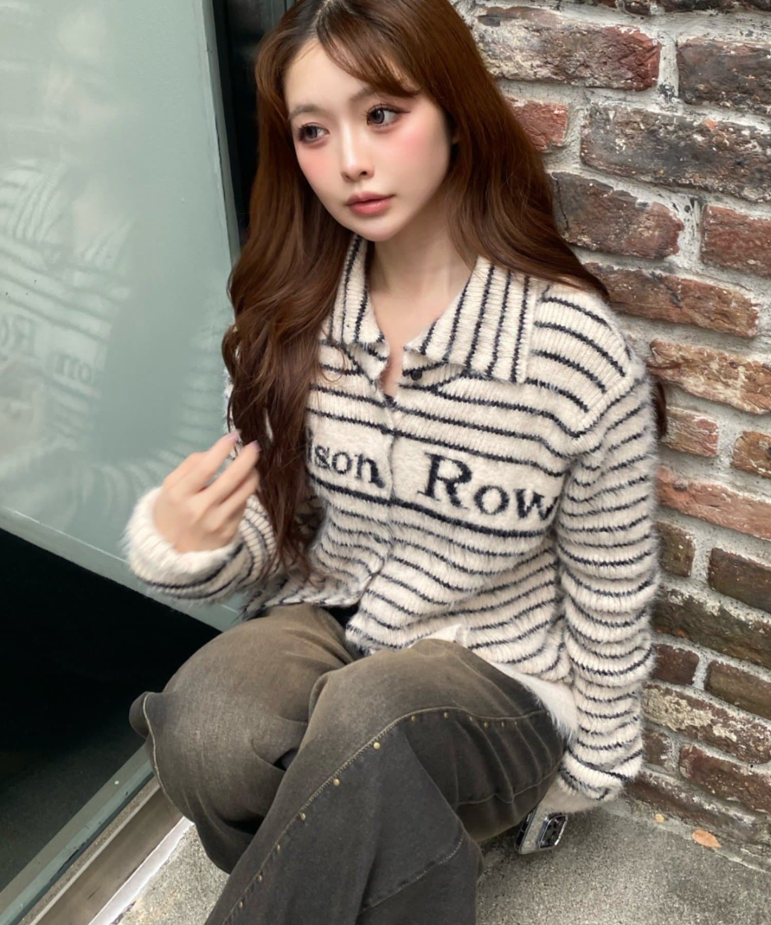 シャギーロゴ釦カーディガン