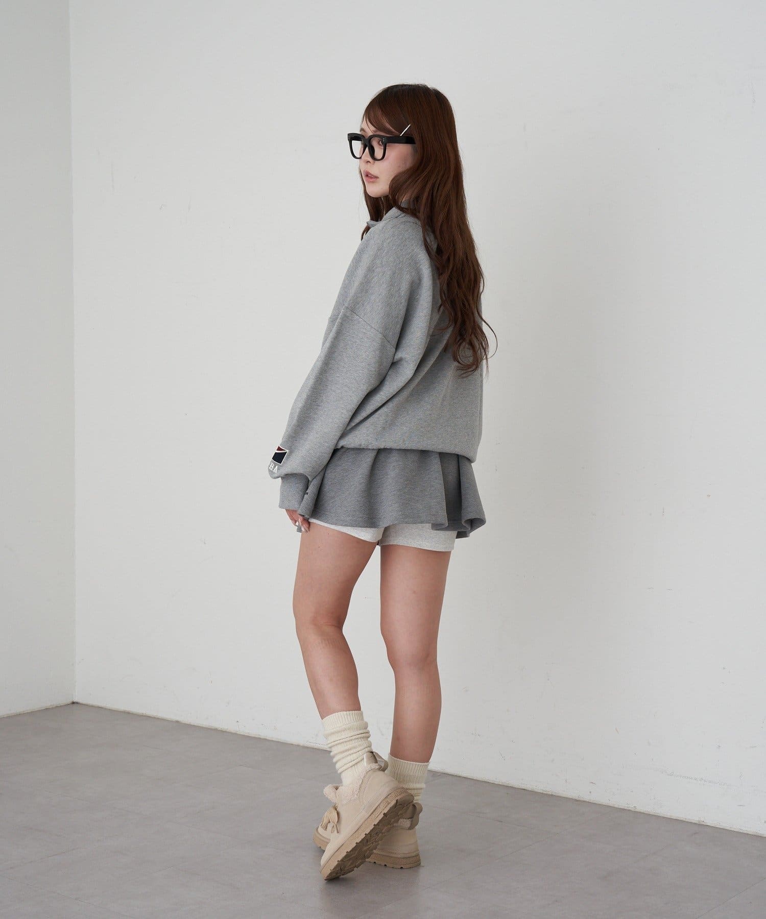 ・裏毛素材ですが、程よい厚みなのでボリュームが出すぎずスッキリ着ていただけます。