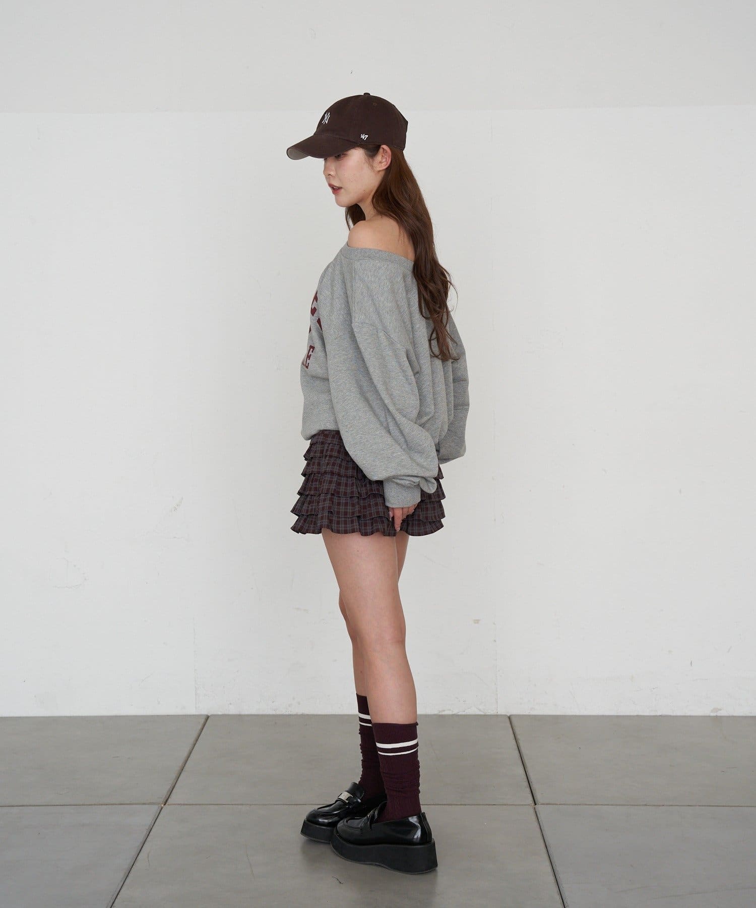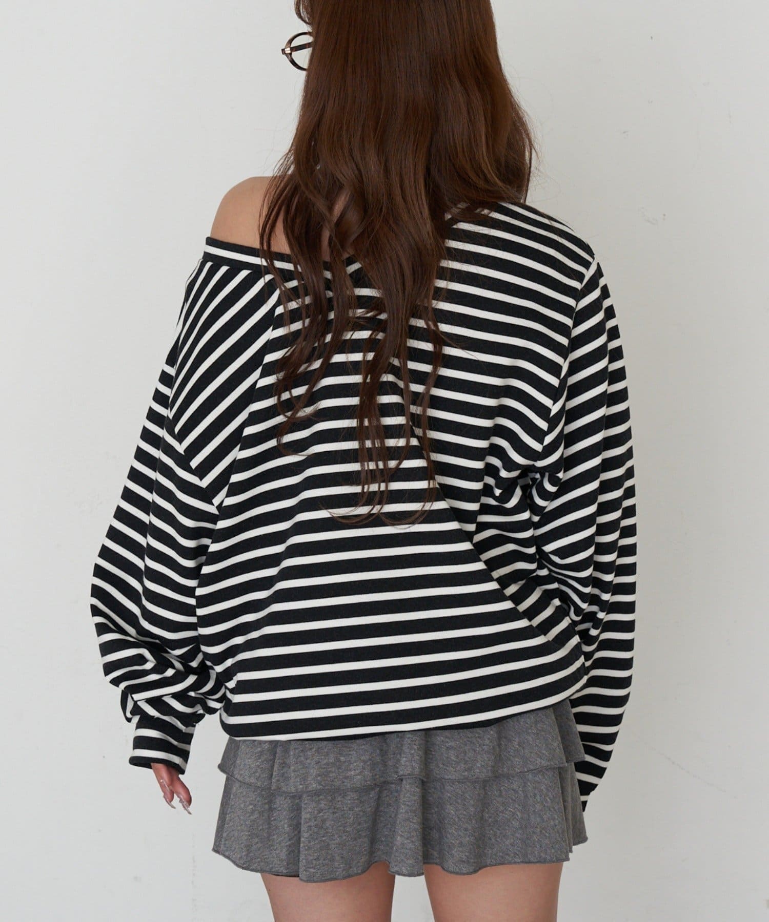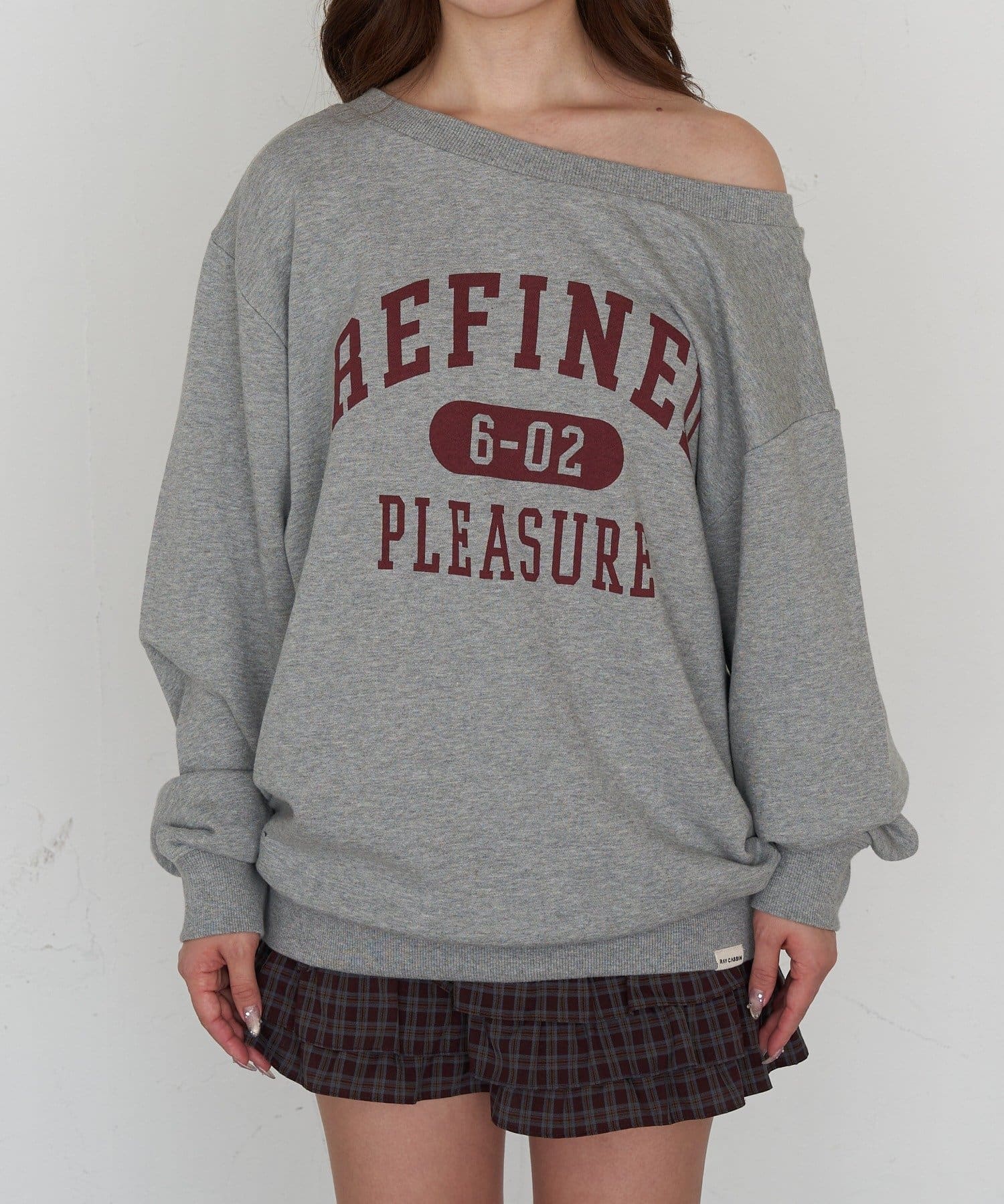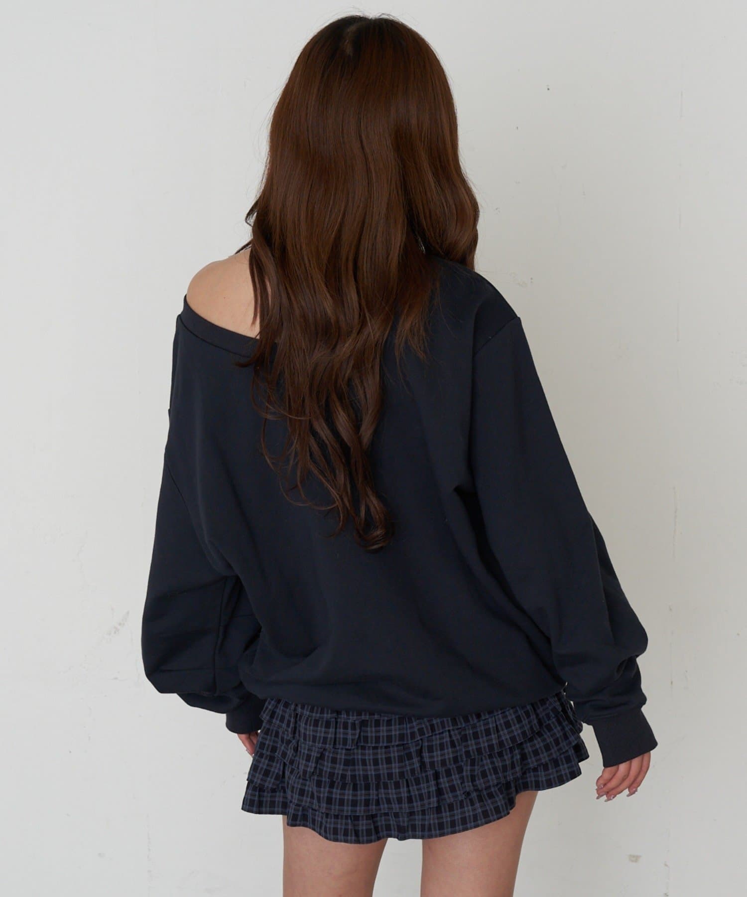 ・オフショルにして着ることで、カジュアルになりがちなスウェットも女性らしく着ていただけます◎