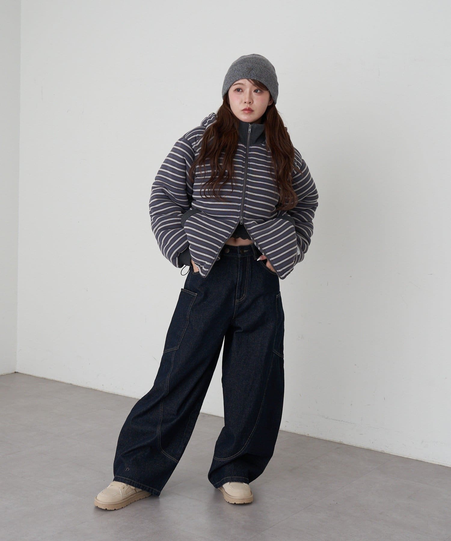 ・お尻にかかる丈感なので、ボリュームが出すぎず着膨れがしにくい◎
