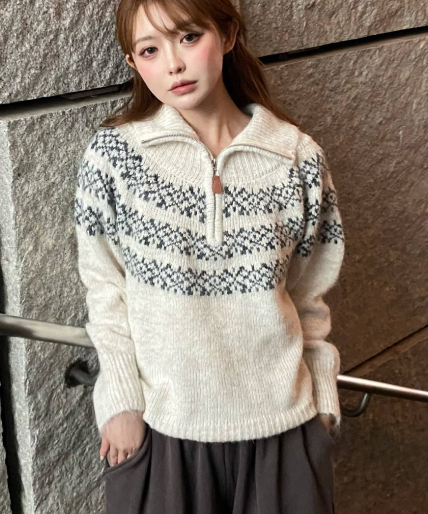 TOP > RAY CASSIN > レディース > トップス > ニット/セーター > ノルディックハーフジップニット