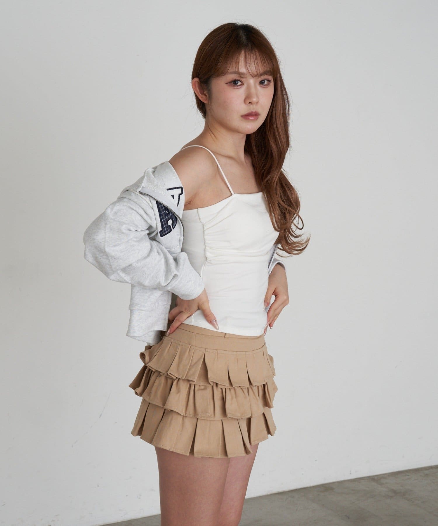 ベルト付ティアードスカート