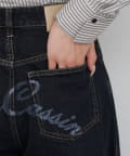 バックプリントバレルデニムパンツ