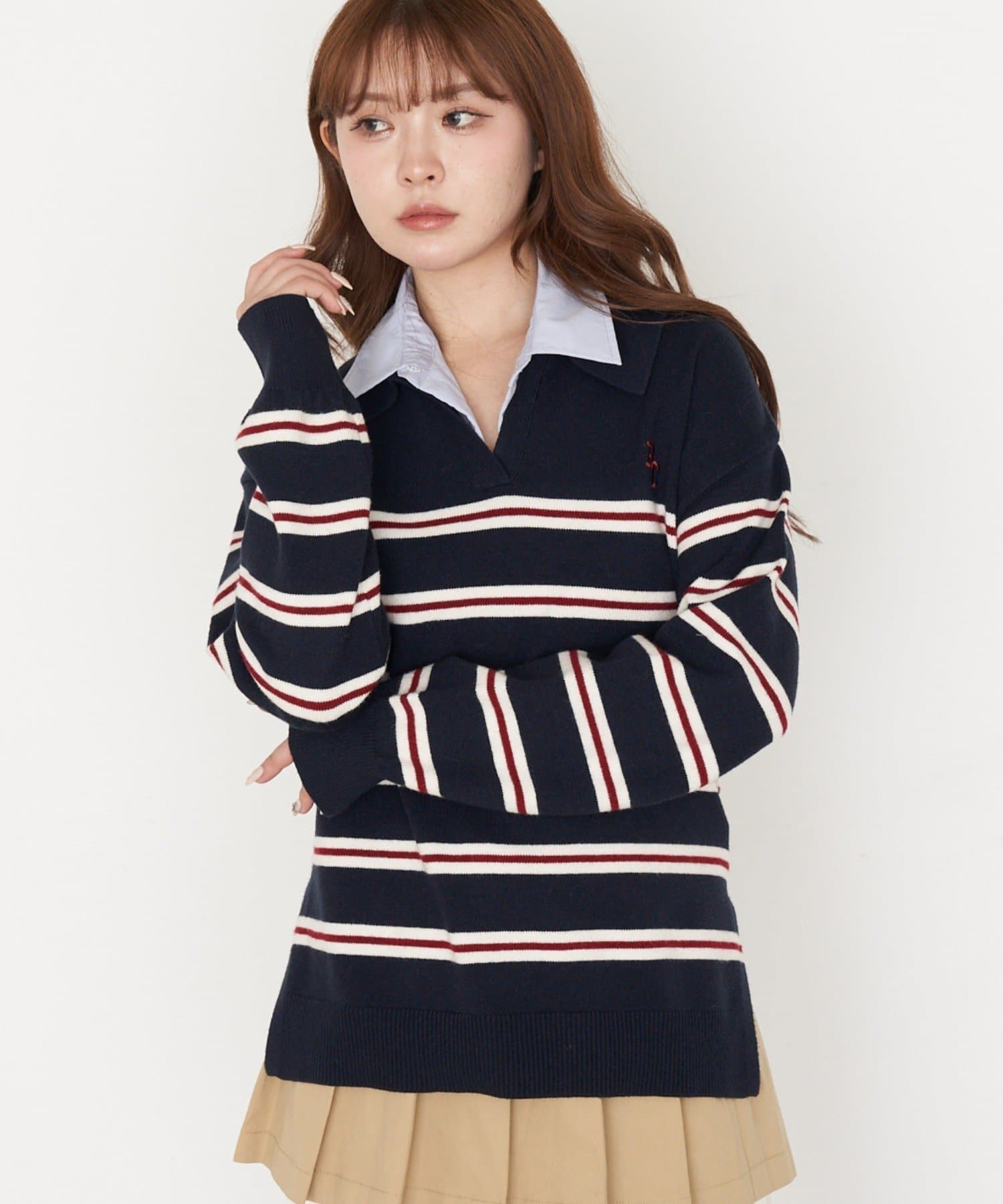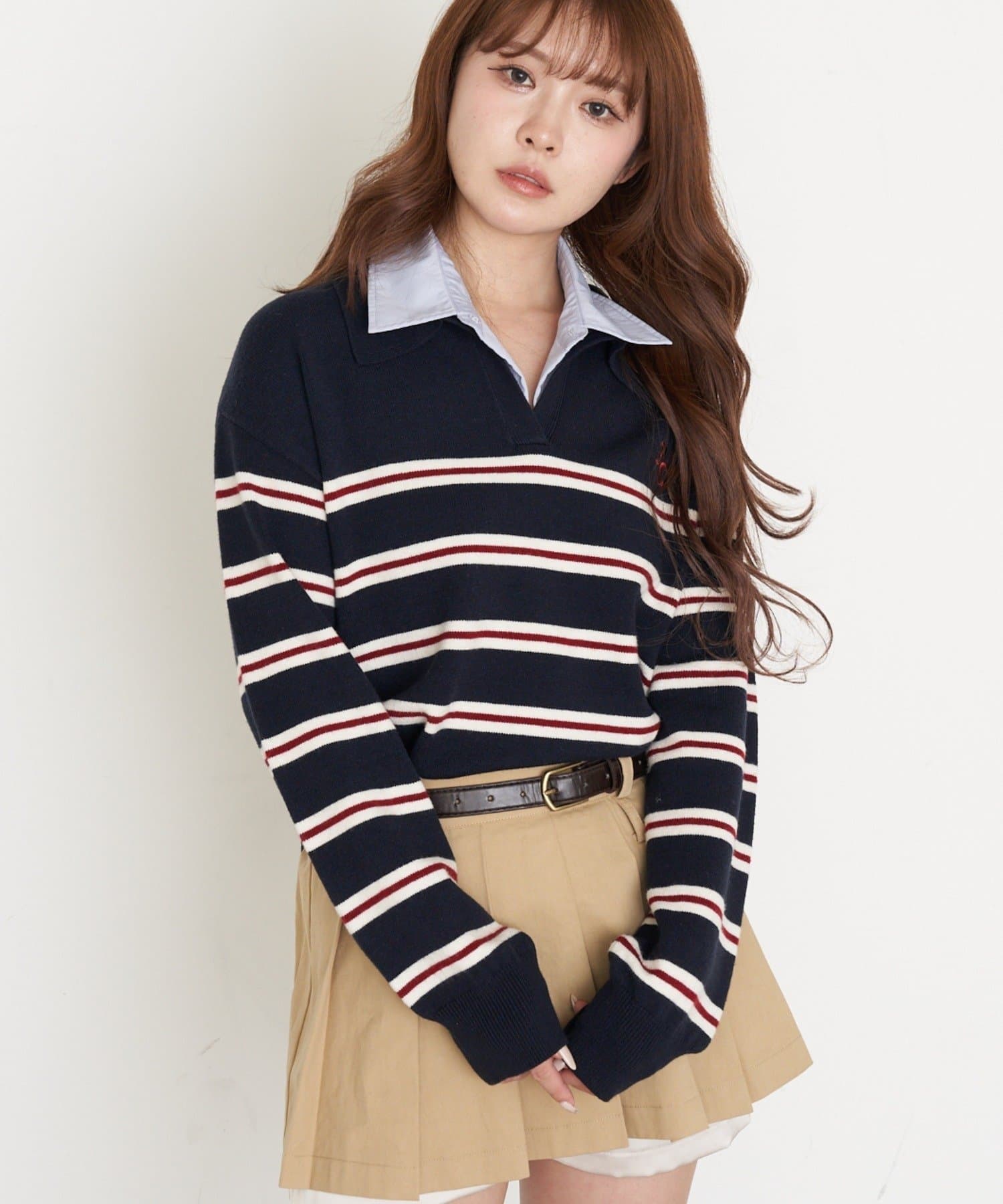・Vネックなので、ニットですが着痩せ効果も抜群です。